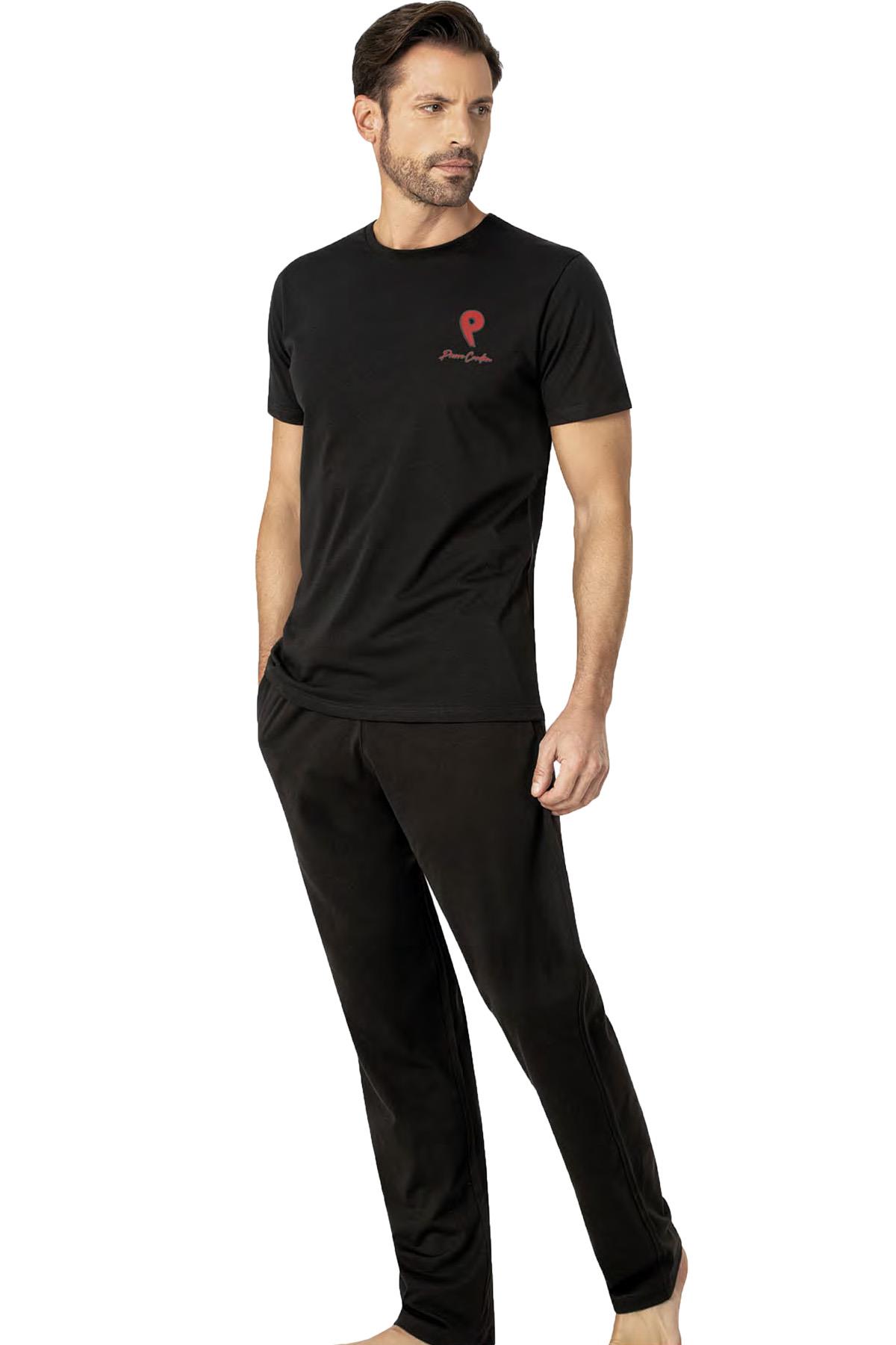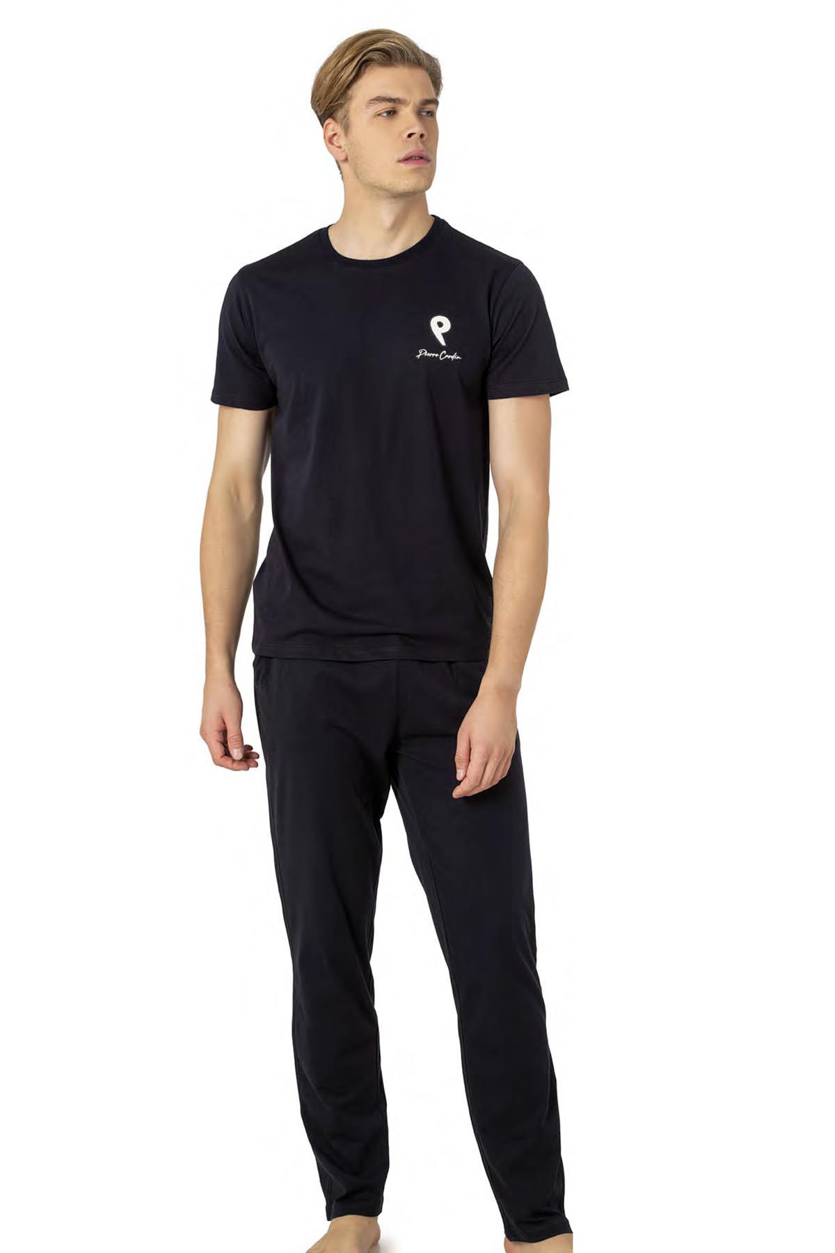 Alt cepli pijama ve üst pierre cardin yazılı kısakol bisiklet yakalı t-shirt olarak 2 parçadır.