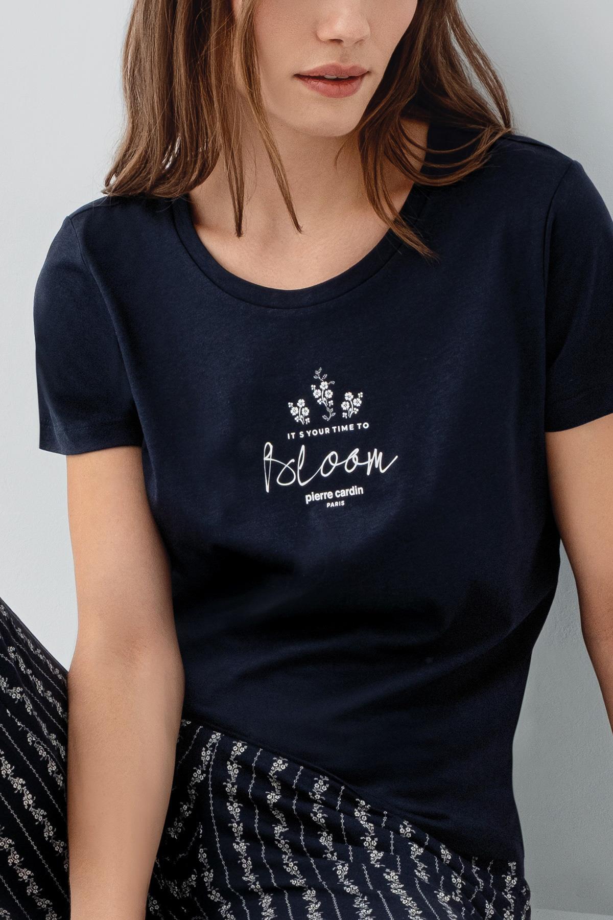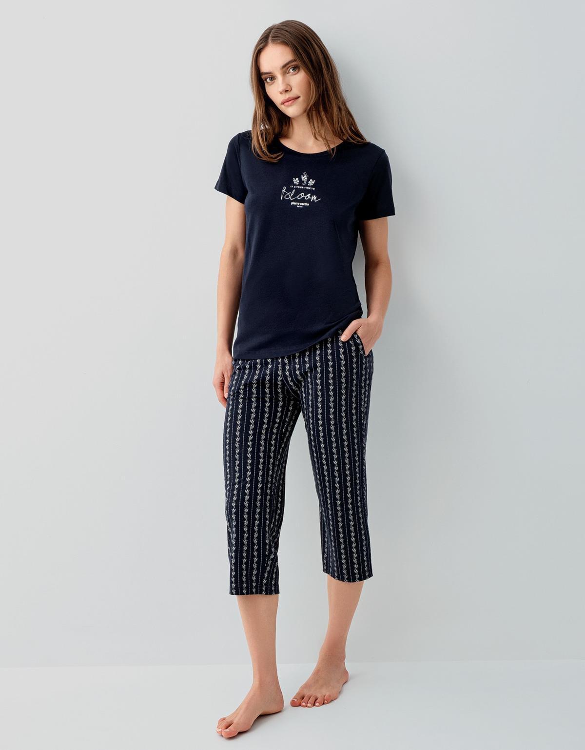 Pierre Cardin Kadın Çizgili Cepli Kapri Pijama Takımı %50 Pamuk %50 Modal – Kısa Kollu Tişört, Rahat Kesim