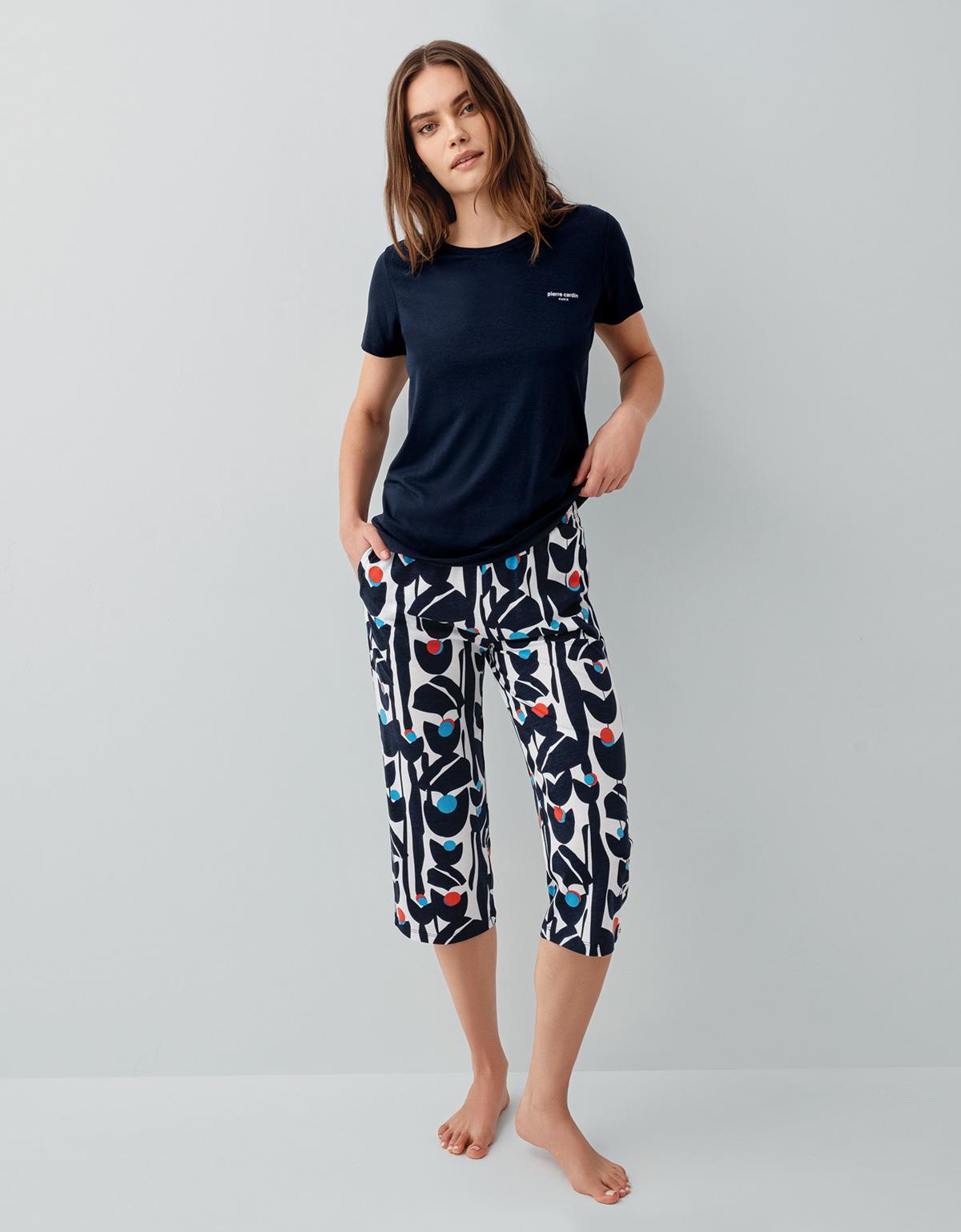 Pierre Cardin Cepli Kadın Kapri Pijama Takımı – %50 Pamuk %50 Modal, Kısa Kollu, Desenli Alt