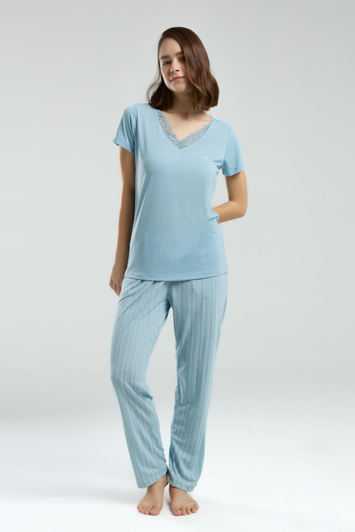 Pierre Cardin Dantelli Geniş V Yaka Kısakol Cepli Pijama Takım
