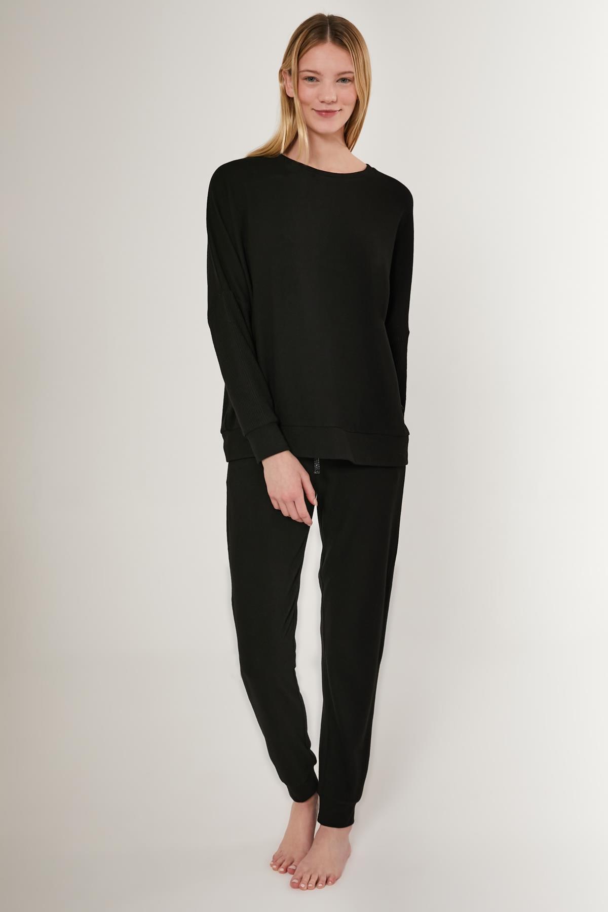 Kadın %100 Pamuk 2 İplik Uzunkol Ev Giyim Pijama Takım