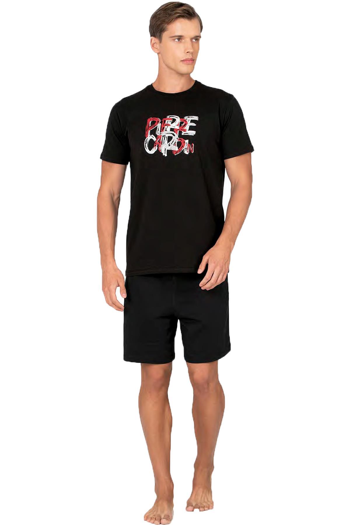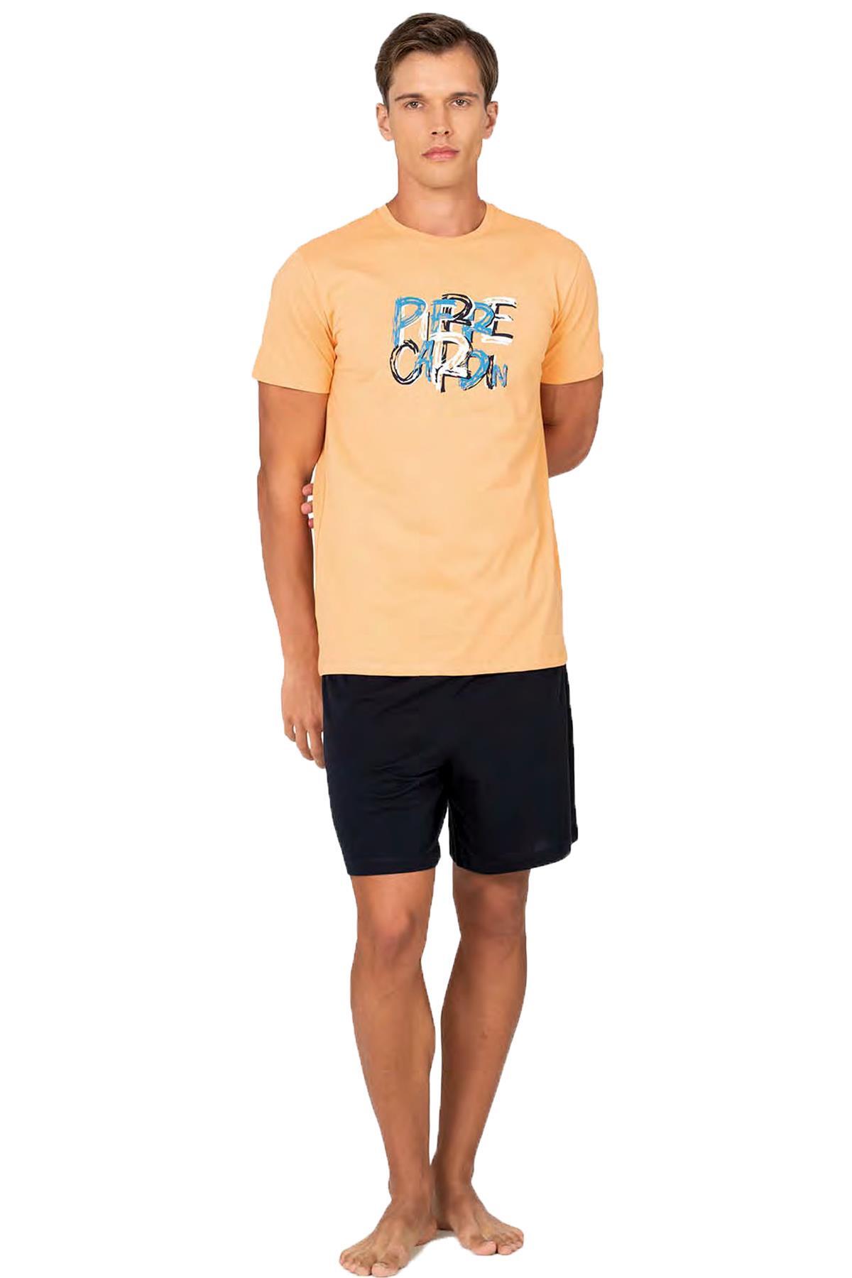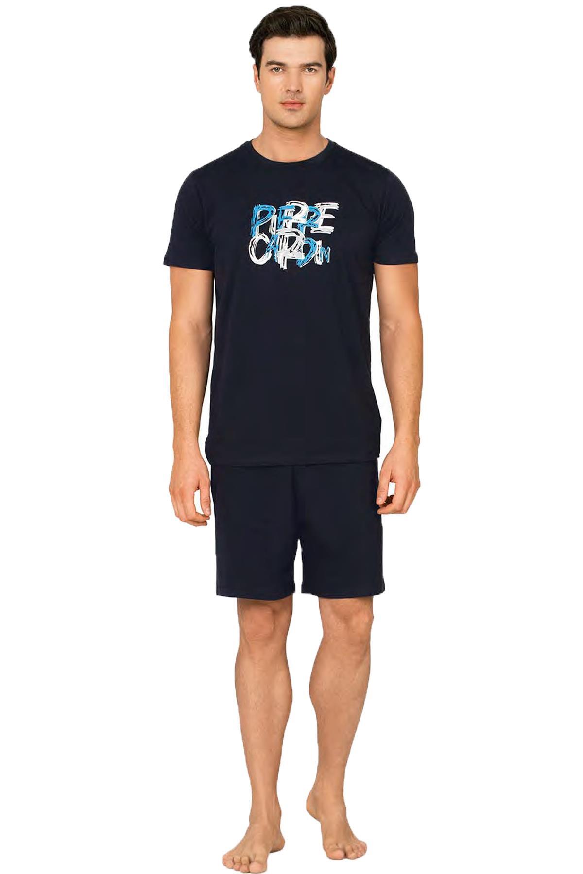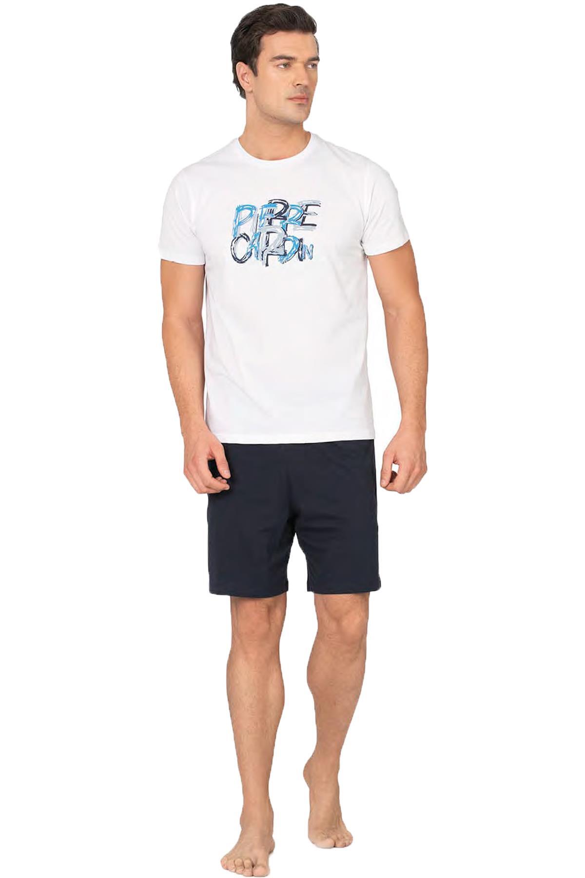 Pierre Cardin erkek şort pijama takımı %100 pamuk, yazlık, rahat kesim, baskılı tişört, S-XXL.