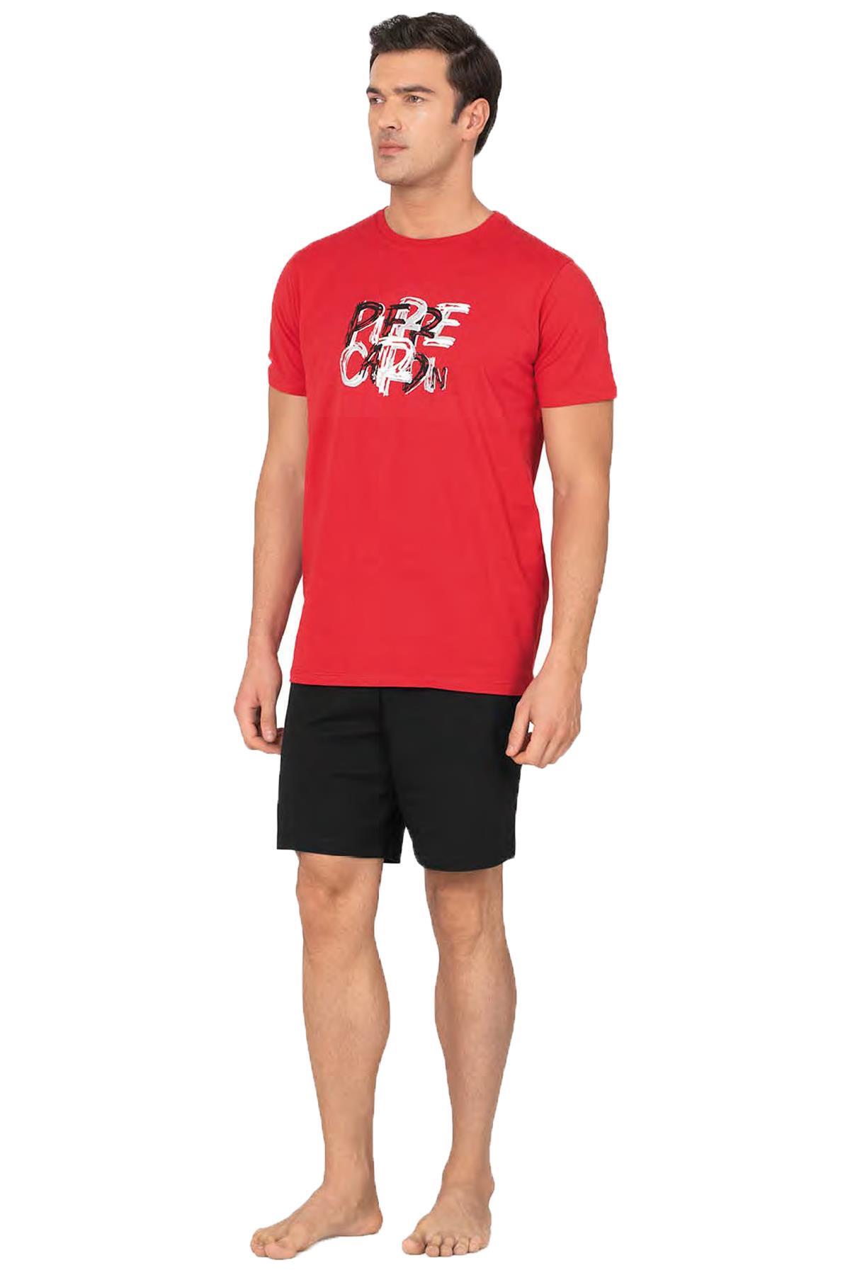 Pierre Cardin Erkek Şort Pijama Takımı %100 Pamuk Baskılı Tişört – Yazlık Rahat Kesim