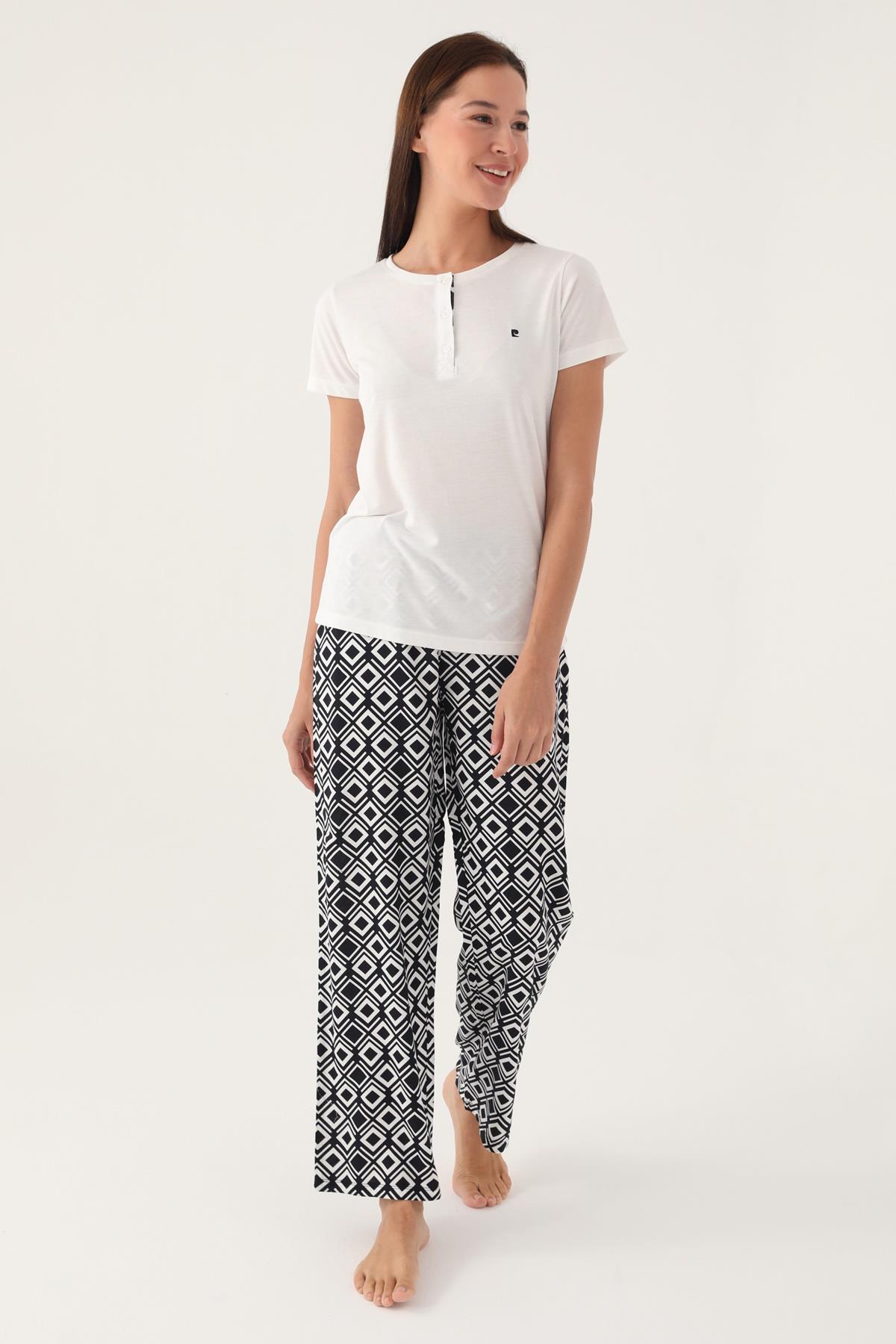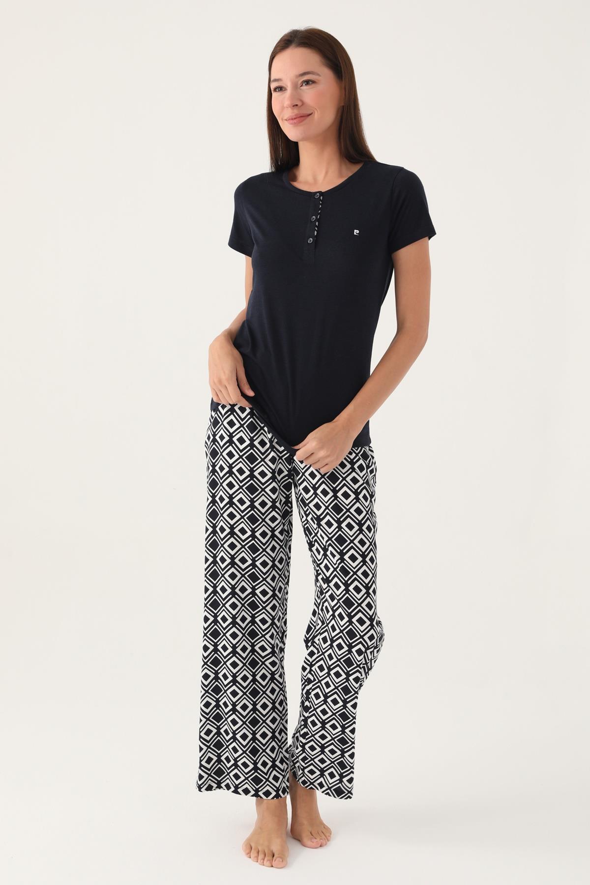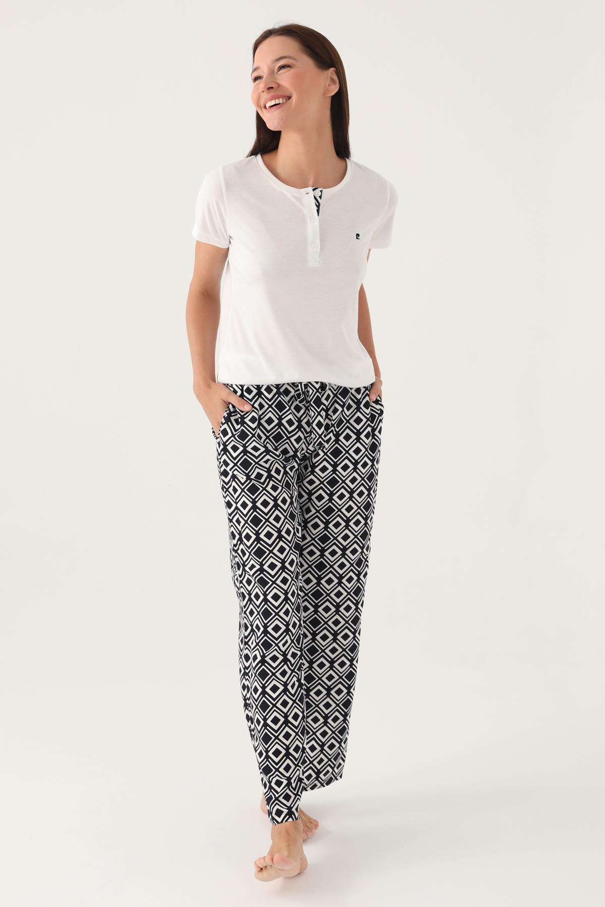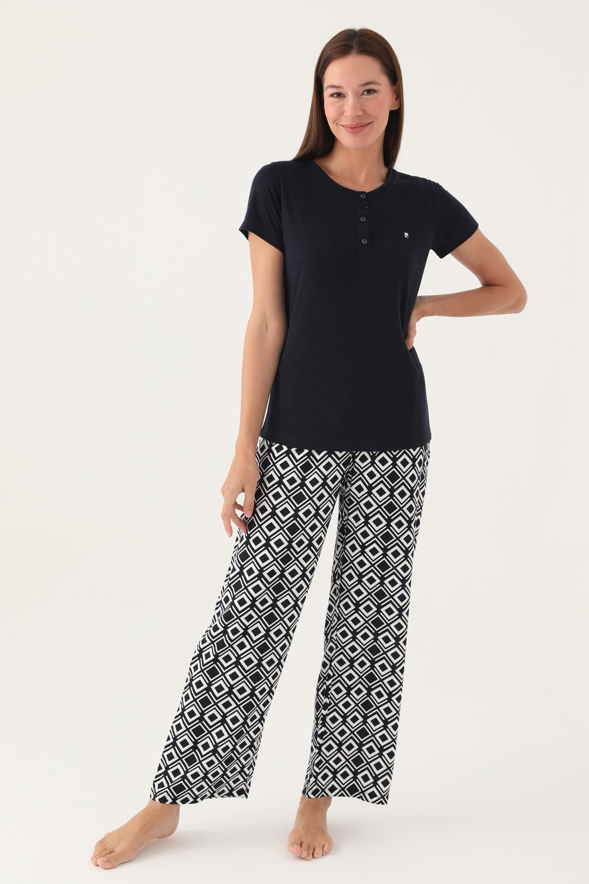 Pierre Cardin Geometrik Desenli Düğmeli Yaka Yazlık Pijama Takımı