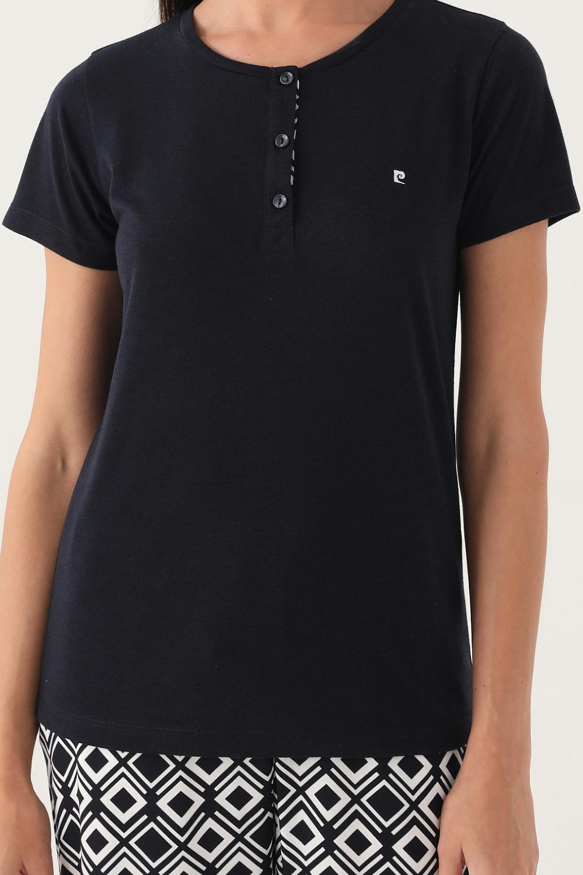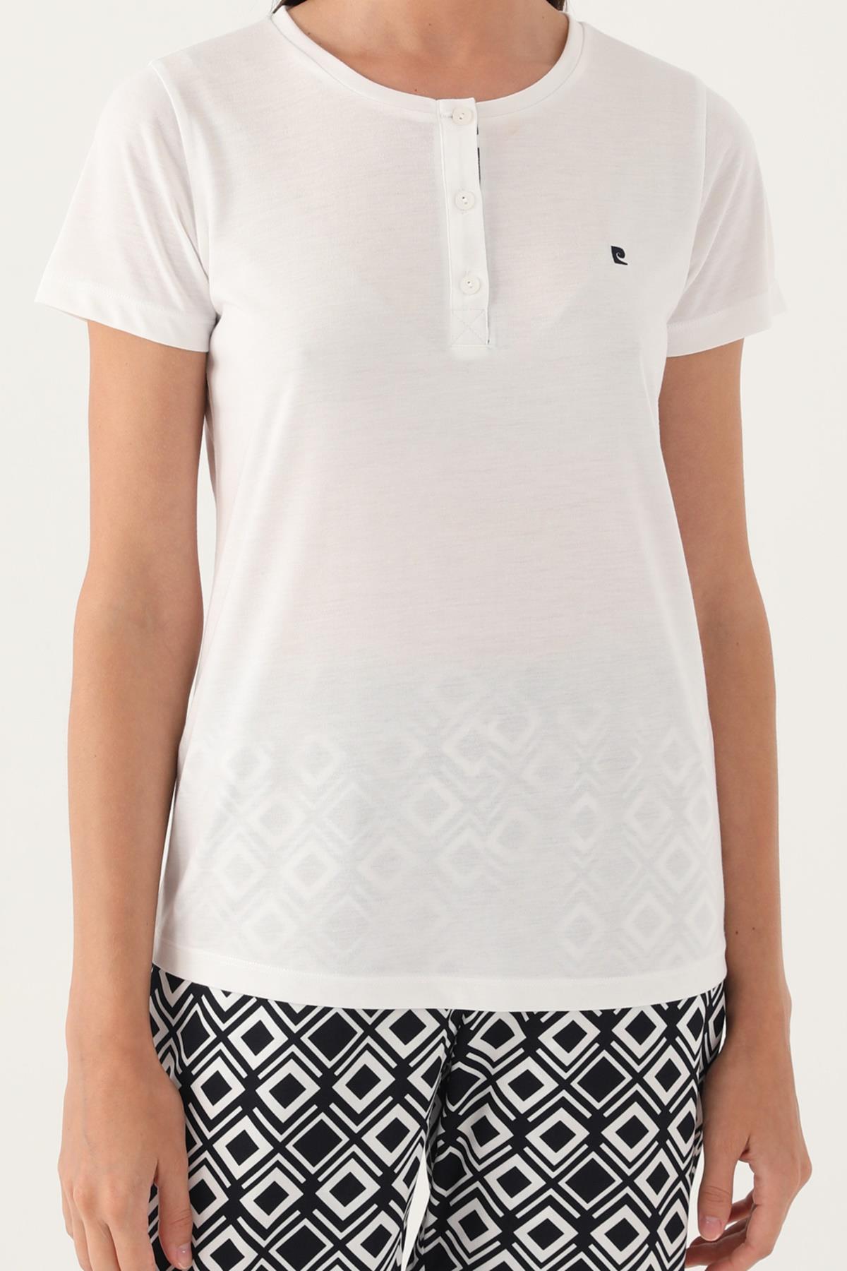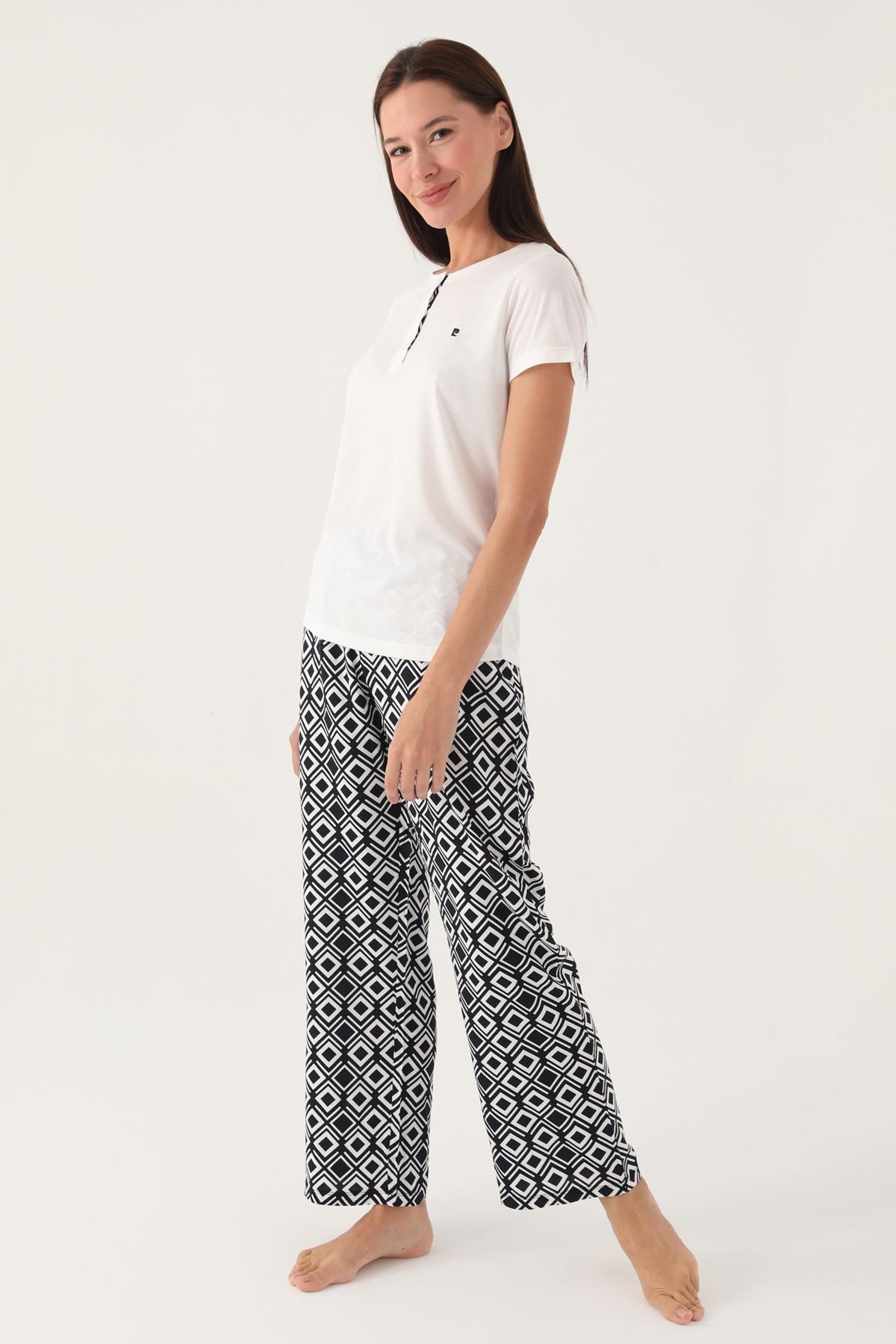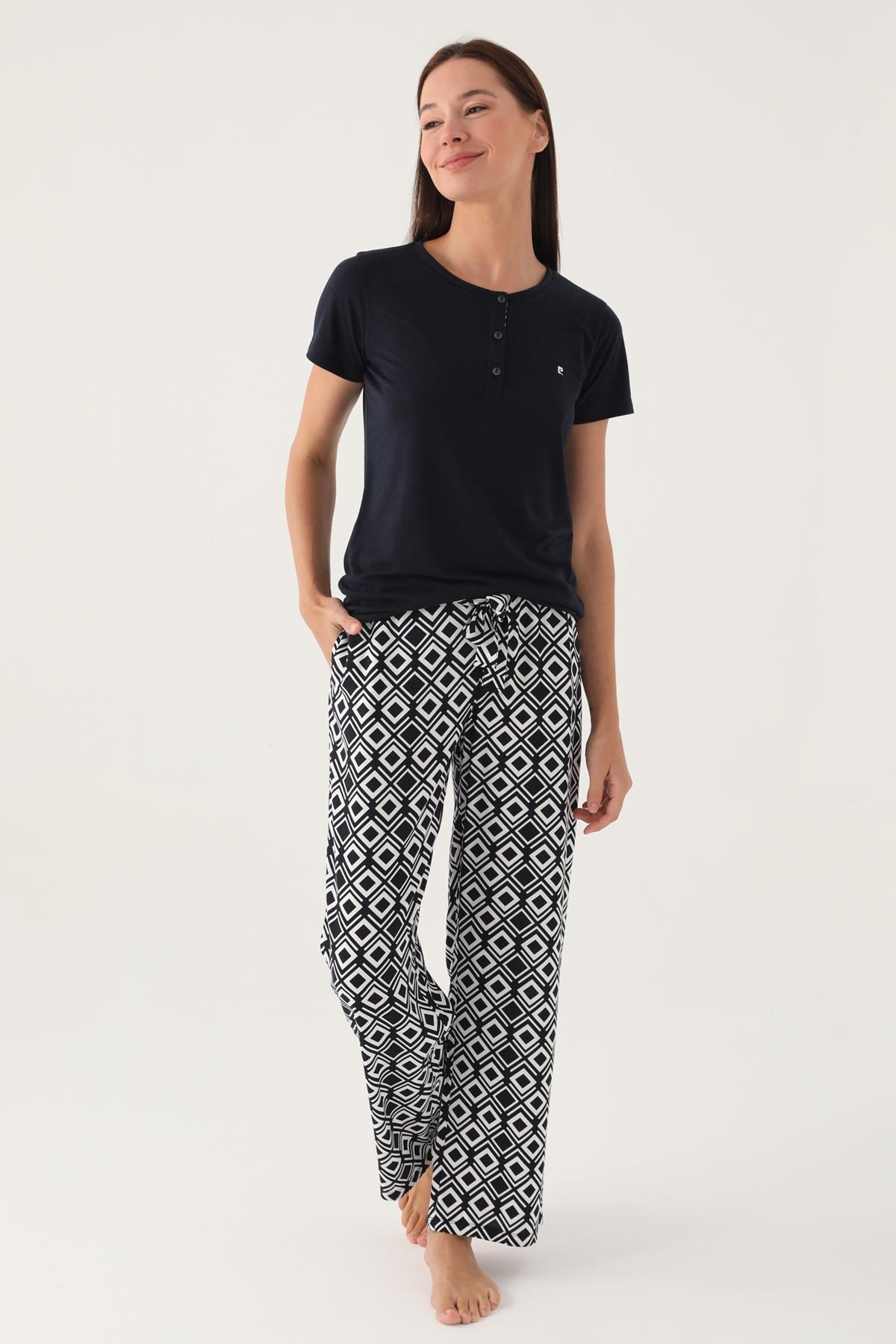 Pierre Cardin Geometrik Desenli Düğmeli Yaka Yazlık Pijama Takımı