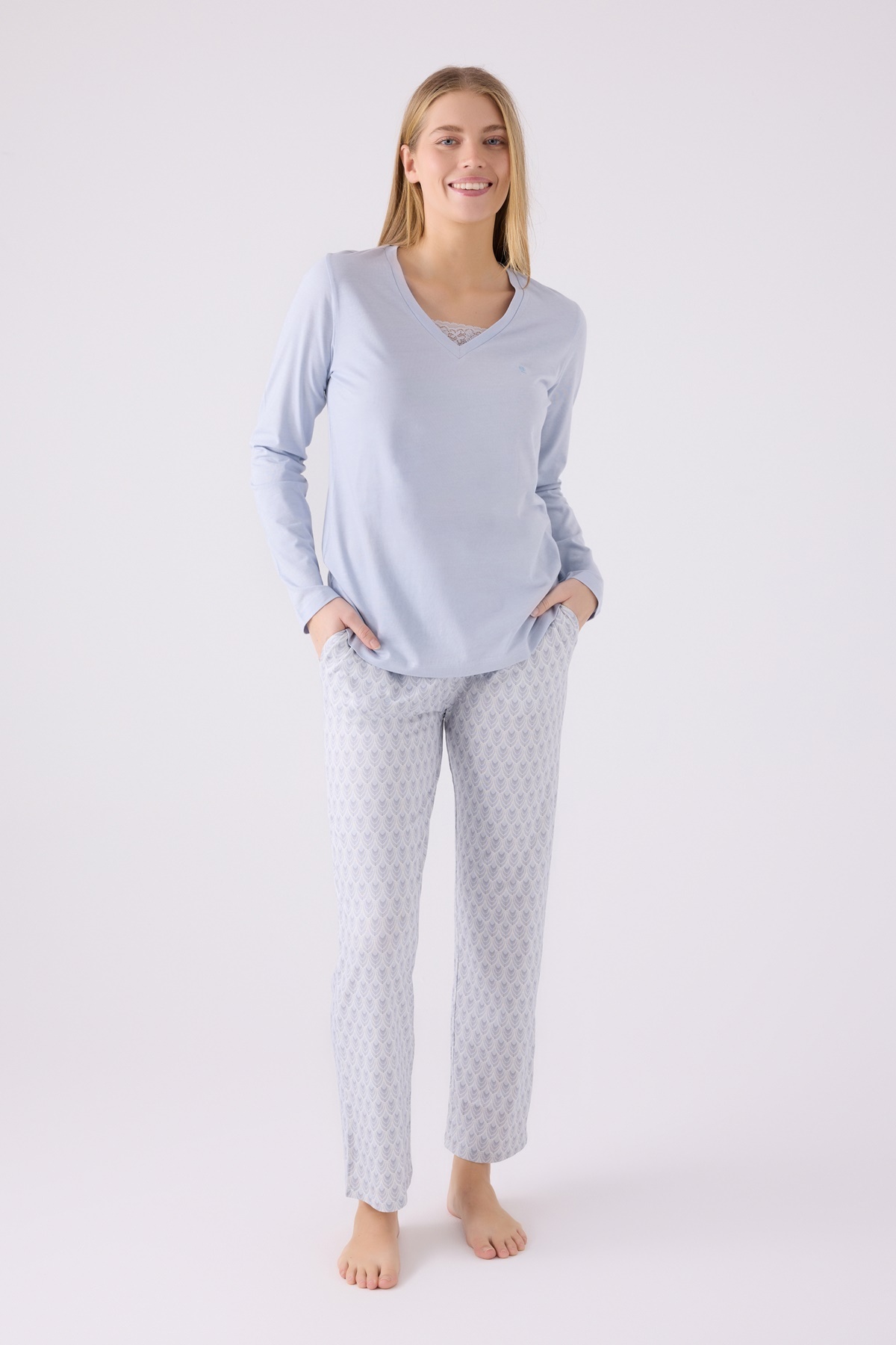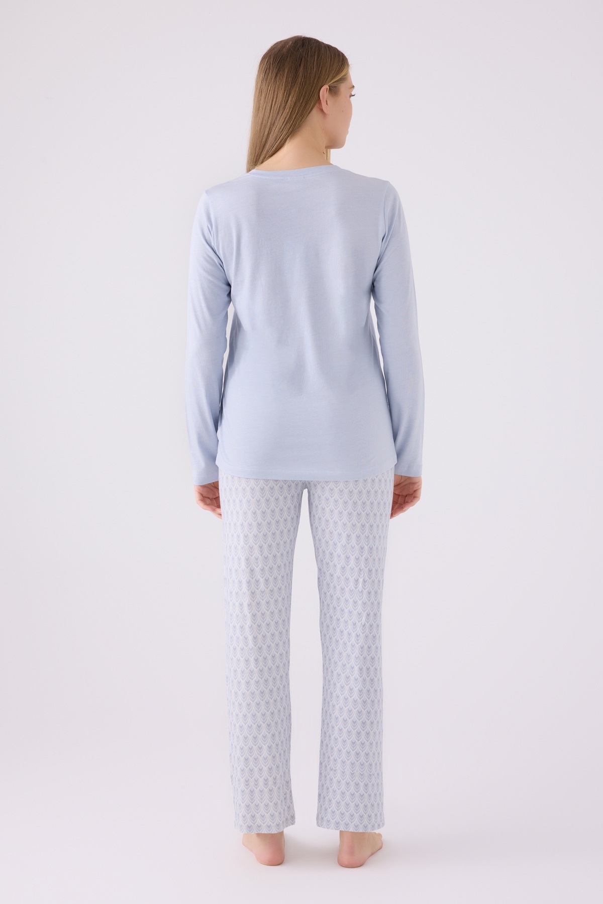 Kadın %100 Pamuk 2 İplik Uzunkol Ev Giyim Pijama Takım