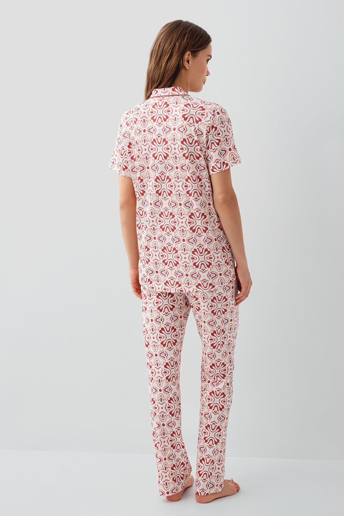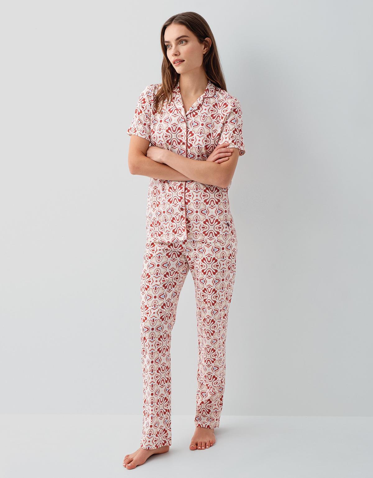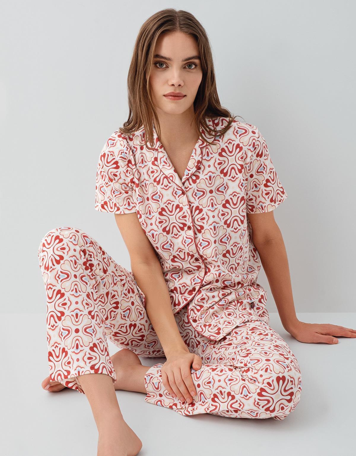Pierre Cardin Kadın %50 Pamuk %50 Modal Kadın Düğmeli Pijama Takımı – Kısa Kollu, Desenli, Kutulu Ambalaj