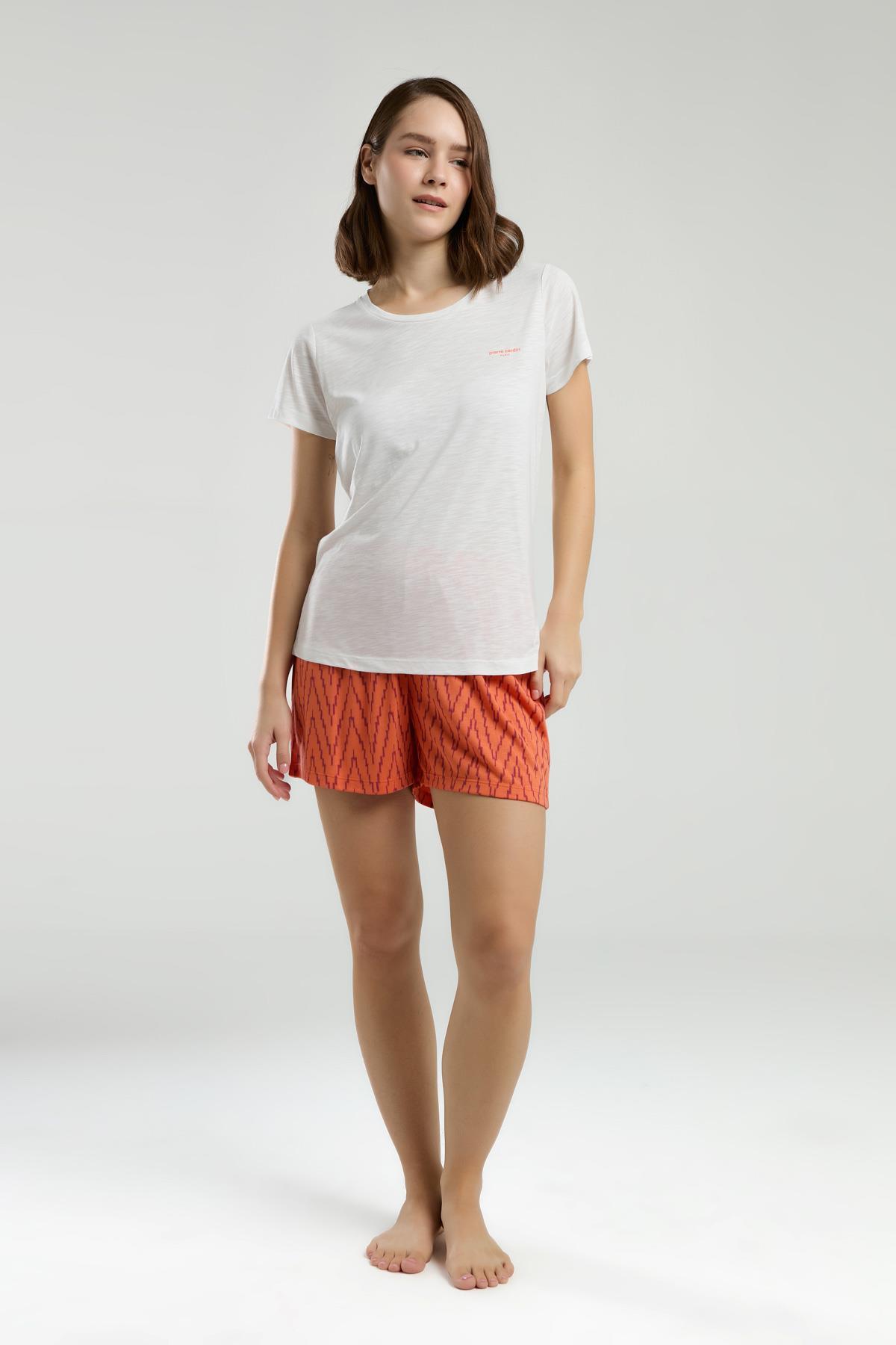 Pierre Cardin Kadın Beyaz T-shirt, Turuncu Şort Takım