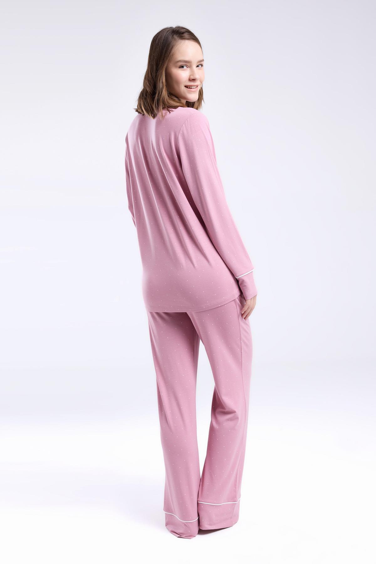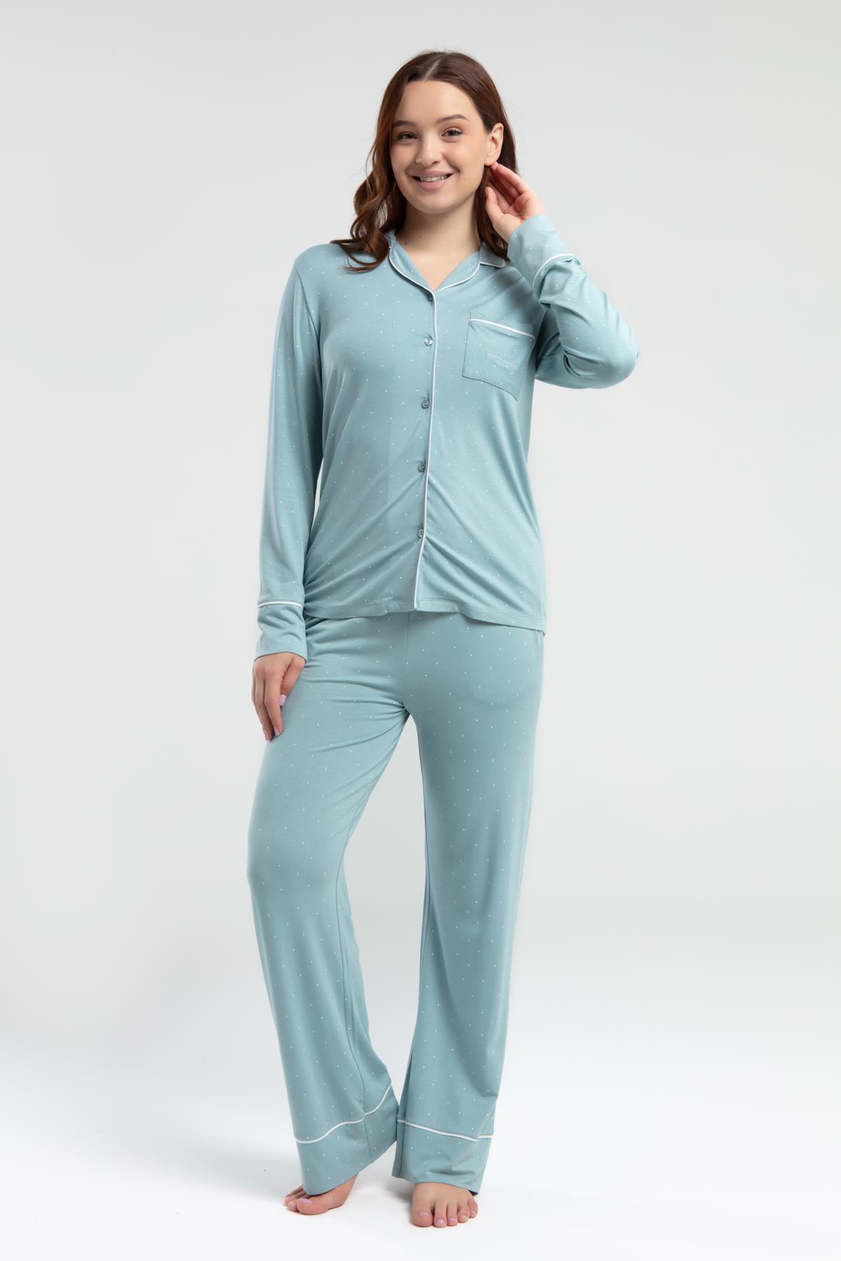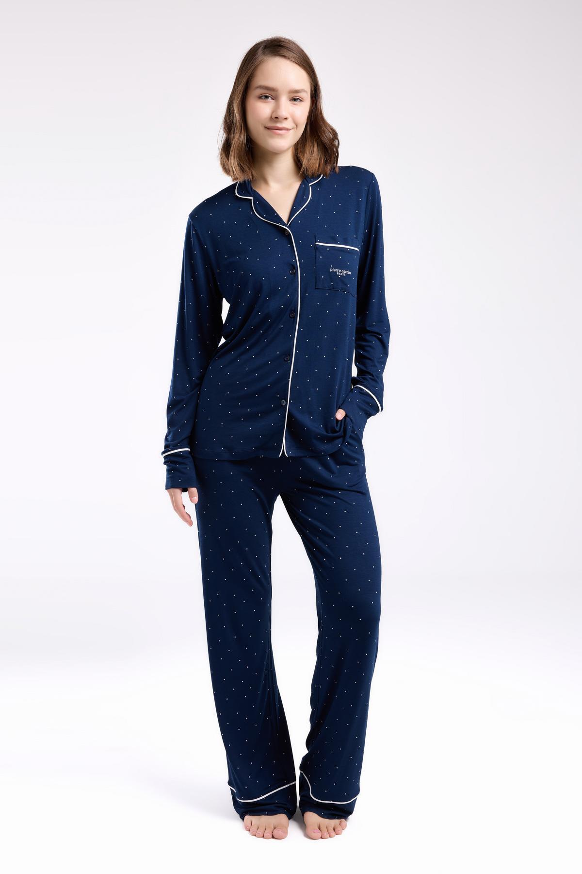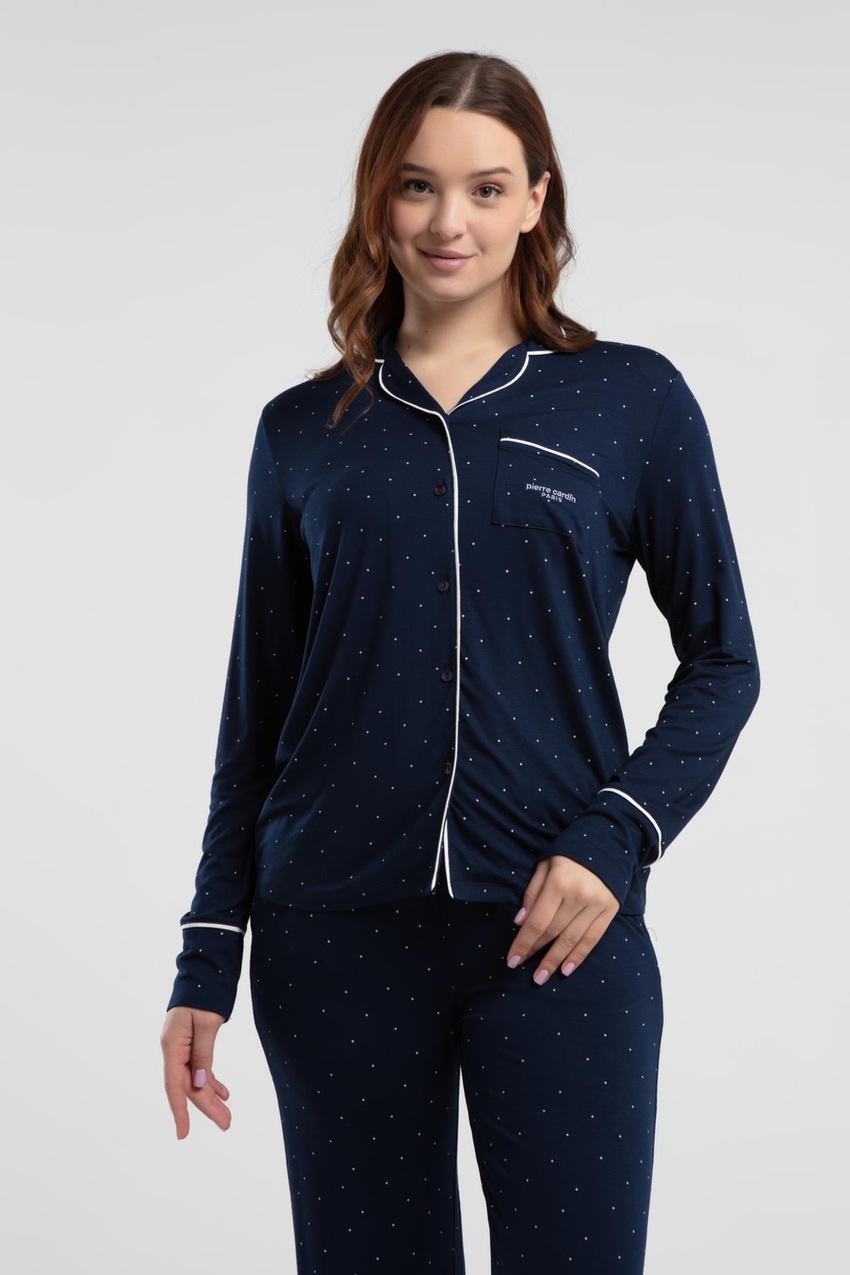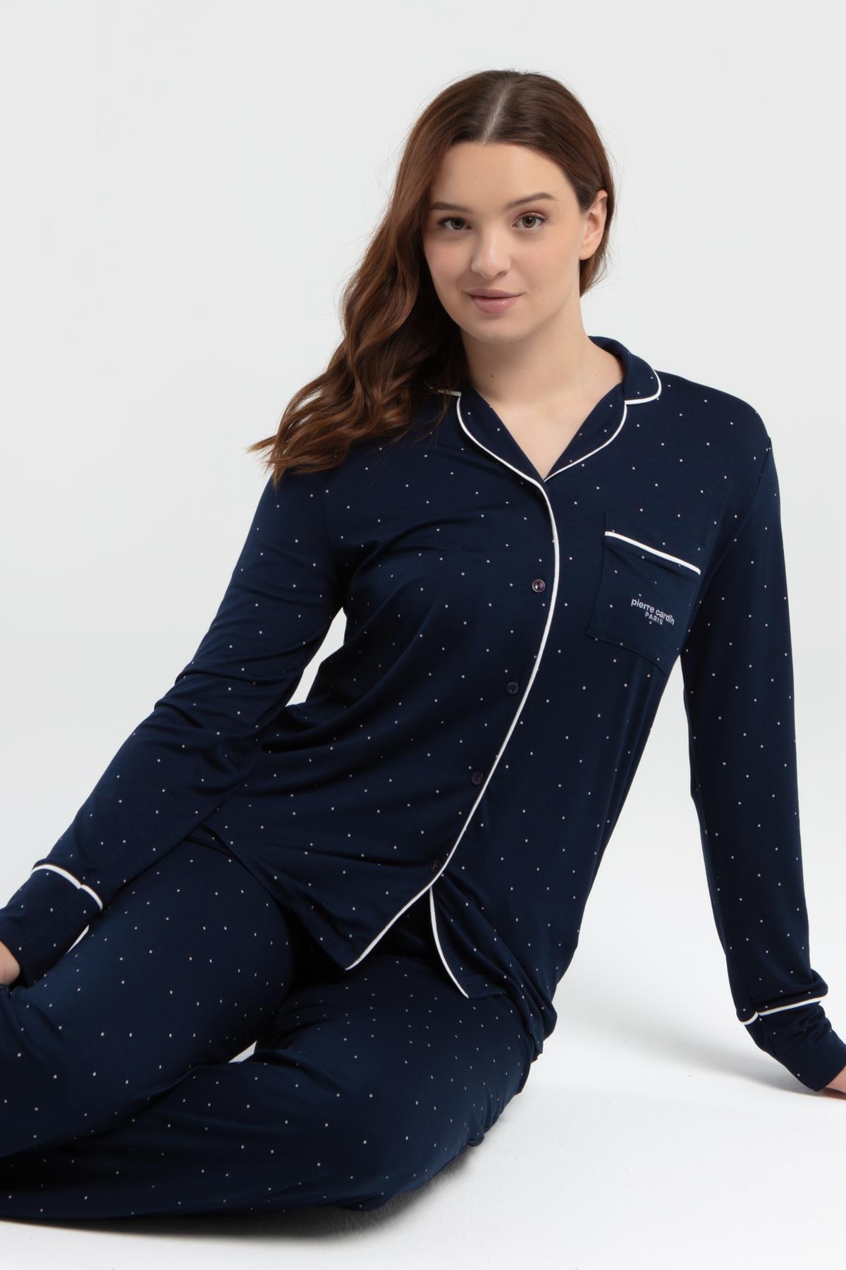 Pierre Cardin Çeyizlik Kutulu Pijama Takım, Viskon Kumaş, Önden Düğmeli, Uzunkol ve cepli