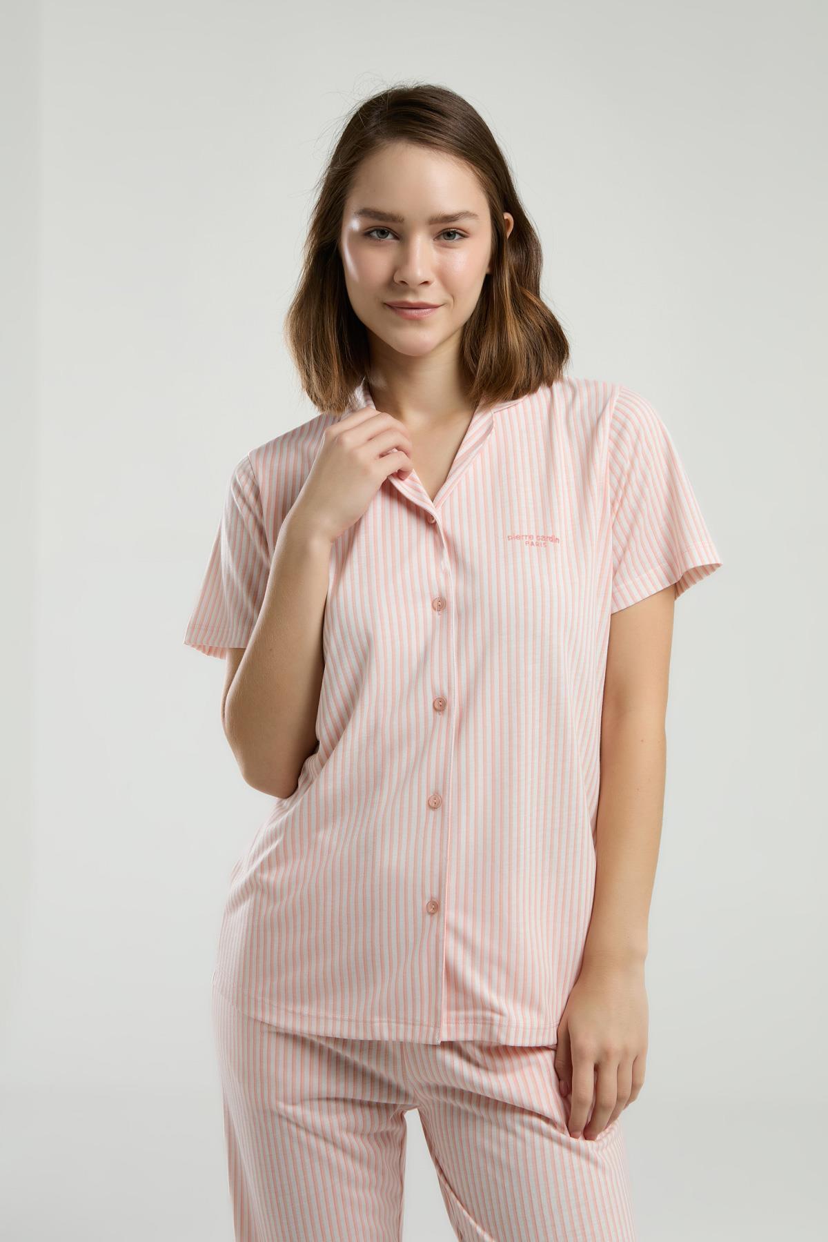 Pierre Cardin Kadın Çizgili Boydan Düğmeli Pijama Takım, Kutulu Gönderilir