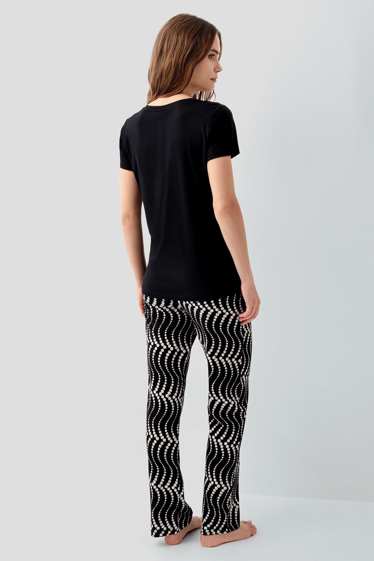 Kadın Siyah Desenli Pamuk Modal Pijama Takımı