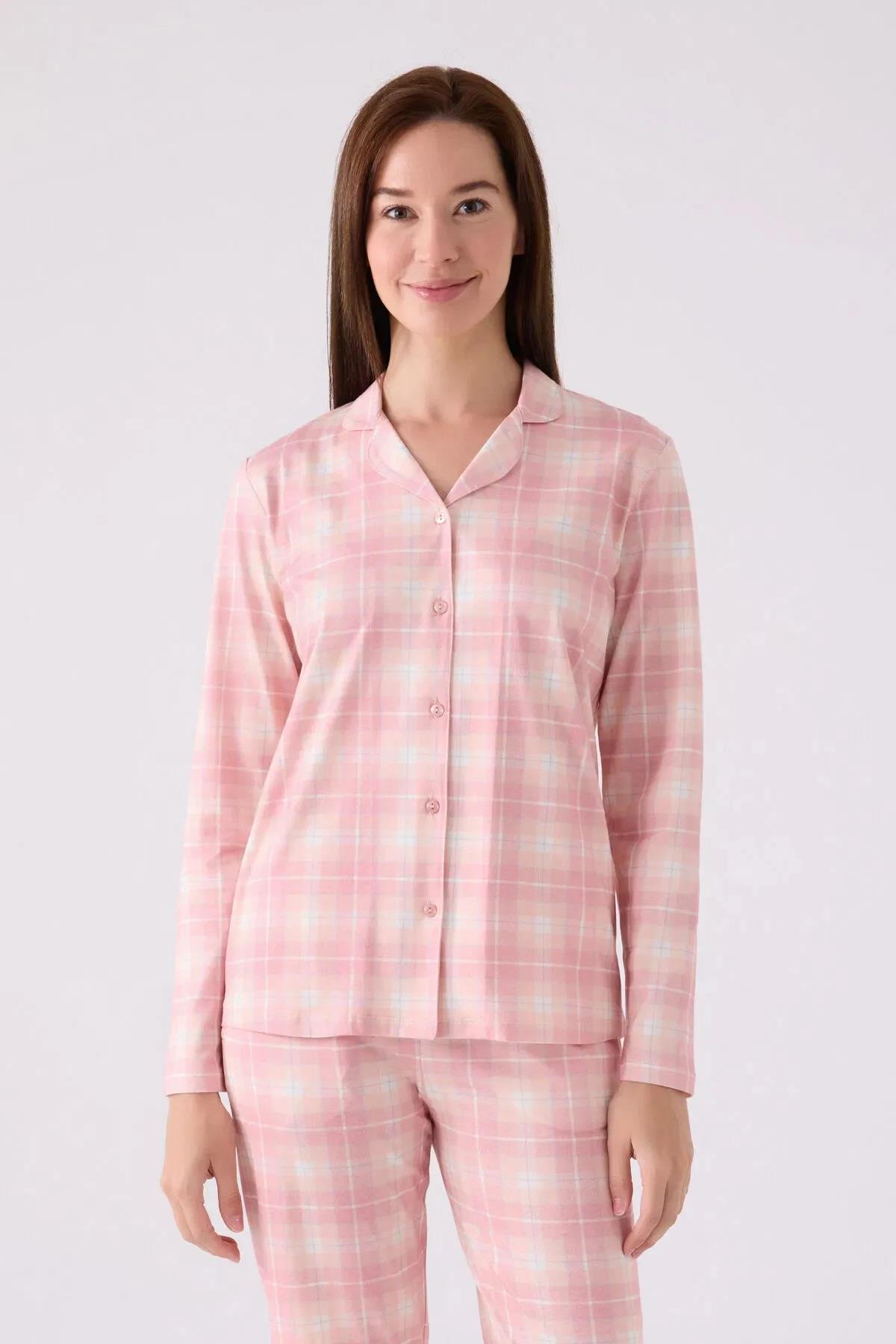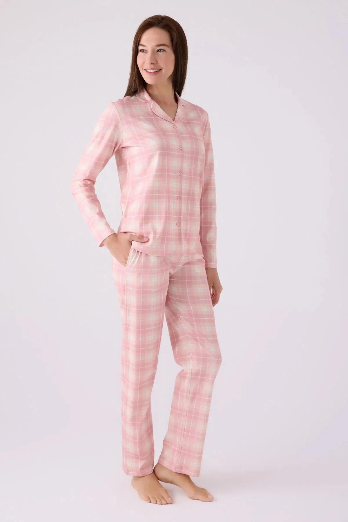 Pierre Cardin Kadın Ekose %100 Pamuk Düğmeli Pijama Takım