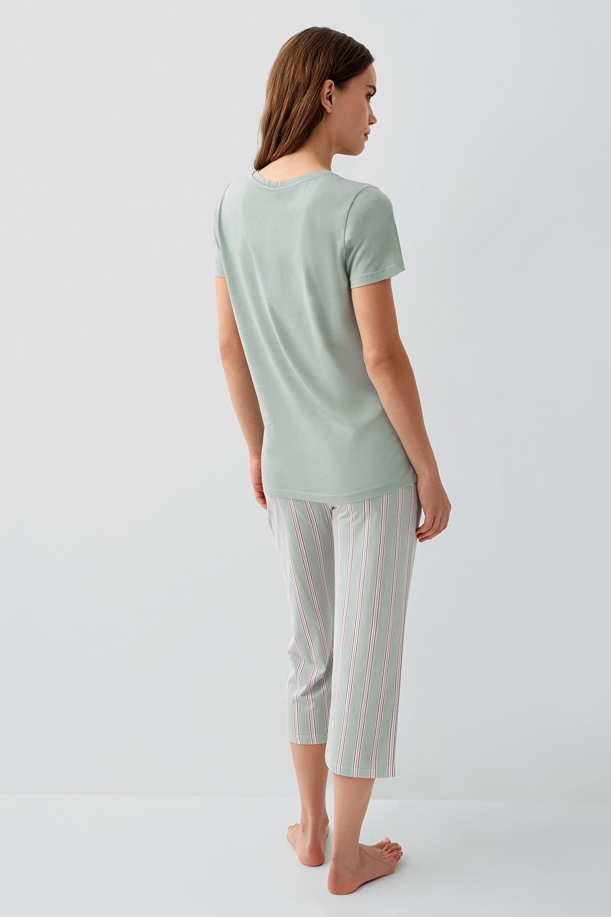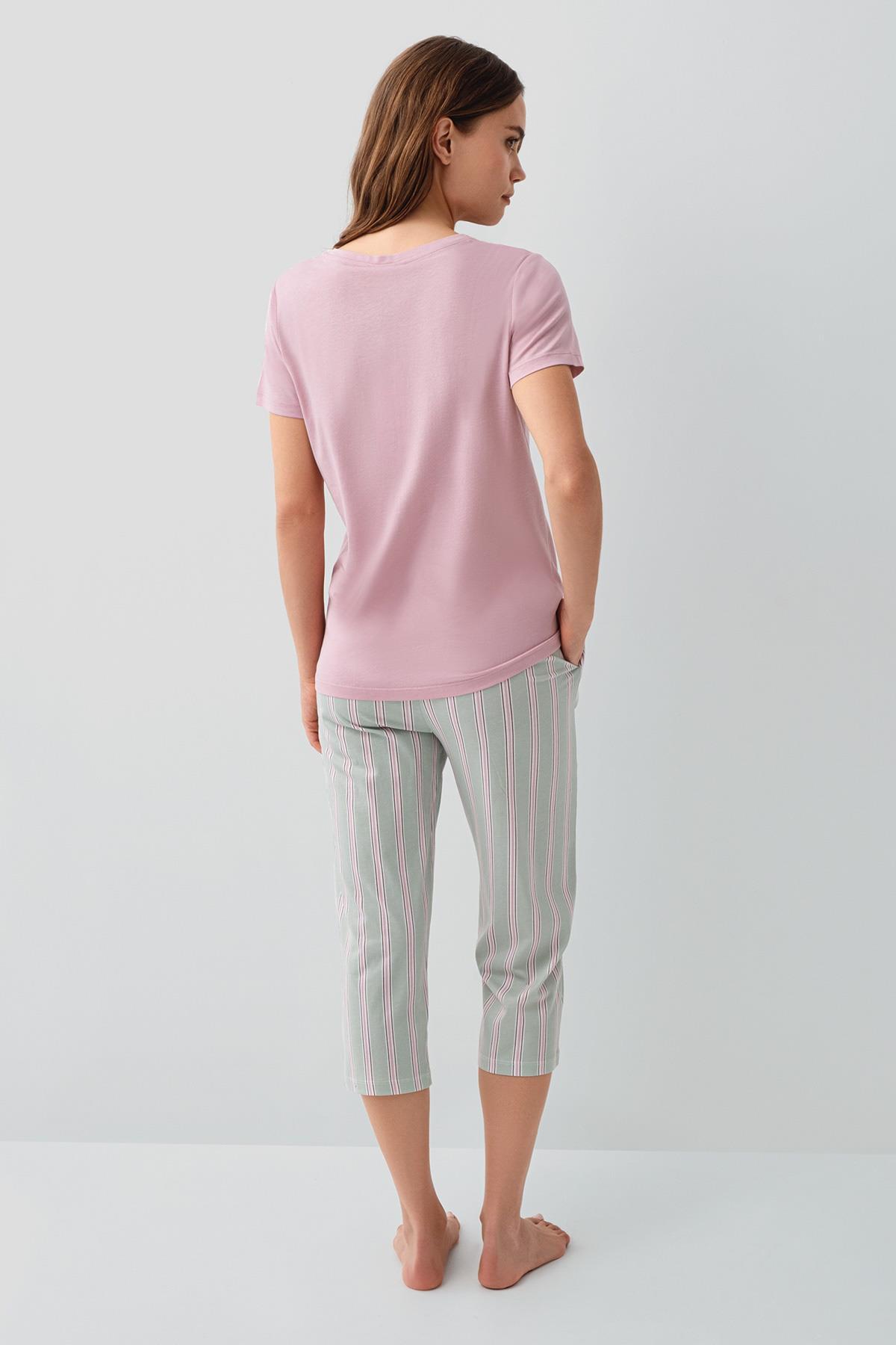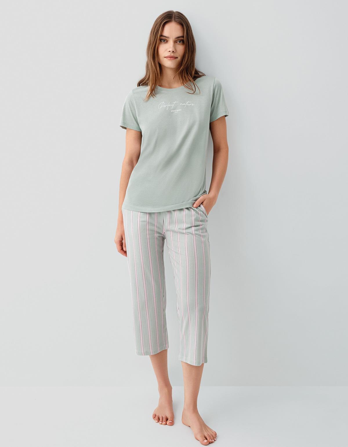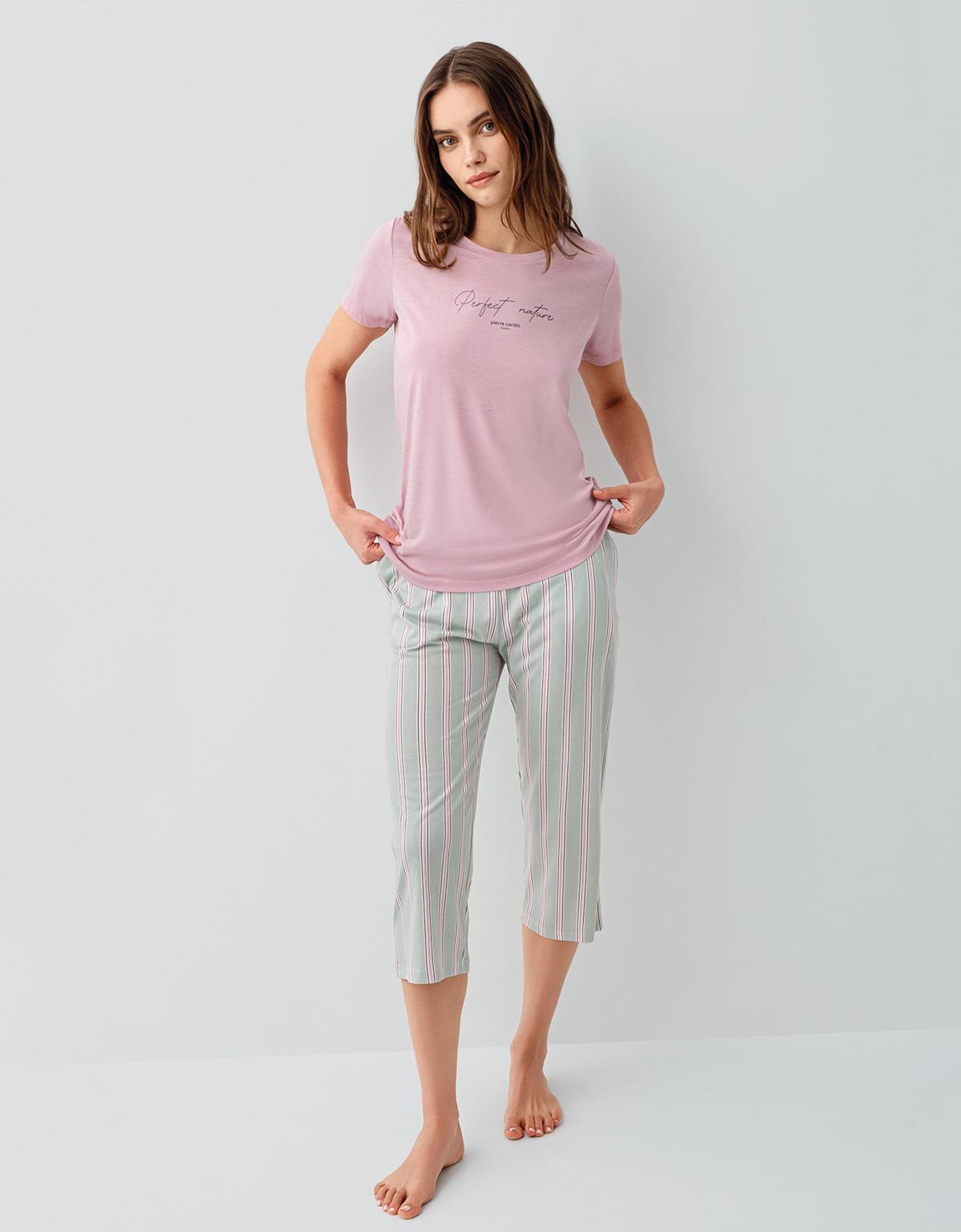 Pierre Cardin Kadın Modal Pamuk Kapri Pijama Takımı – Kısa Kollu Üst Çizgili Kapri Alt Cepli Rahat Ev Giyim