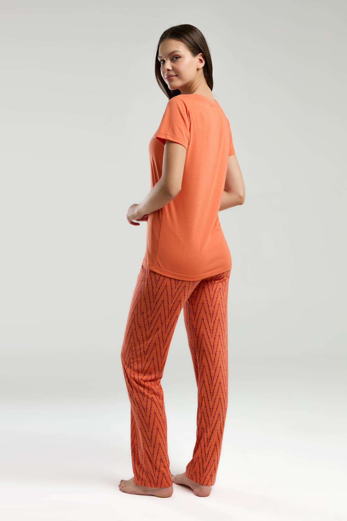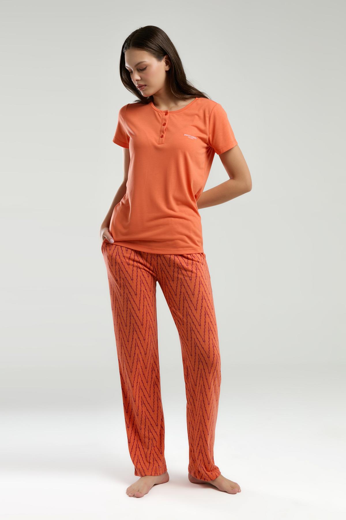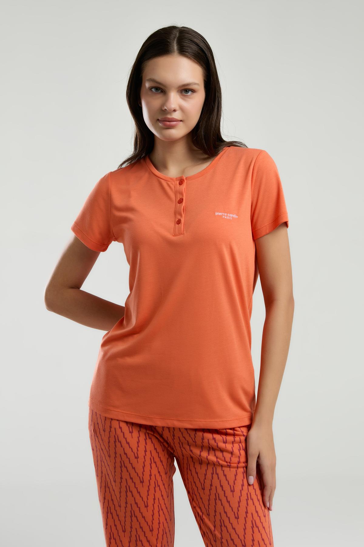 Pierre Cardin Kadın Turuncu Pijama Takım, Viskon Kumaş, Kısakol, Düğmeli Yaka, Cepli