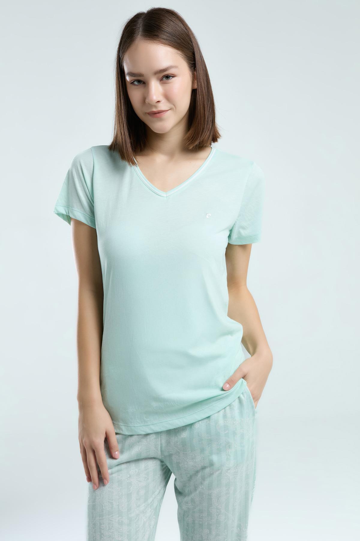Pierre Cardin Kadın V Yaka, Kısakol, Viskon Kumaş, Yazlık Pijama Takım