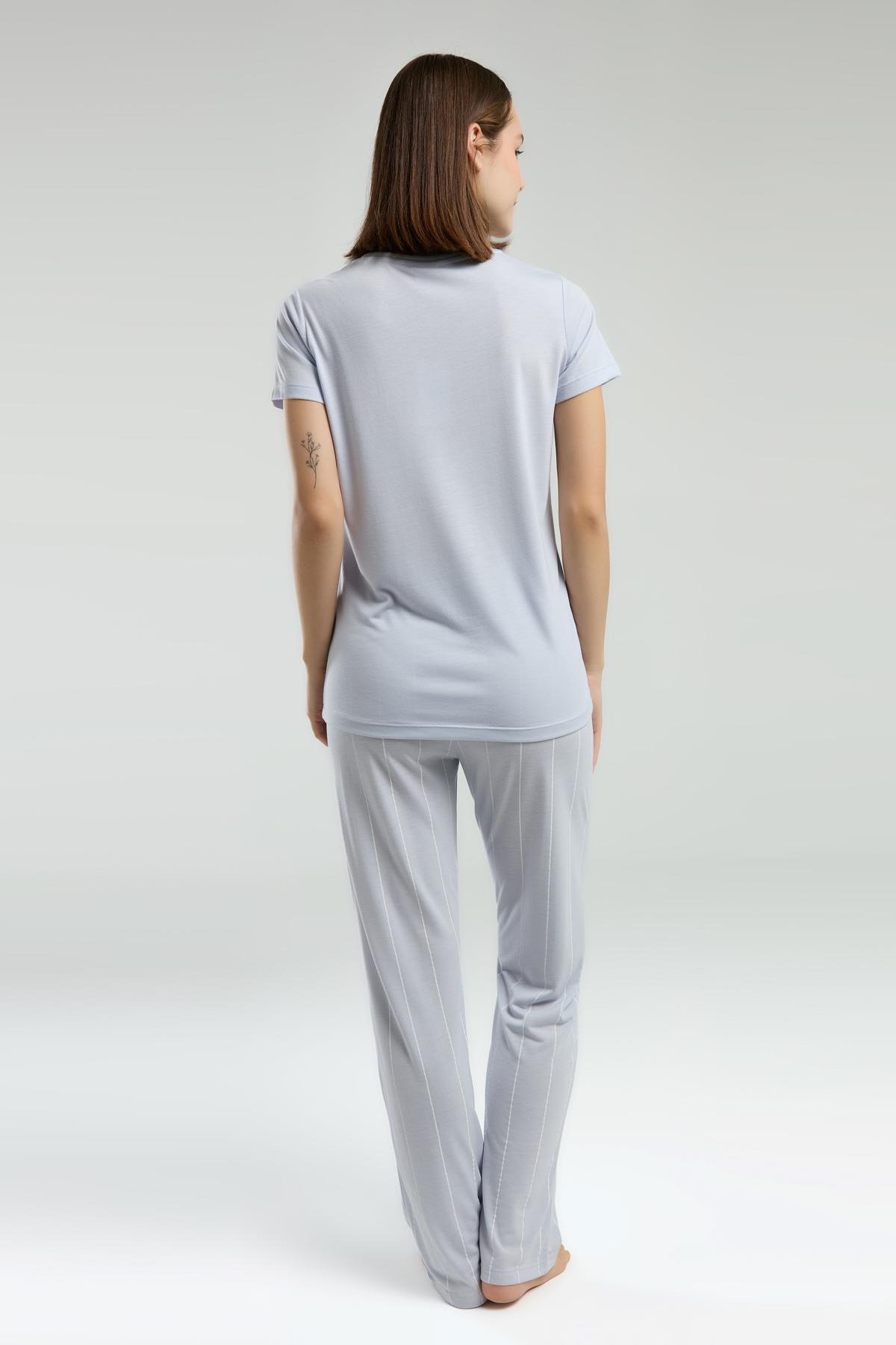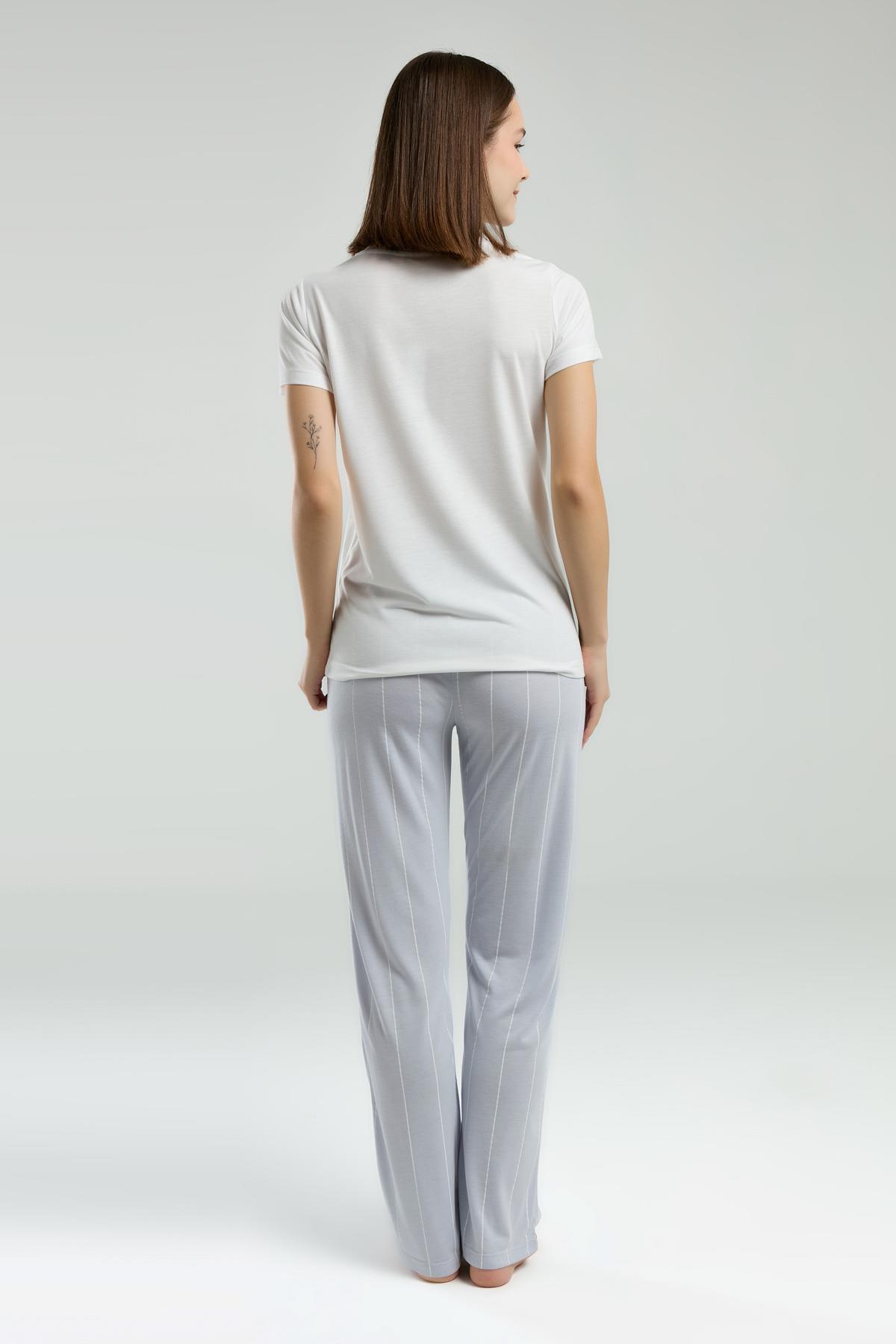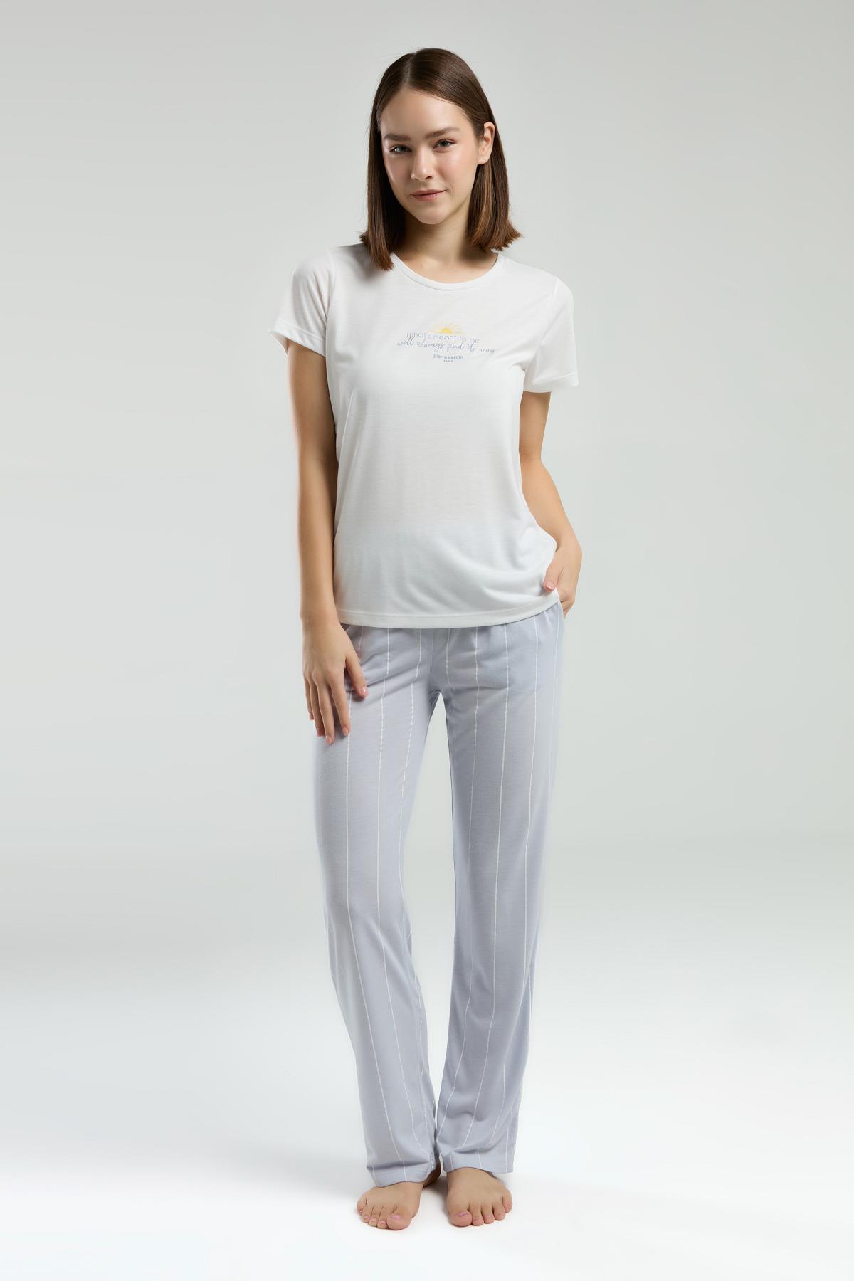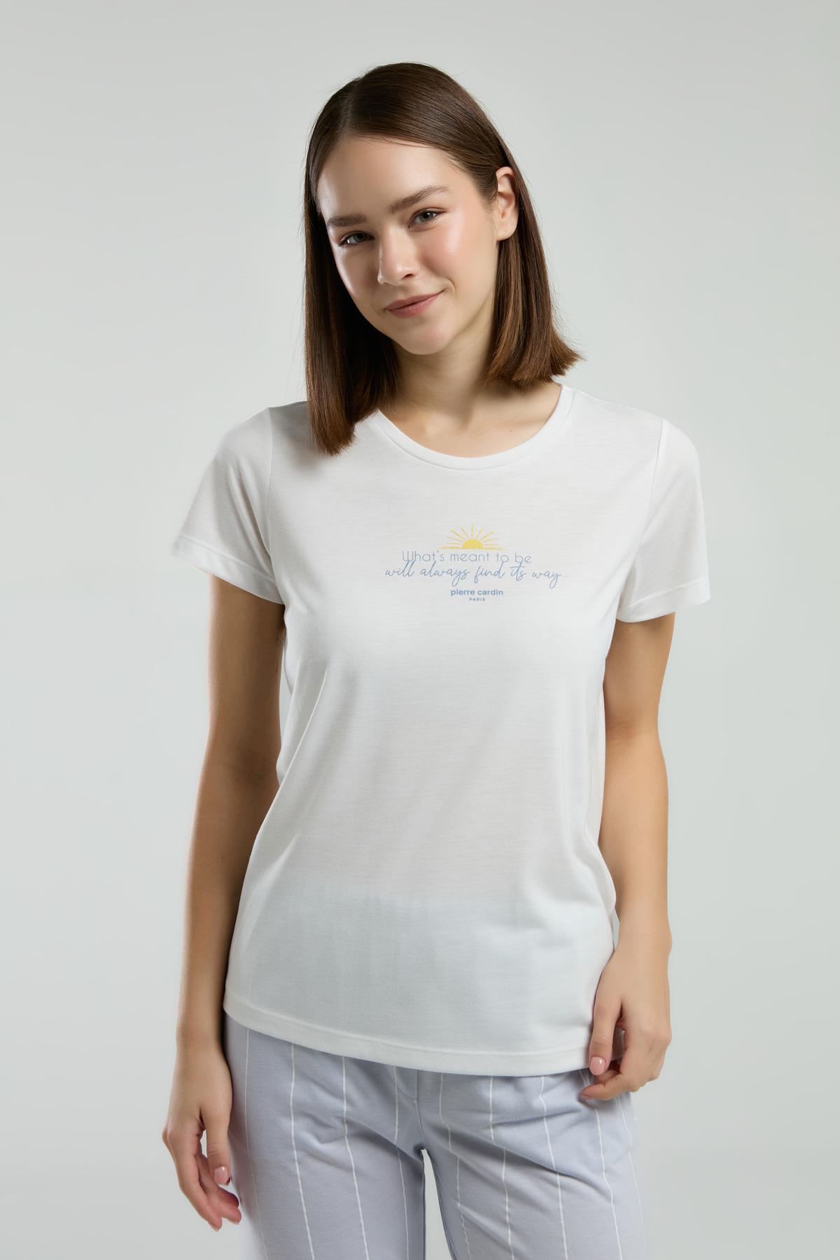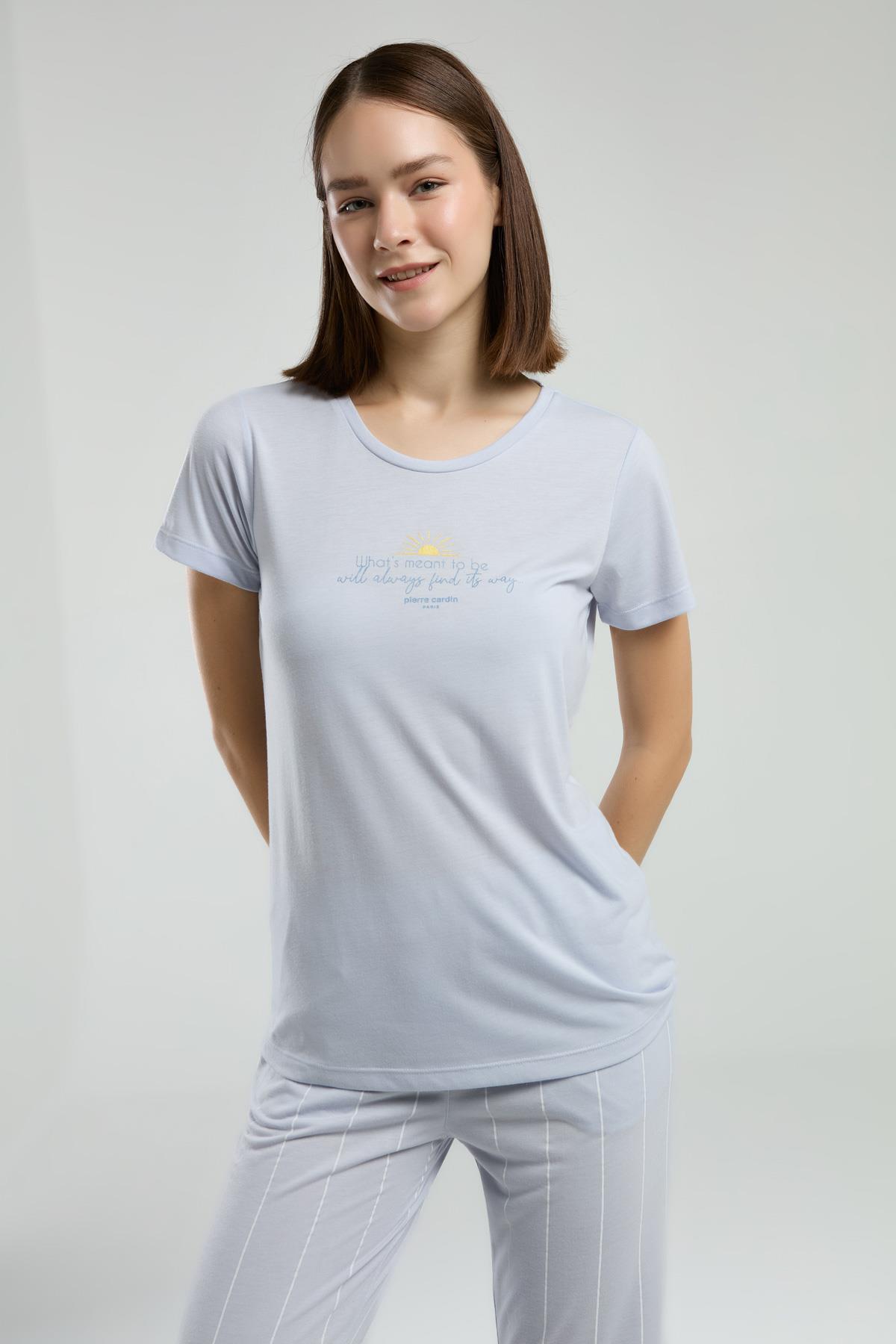 Pierre Cardin Kadın Yazlık Pijama Takım, Alt Çizgili ve Cepli, Üst kısakol yazı baskılı