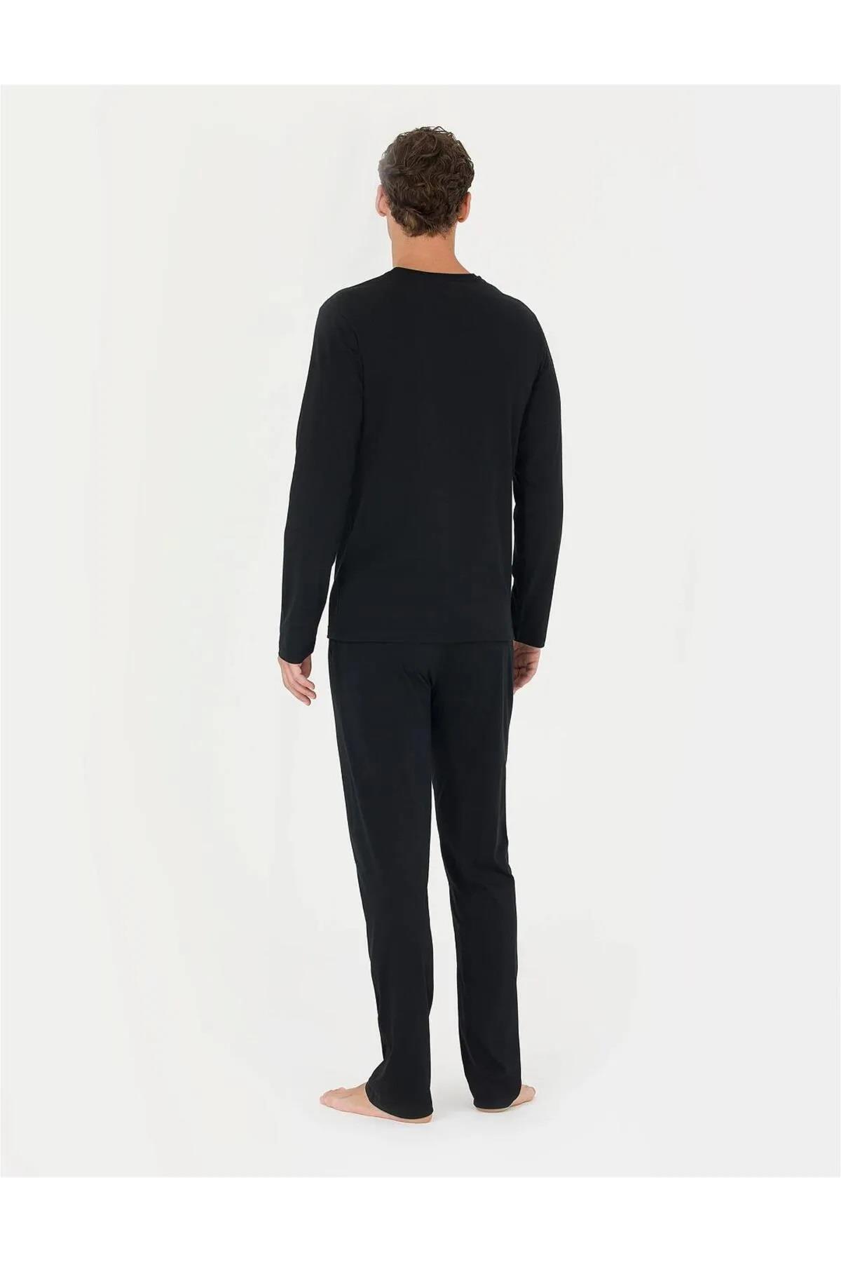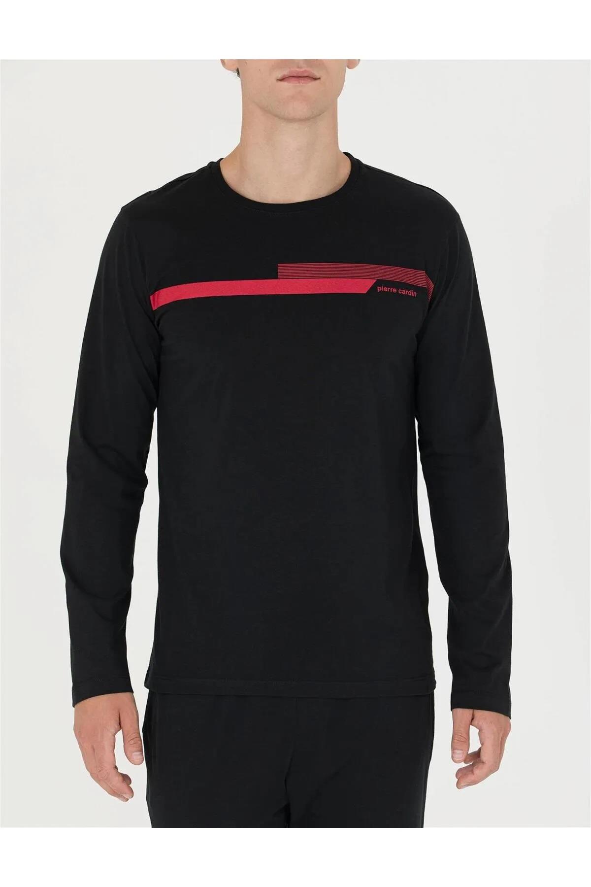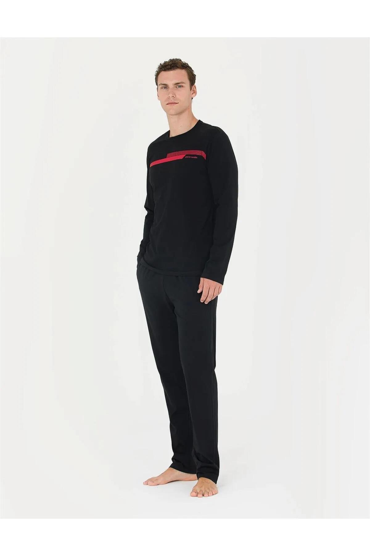 Pierre Cardin Siyah Erkek %100 Pamuk Pijama Takım, Uzun Kol Penye Pijama Takım