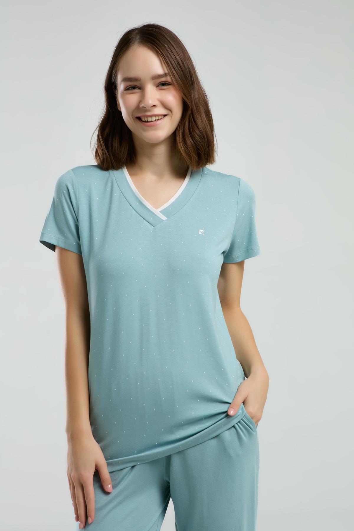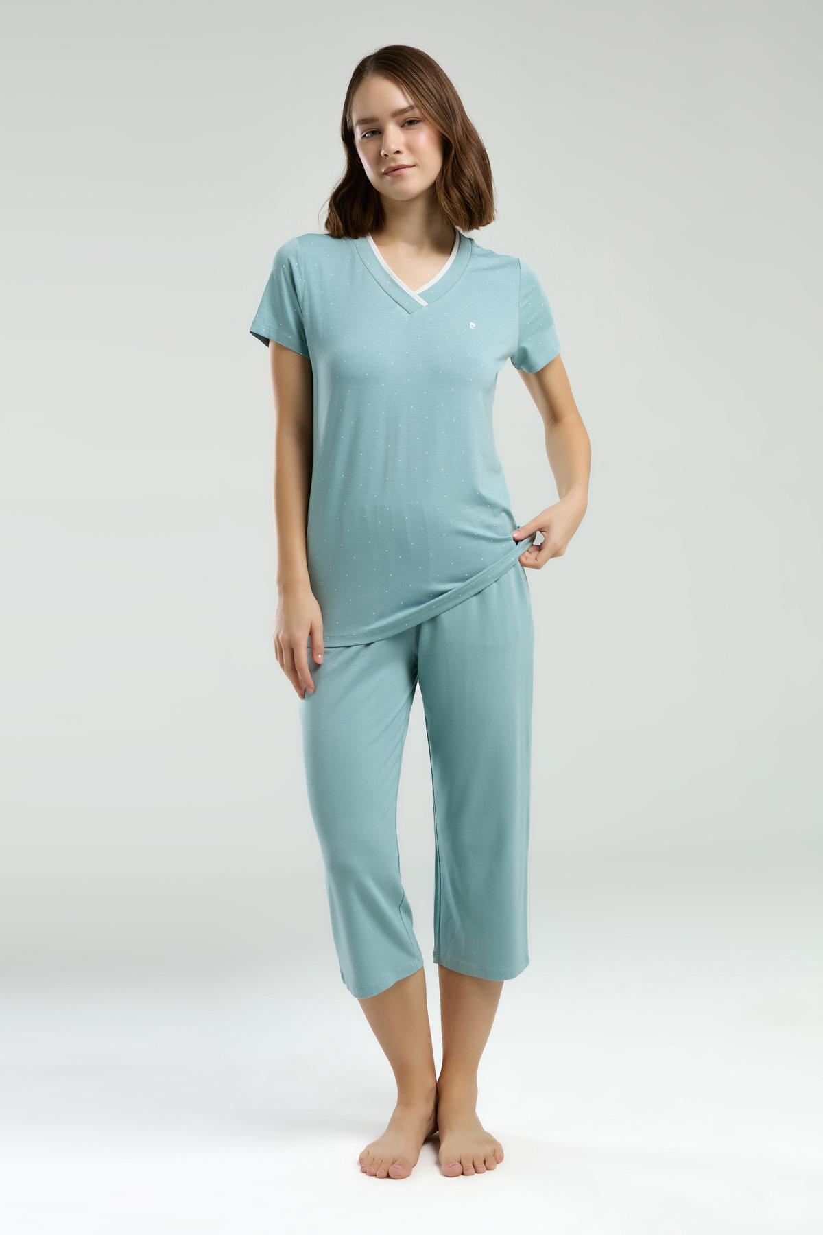 Pierre Cardin Su Yeşili V Yaka Kısakol Kapri Takım, Viskon Kumaş