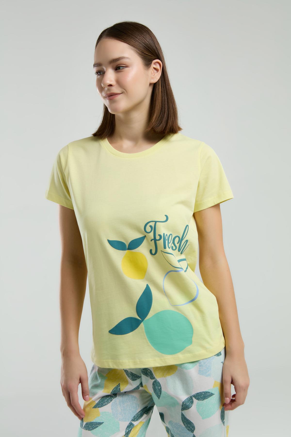 Anne Kız Pijama (Ayrı Ayrı Satılır) Takımı %100 Pamuk – Tropikal Desenli Kısa Kollu Kombin