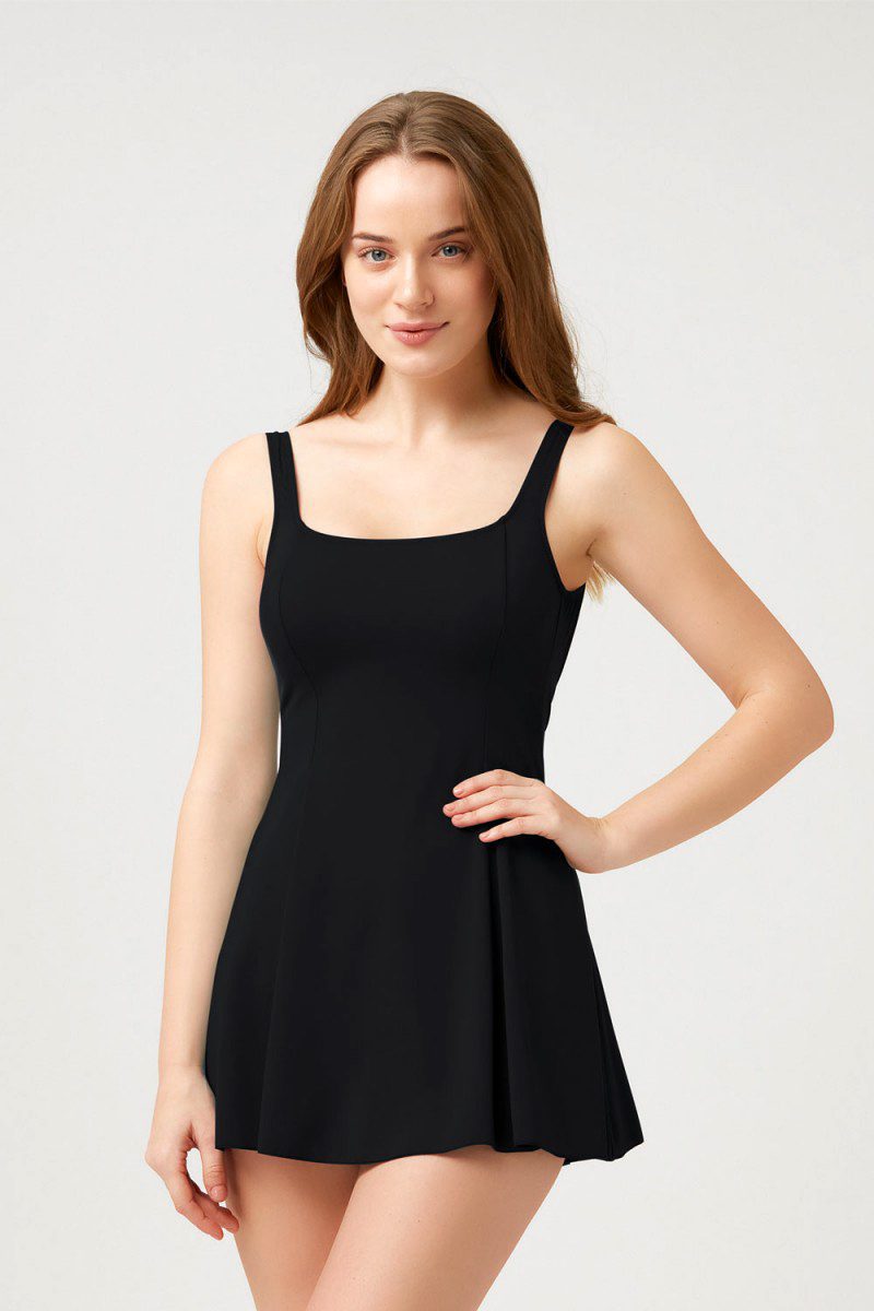 Kare yaka yapıda elbise mayo. Çıkarılabilir süngerleri ile kaplı ve kapsız kullanıma uygundur, telsiz yapısıyla rahat bir görünüm sağlar. Elastik yapısıyla vücuda tam oturur, giyim konforu sağlar. Yüksek kaliteli kumaşlardan üretilmiş Kom mayonuzu; güneş kremlerinin, güneş yağlarının,klorun, güneş ışınlarının yıpratıcı etkilerinden korumak için lütfen kullanım talimatlarınıza uyunuz.