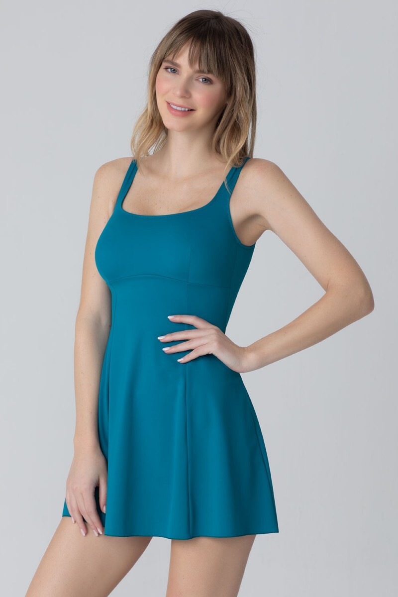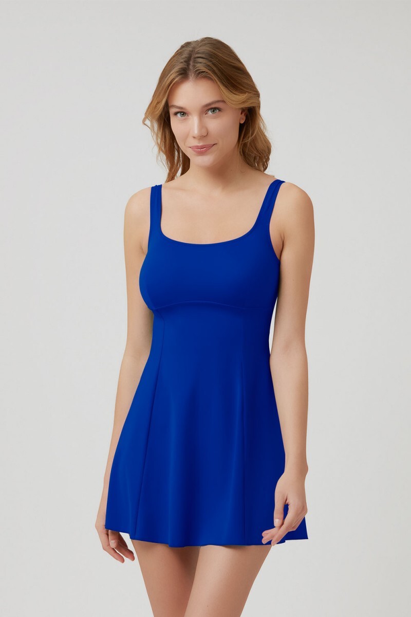 Yuvarlak yaka yapıda şortlu elbise mayo. Çıkarılabilir süngerleri ile kaplı ve kapsız kullanıma uygundur, telsiz yapısıyla rahat bir görünüm sağlar. Elastik yapısıyla vücuda tam oturur, giyim konforu sağlar. Yüksek kaliteli kumaşlardan üretilmiş Kom mayonuzu; güneş kremlerinin, güneş yağlarının,klorun, güneş ışınlarının yıpratıcı etkilerinden korumak için lütfen kullanım talimatlarınıza uyunuz.