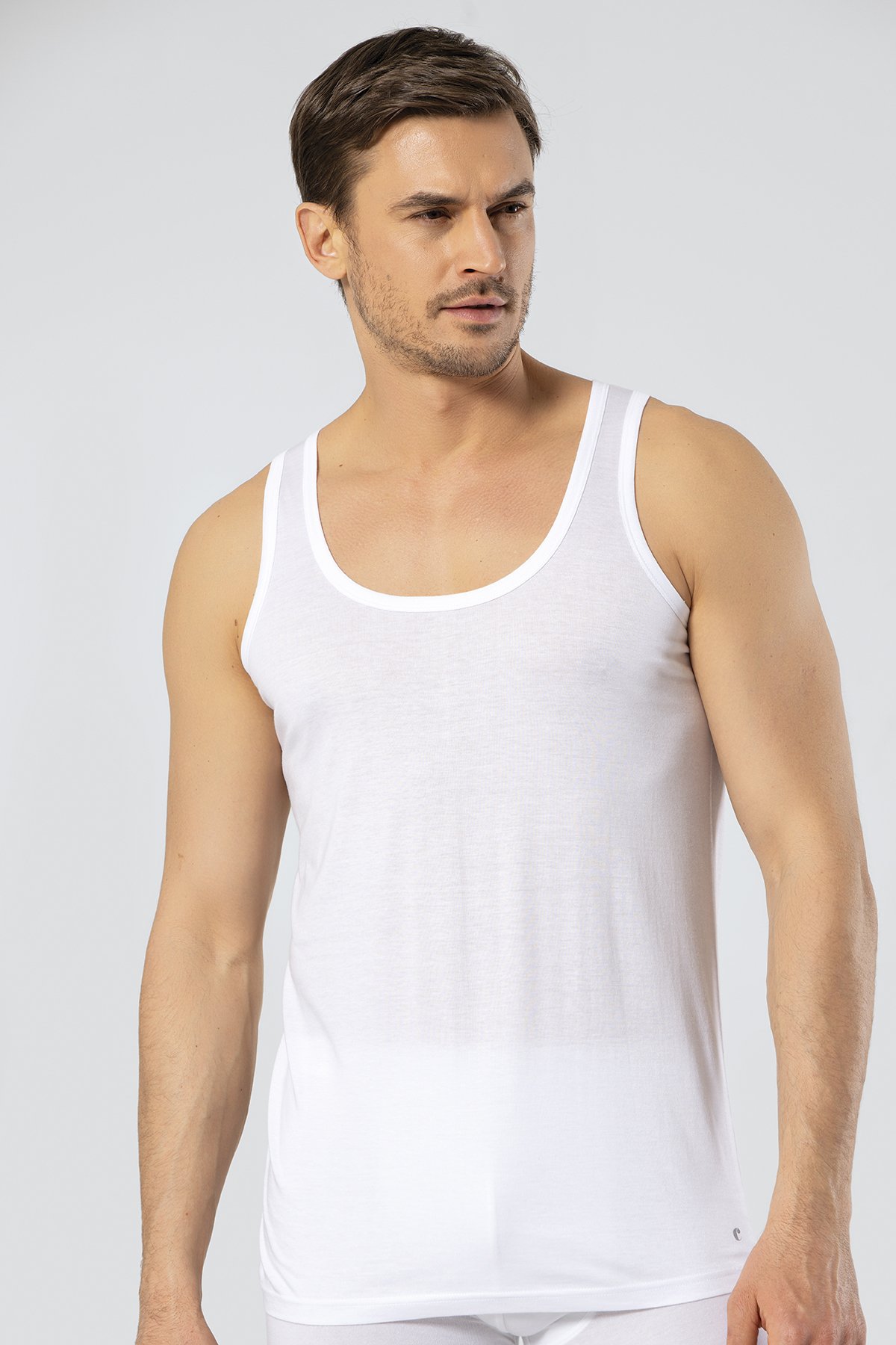 Süprem Dokuma Beyaz Erkek Atleti, %50 Modal %50 Pamuk