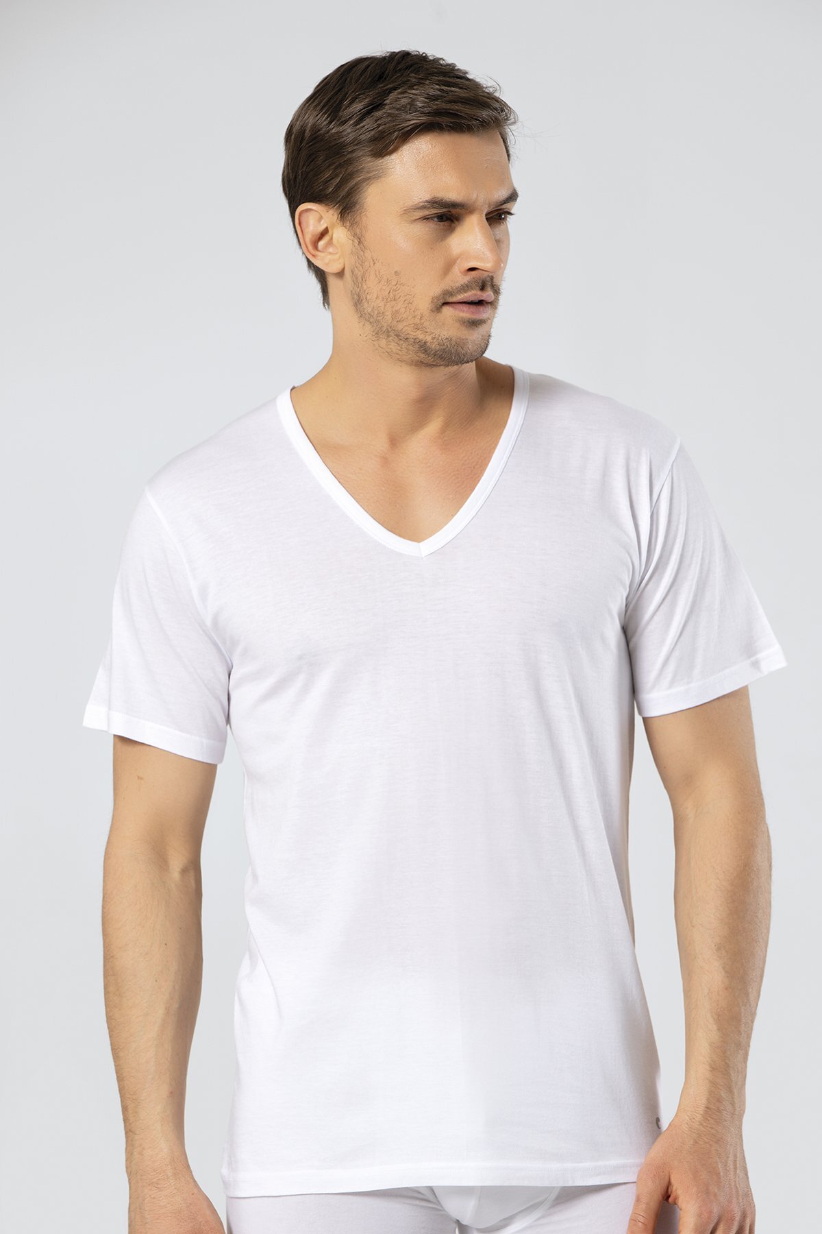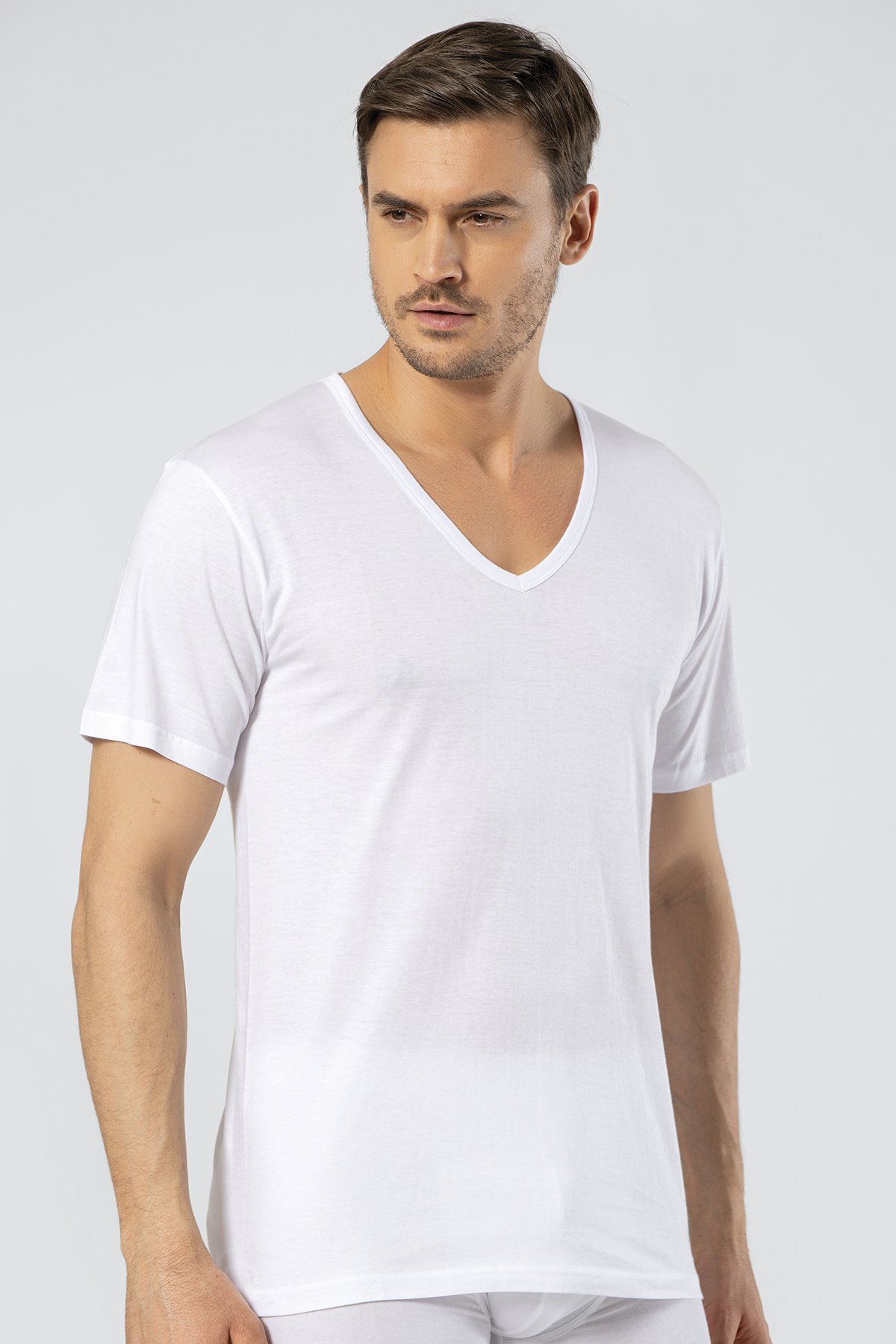 Süprem Dokuma V Yaka Beyaz Erkek Fanila, %50 Modal %50 Pamuk