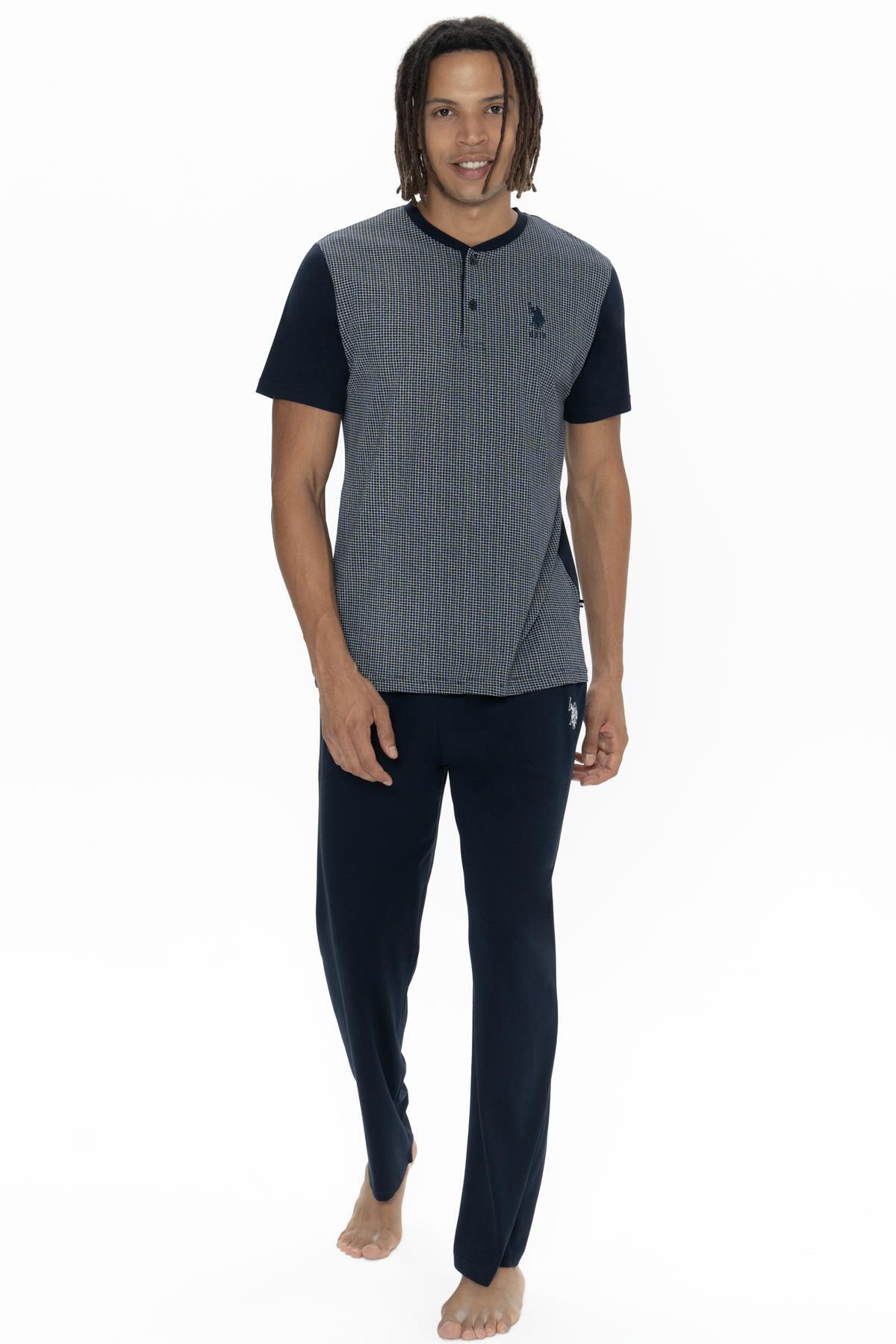 Erkek %100 Pamuk Pijama Takımı – Kısa Kollu Cepli T-Shirt & Desenli Uzun Pijama Altı