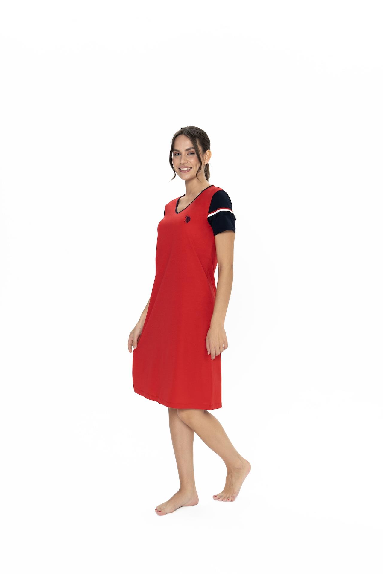 Us Polo %100 Pamuk, Kadın Geniş V Yaka, Kısa Kol, Midi Gecelik