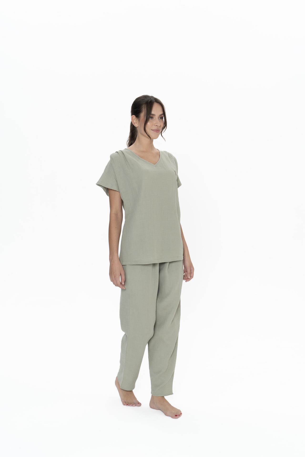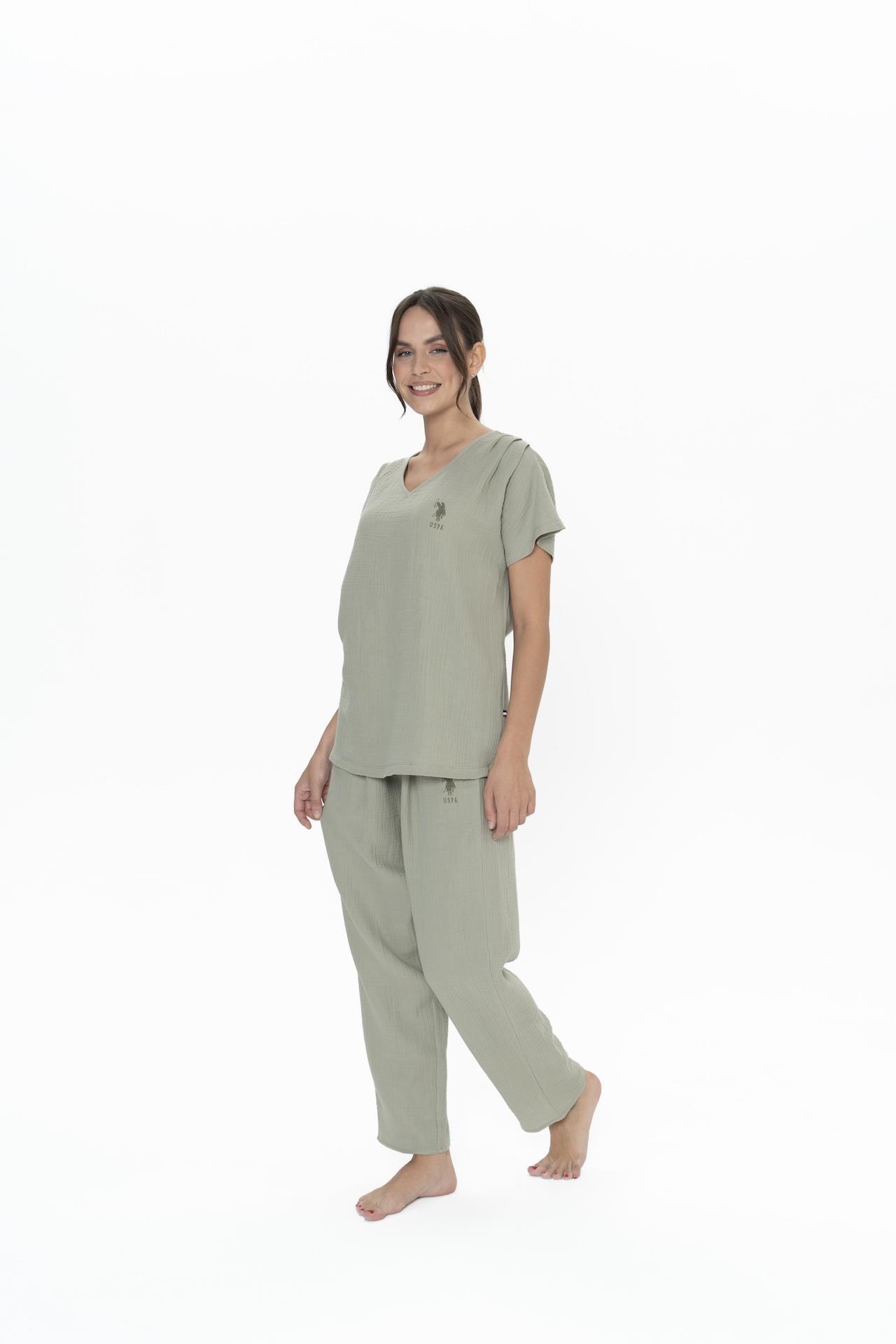 Us Polo %100 Pamuk, Müslin Kumaş, Geniş V Yaka Yazlık Kadın Pijama Takım