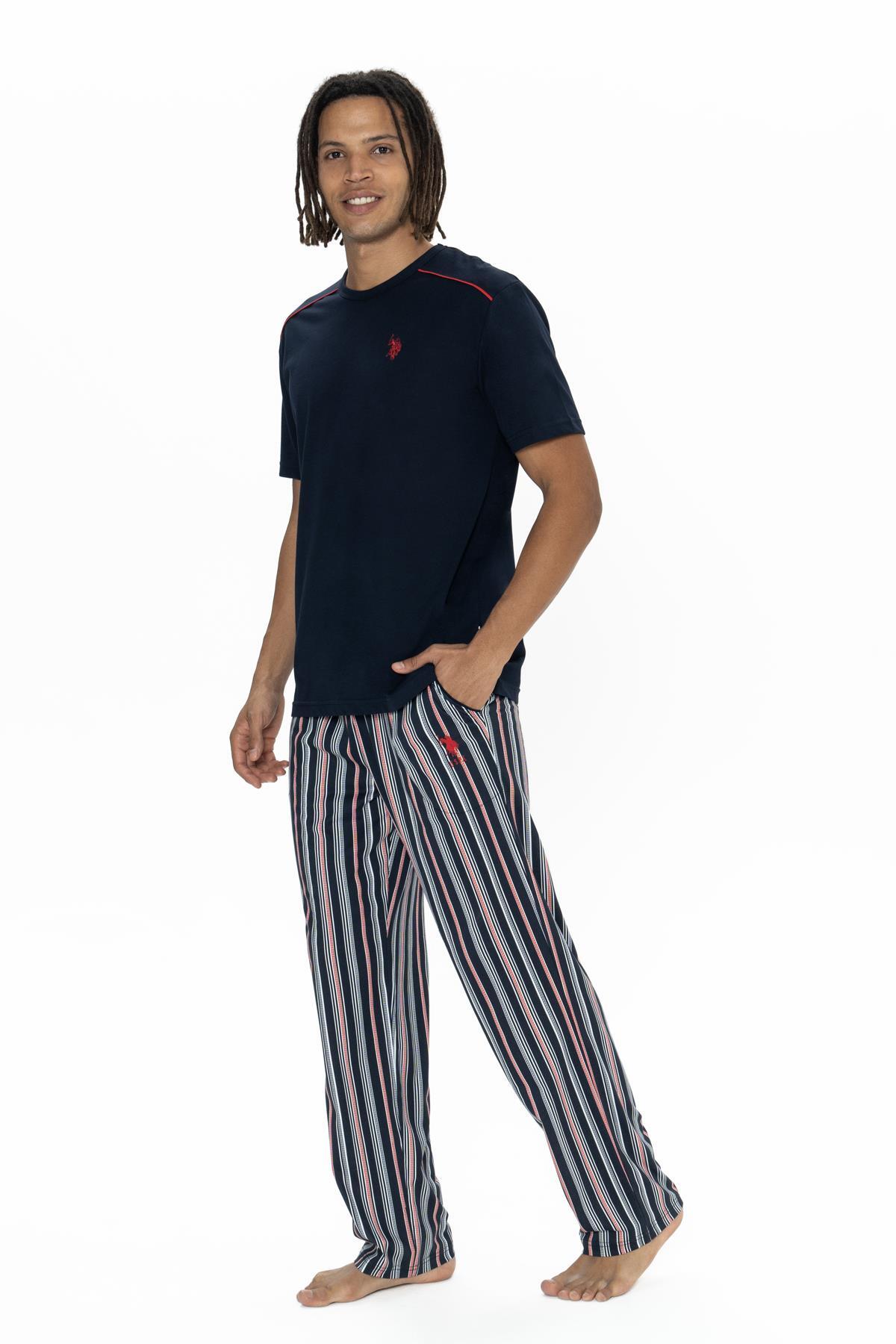Erkek %100 Pamuk Pijama Takımı – Kısa Kollu T-Shirt & Uzun Pijama Altı