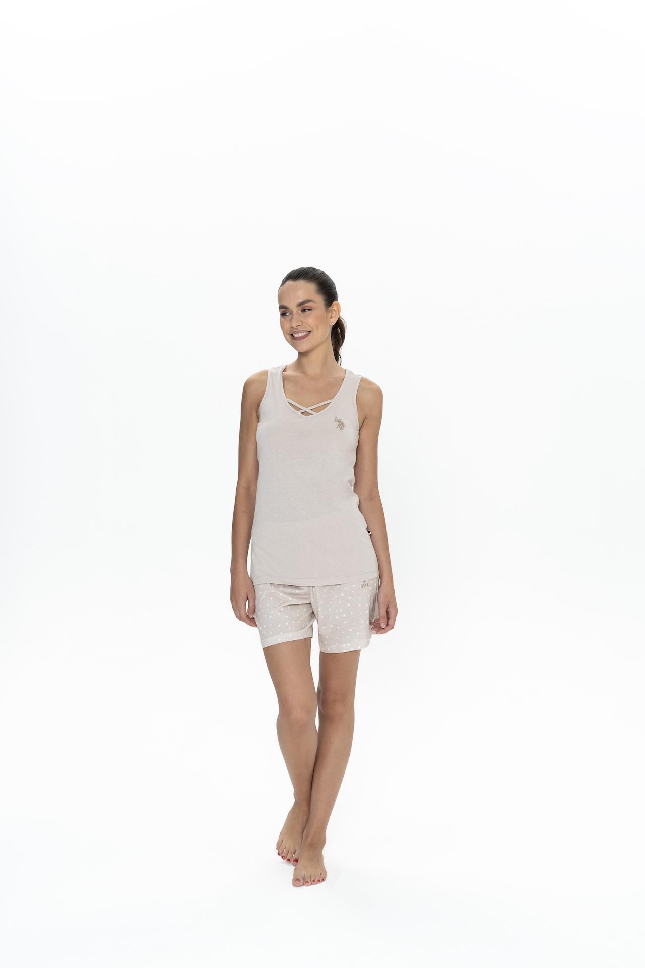 Us Polo %50 Pamuk %50 Modal Kadın Askılı T-shirt Şort Takım