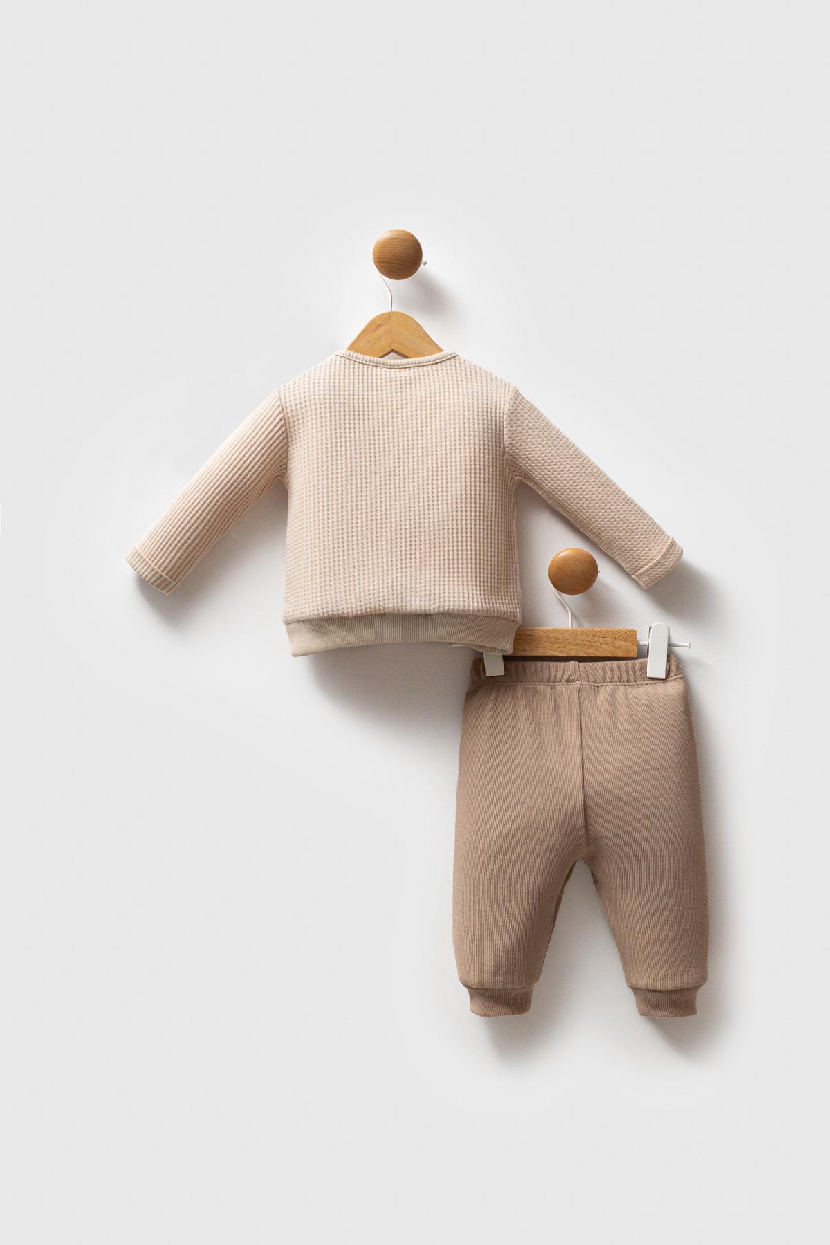 U.S. Polo Assn. Bej Erkek Bebek %100 Pamuklu Waffle Kumaş Alt Üst Takım