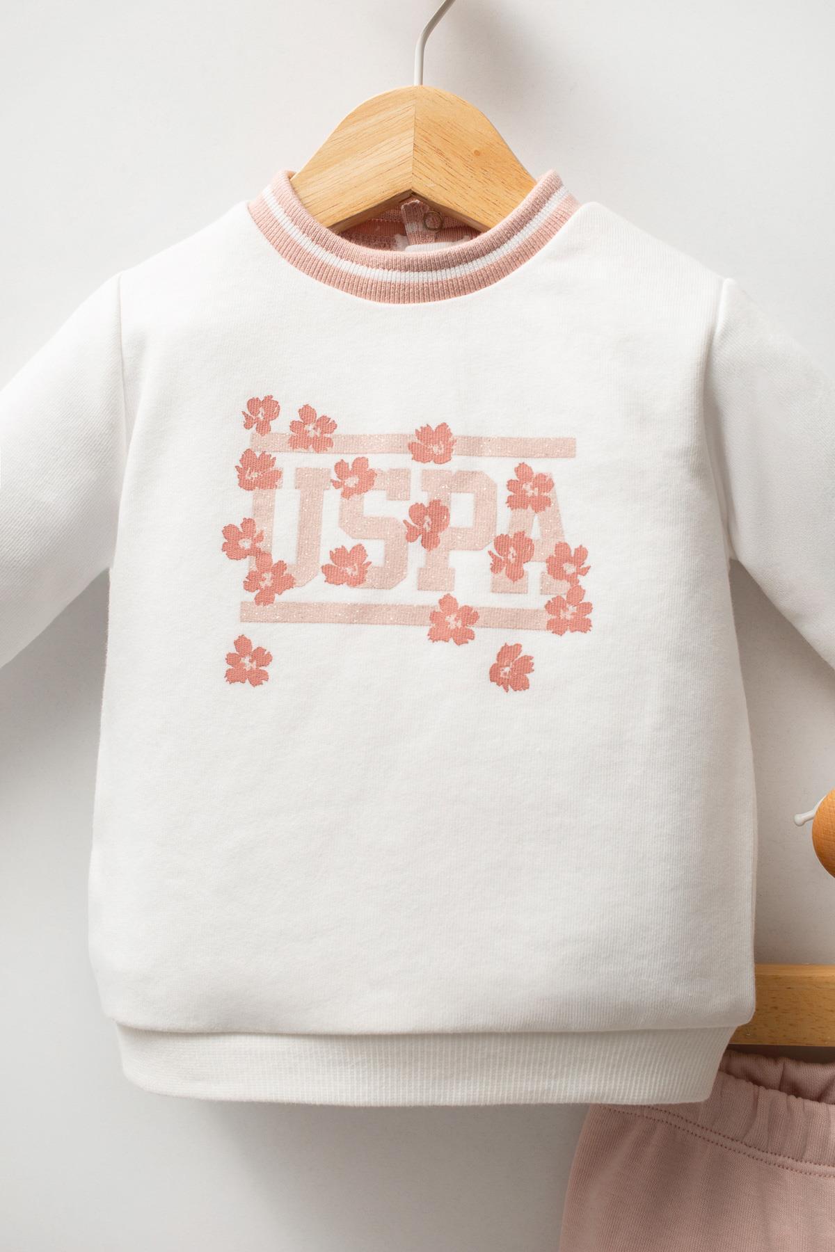 U.S. Polo Assn. Beyaz Somon Kız Bebek 3 İplik Kalın Kışlık Alt Üst Takım