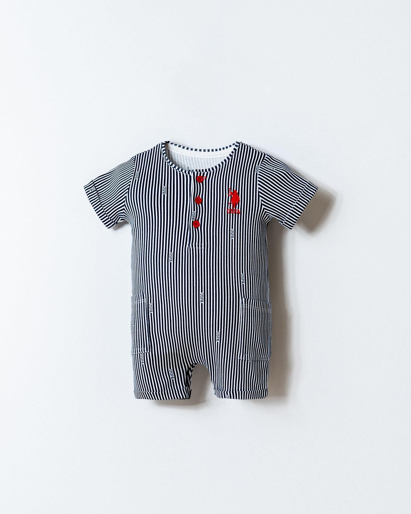 U.S. Polo Assn. Erkek Bebek %100 Pamuk Çizgili Golf Tulum | Yazlık Bebek Tulum