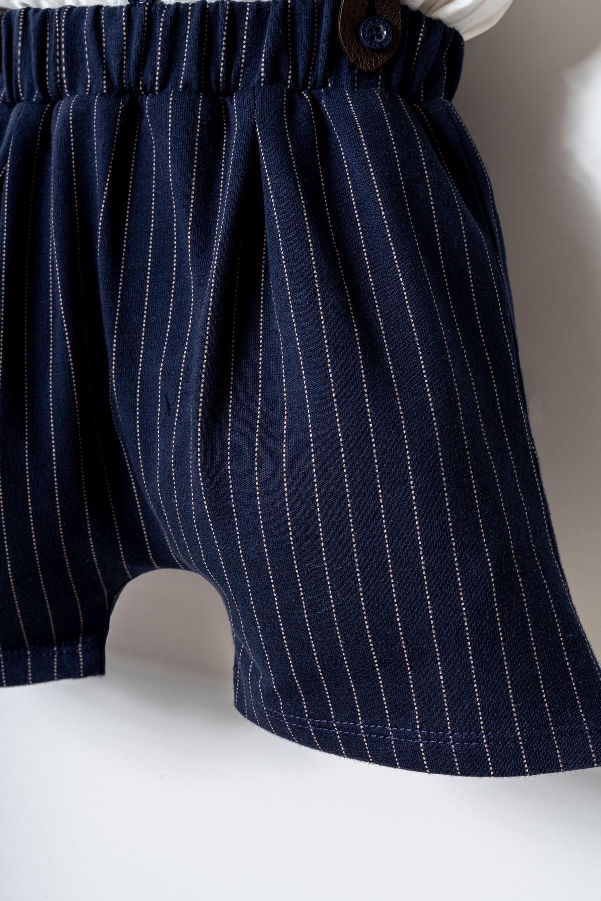Nefes alabilen pamuklu yapısı sayesinde bebeğinizin hassas cildine uyum sağlar. Papyon ve askı detaylarıyla modern ve zarif bir görünüm sunarken, elastik bel yapısı gün boyu rahat kullanım sağlar. Hem konforlu hem de stil sahibi bir tercih arayan ebeveynler için mükemmel bir settir.