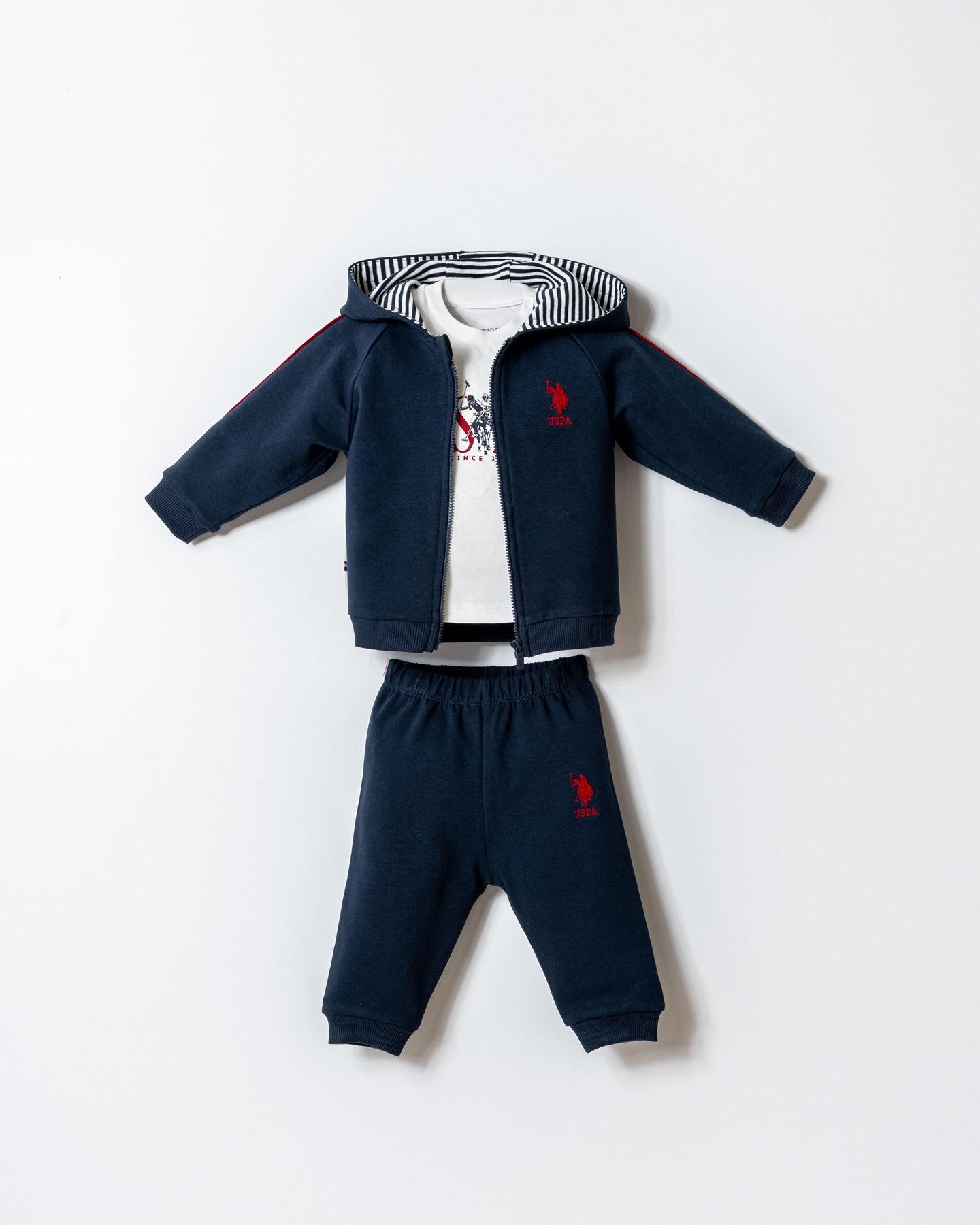 U.S. Polo Assn. Erkek Bebek 3’lü Takım Kapüşonlu Fermuarlı Sweatshirt T-Shirt Pantolon %96 Pamuk 6-9 Ay – 3 Yaş Lacivert