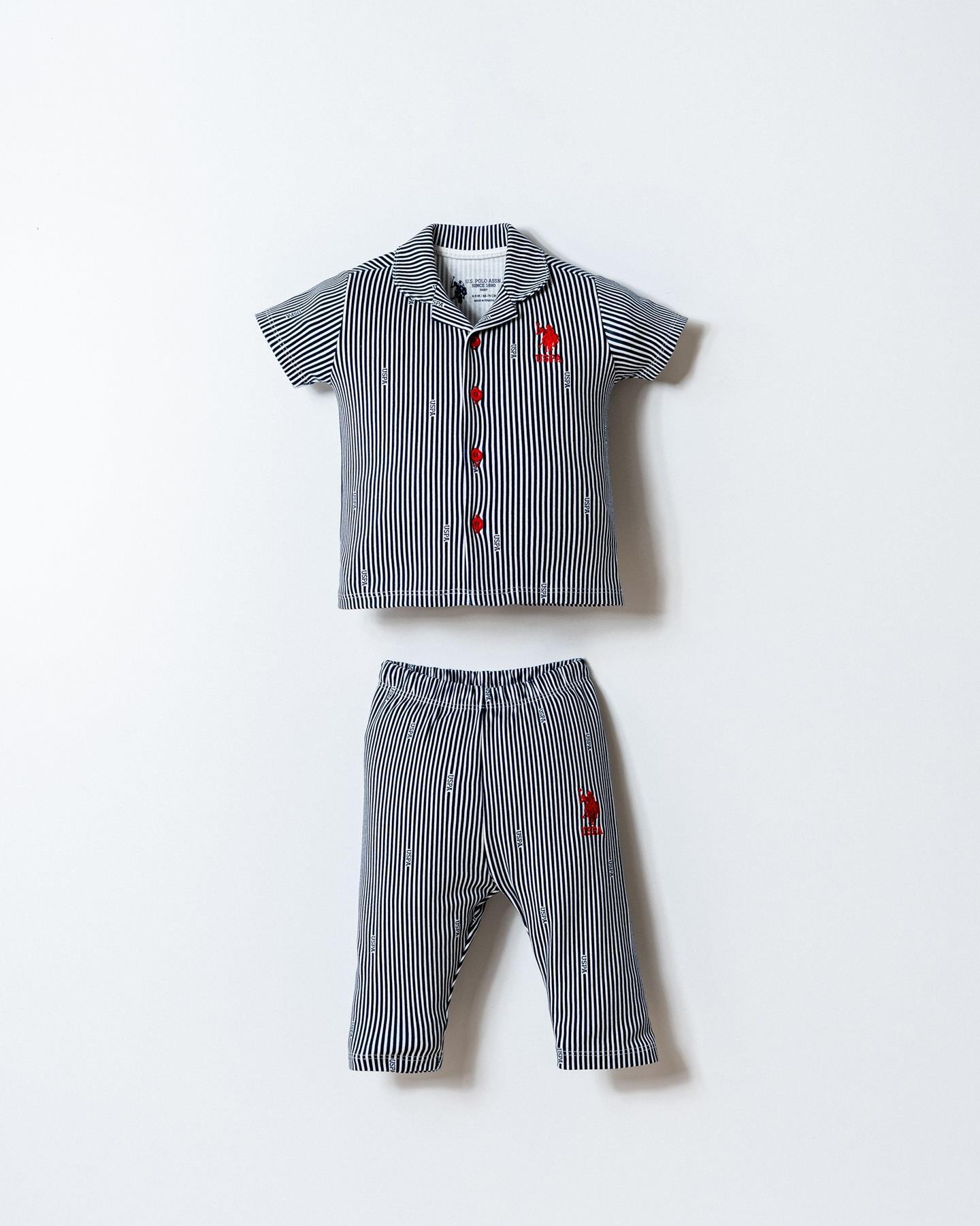 Ev şıklığını konforla buluşturan U.S. Polo Assn. erkek bebek gömlek pijama takımı, minik beylerin dolabında hem rahat hem stil sahibi bir parça olacak.