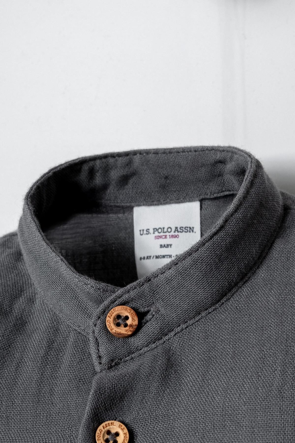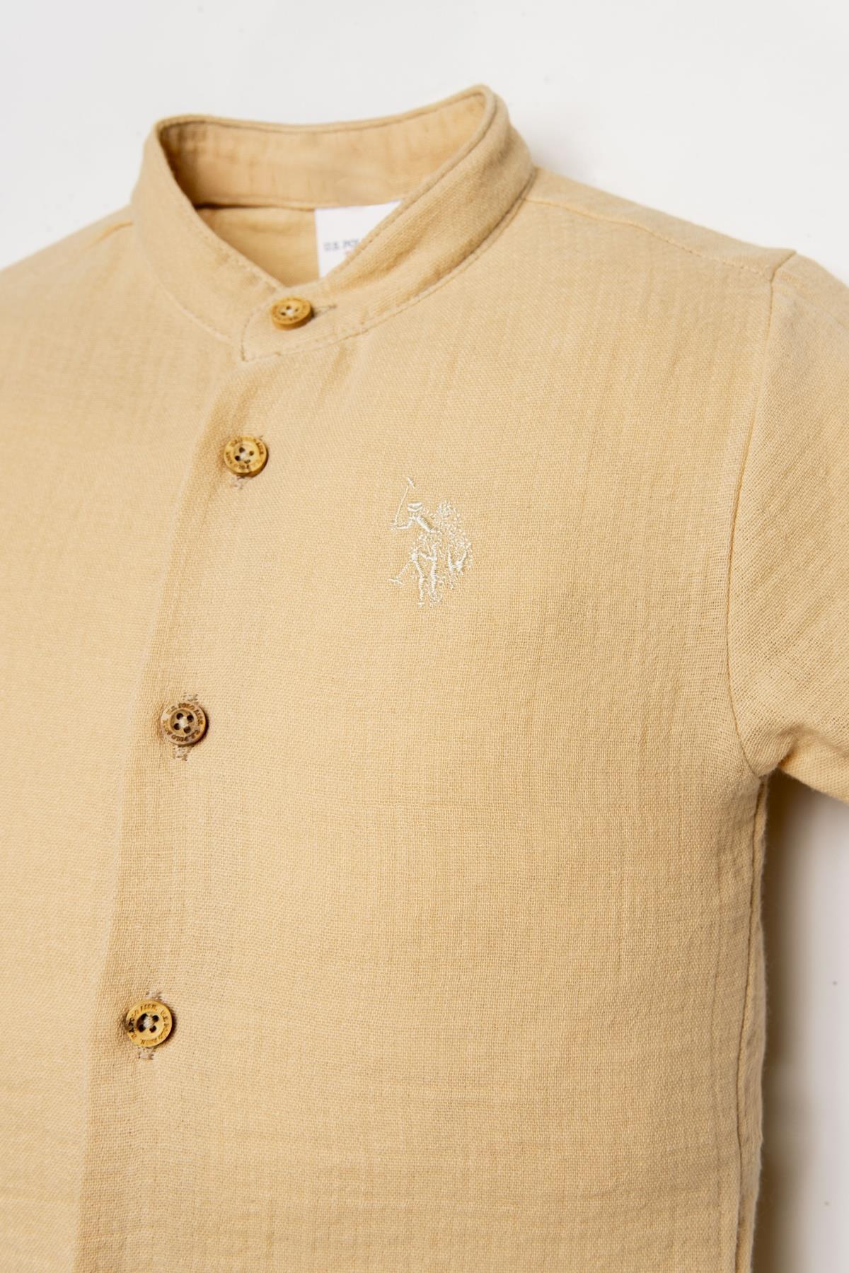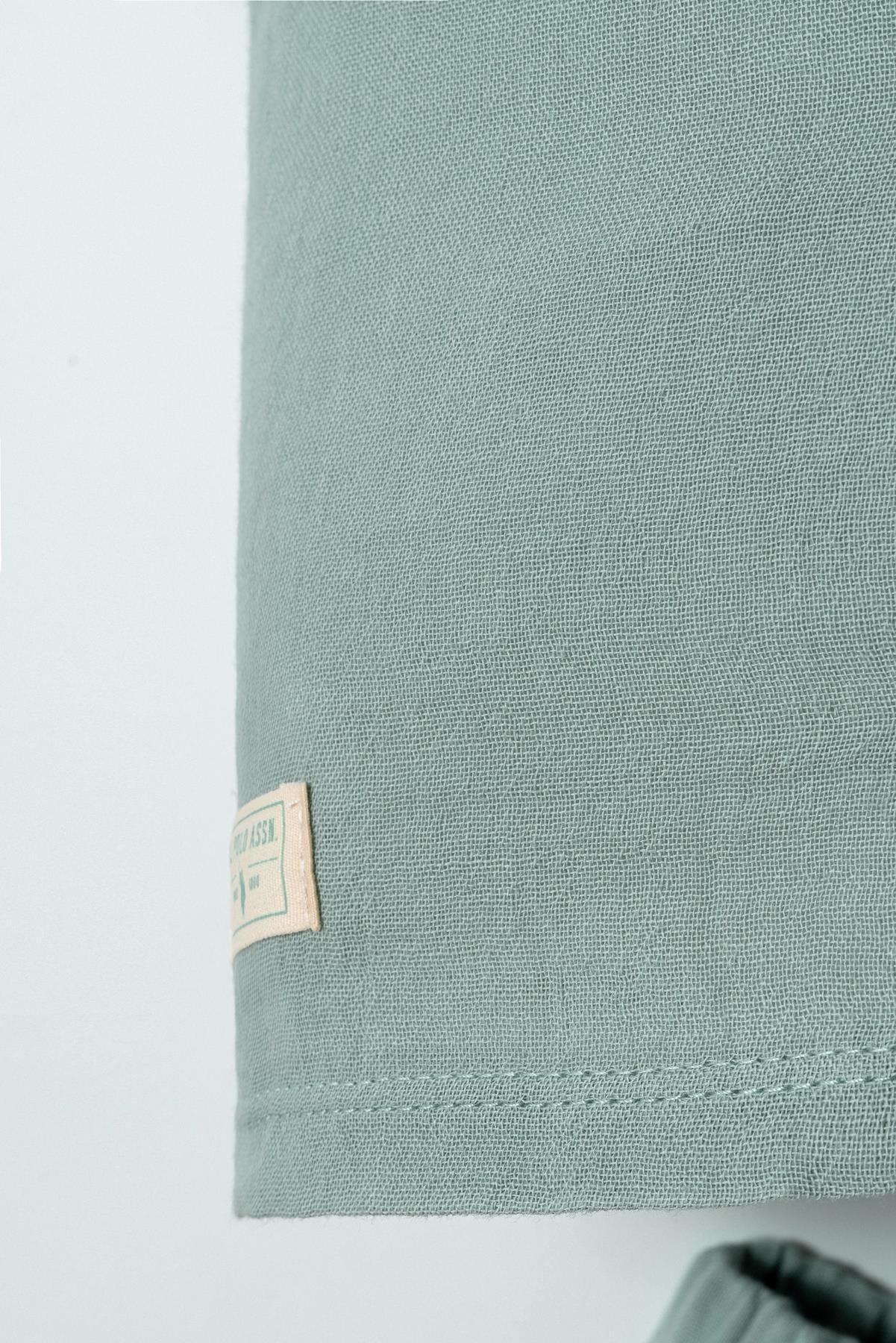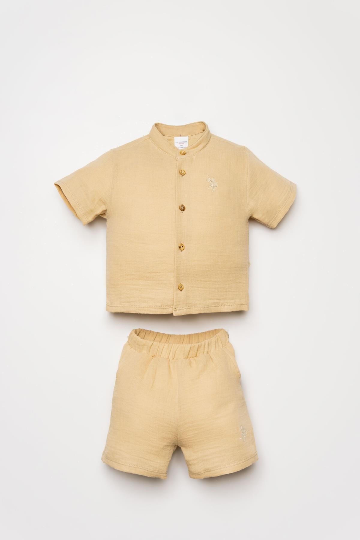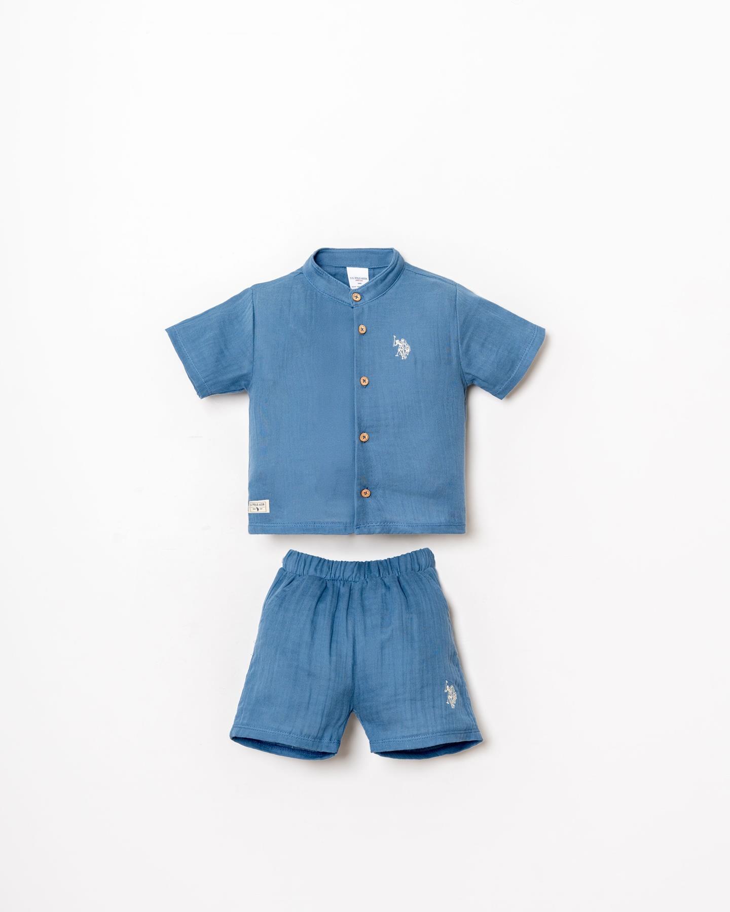 U.S. Polo Assn. Erkek Bebek Şort Gömlek Takım, yaz ayları için özel olarak tasarlanmış %100 pamuk müslin kumaşı ile bebeğinizin cildine nefes aldırır ve gün boyu konfor sağlar. Hafif, yumuşak ve terletmeyen yapısıyla sıcak havalarda ideal bir tercihtir.