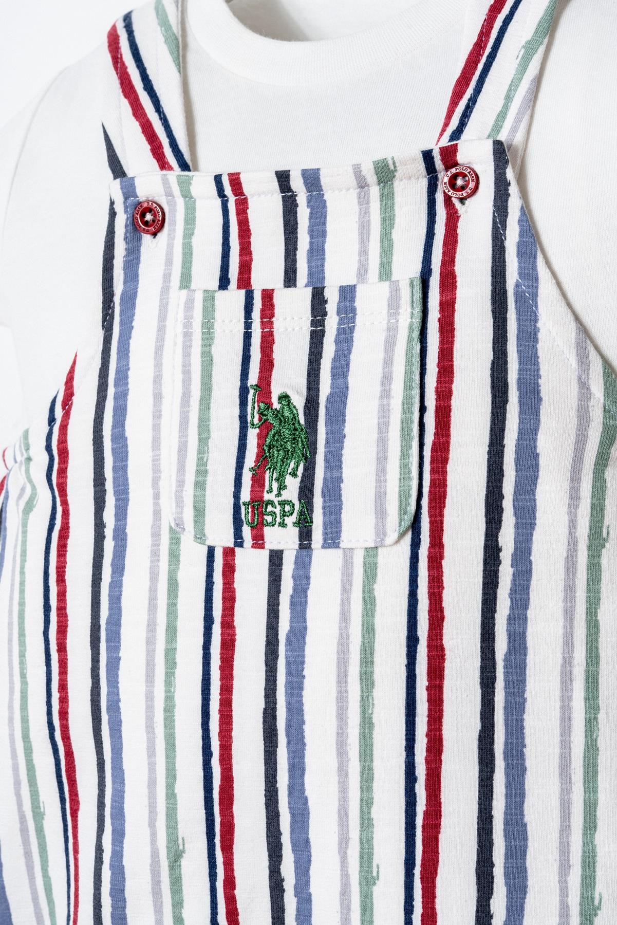 U.S. Polo Assn. Erkek Bebek Salopet Takım Çizgili Bahçıvan Tulum T-Shirt Set %96 Pamuk %4 elastan