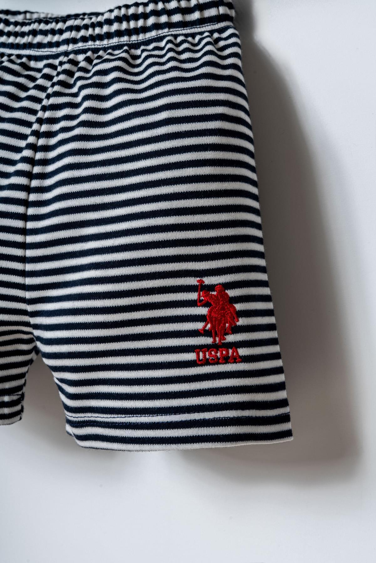 U.S. Polo Assn. Erkek Bebek Şort T-Shirt Takım %100 Pamuk Süprem Üst İnterlok Şort Çizgili Lacivert Beyaz Yazlık Alt Üst Takım 6-9 Ay – 3 Yaş