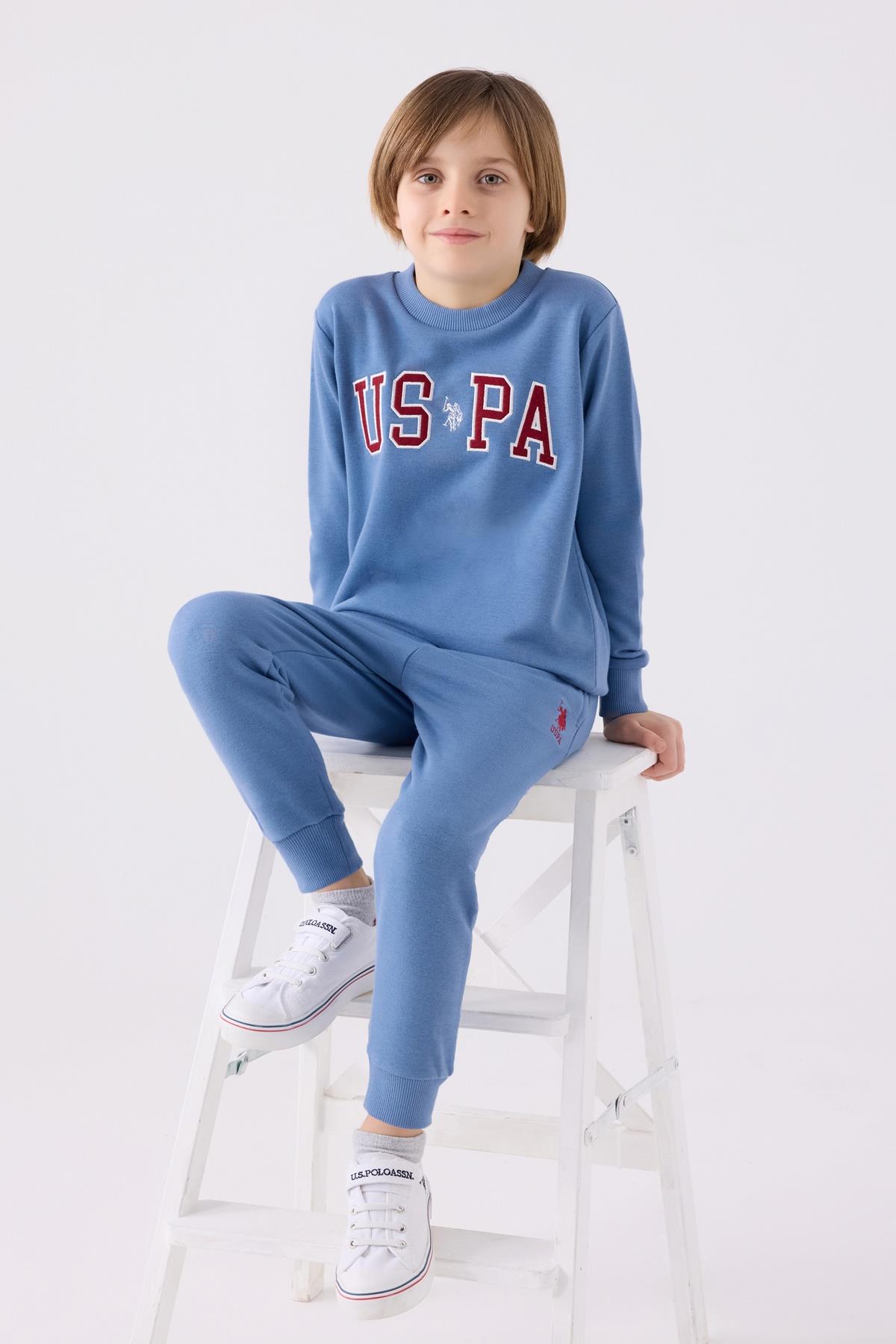 U.S. Polo Assn. Erkek Çocuk 3 İplik Dokuma Bordo Mavi Pijama Takım