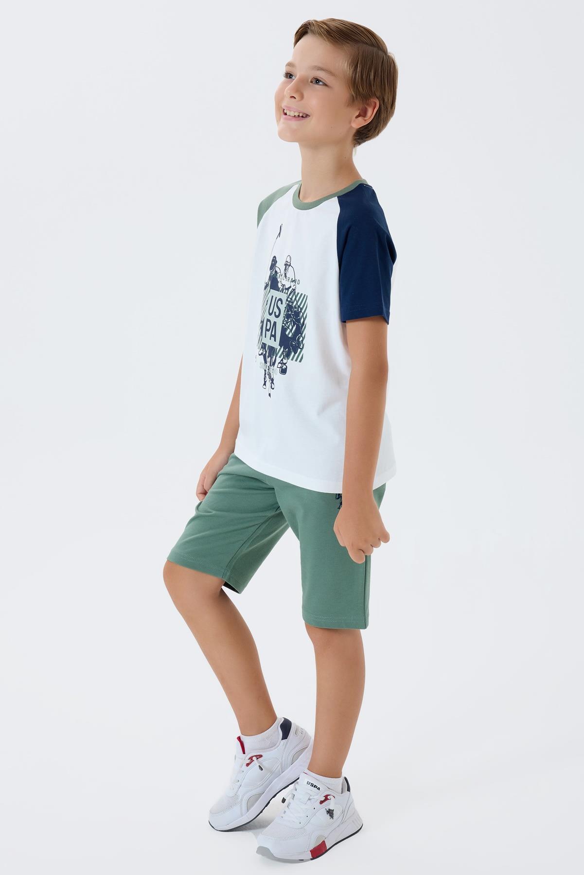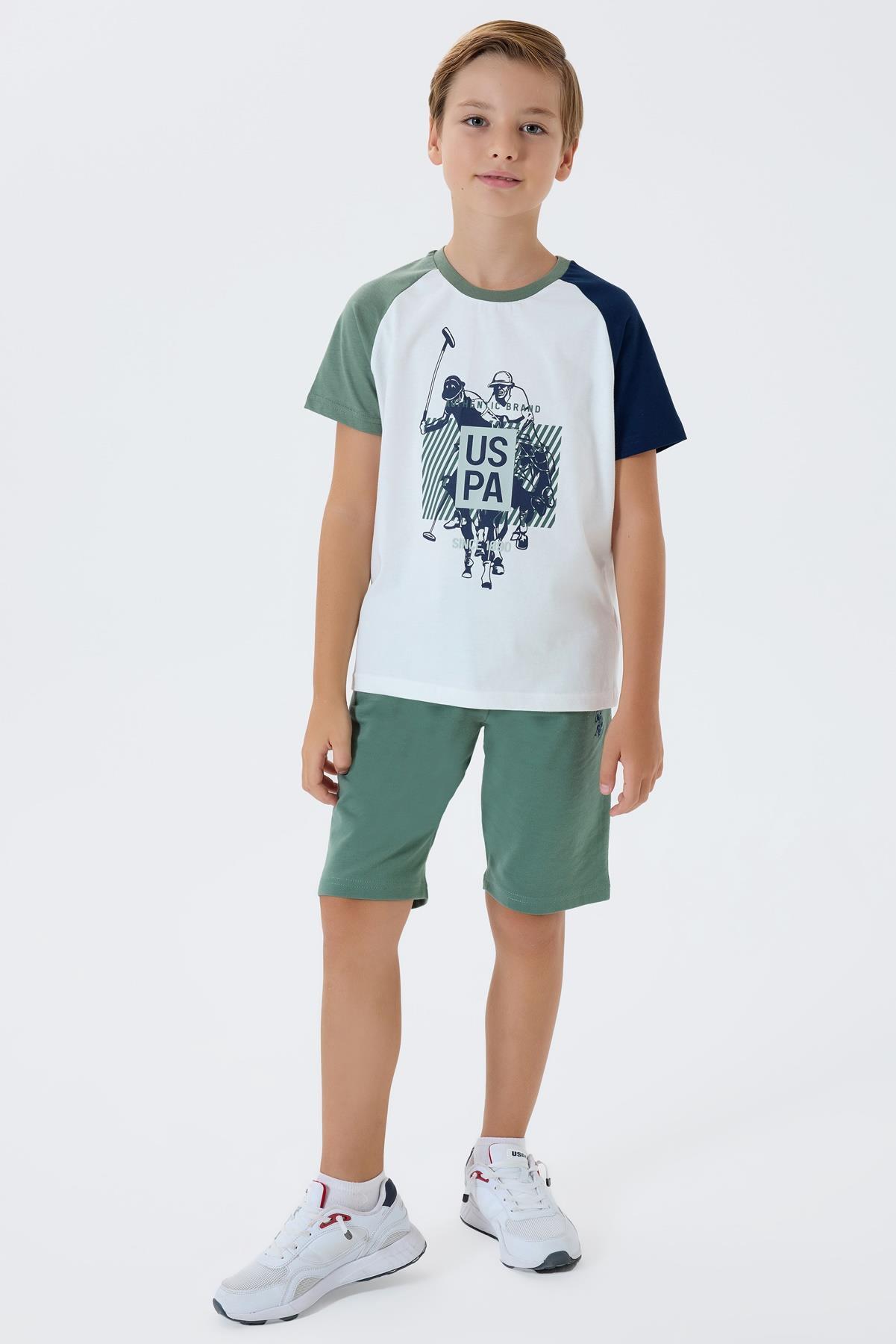 U.S. Polo Assn Erkek Çocuk Şortlu Takım %100 Pamuk Yazlık Bisiklet Yaka Tişört & Bermuda Şort Takım