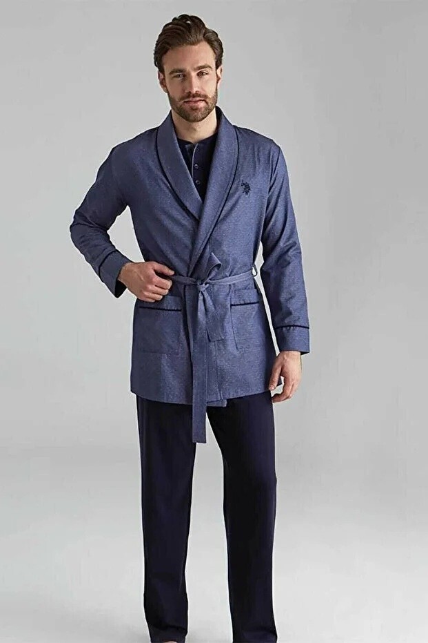 U.S. Polo Assn. Erkek Pijama Set, Çeyizlik Ropdöşambır Set, Kutulu 5 Parça Pijama Set