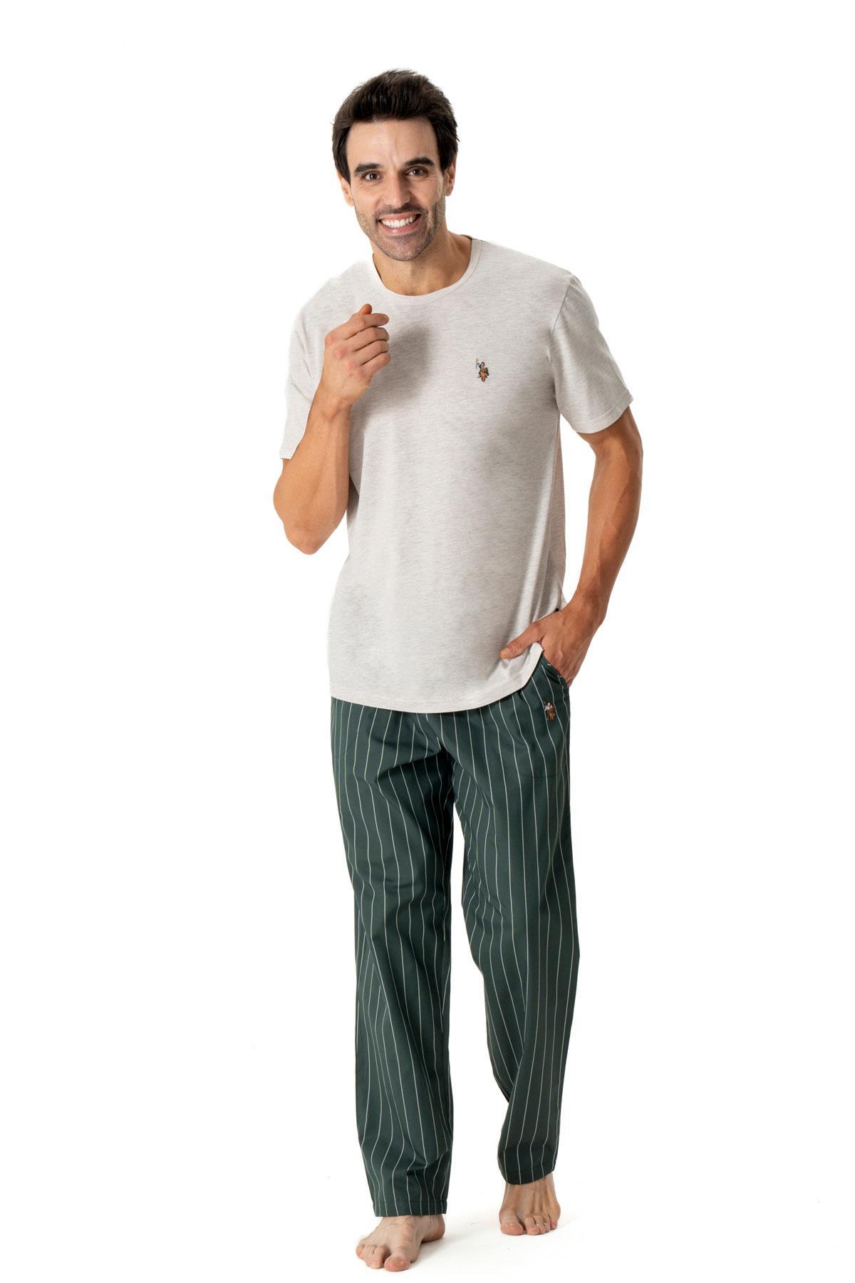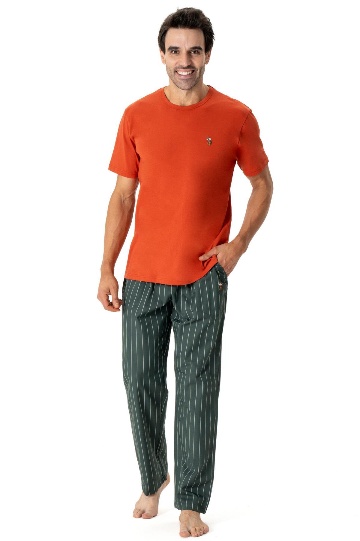 U.S. Polo Assn. Erkek Pijama Takım, Alt Çizgili Üst Düz Renk