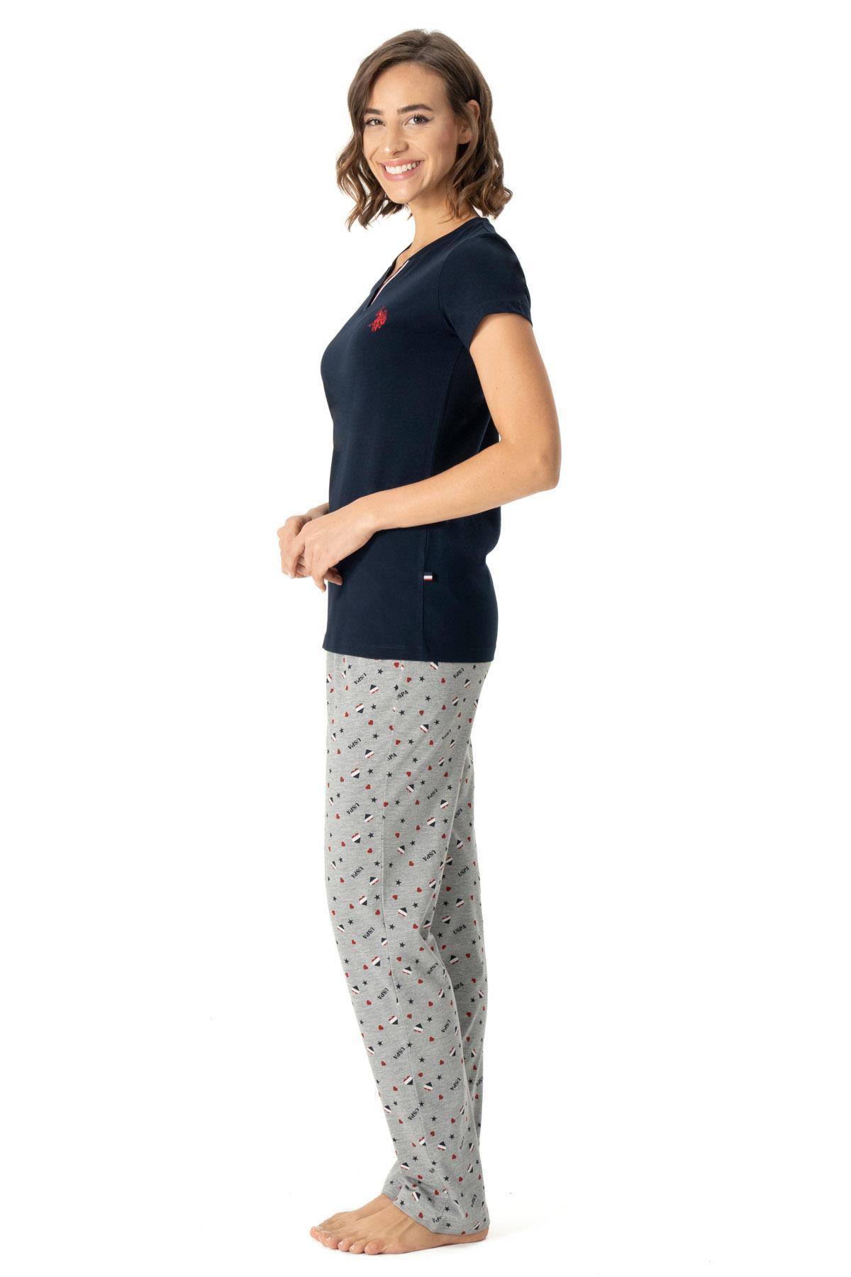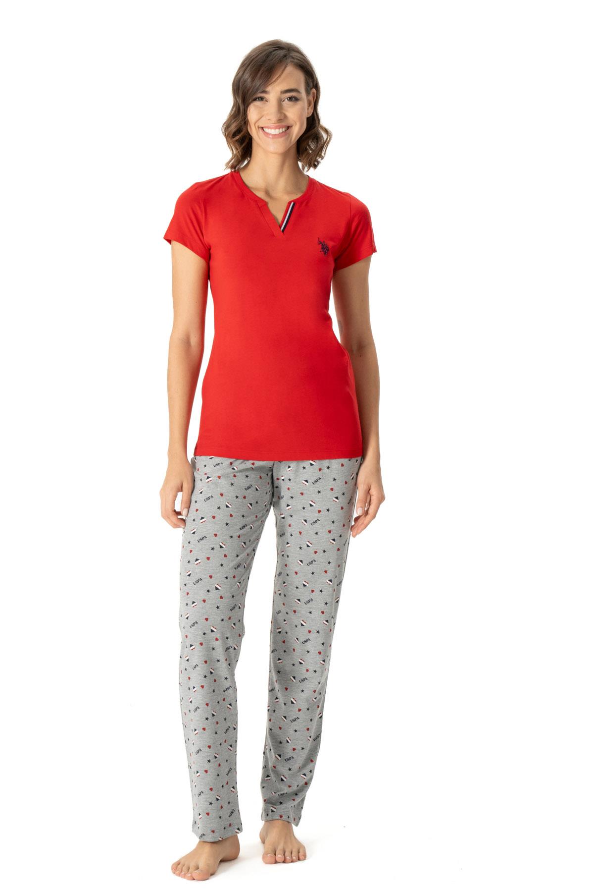U.S. Polo Assn. Kadın V Yaka Kısakol Ev Giyim Pijama Takım