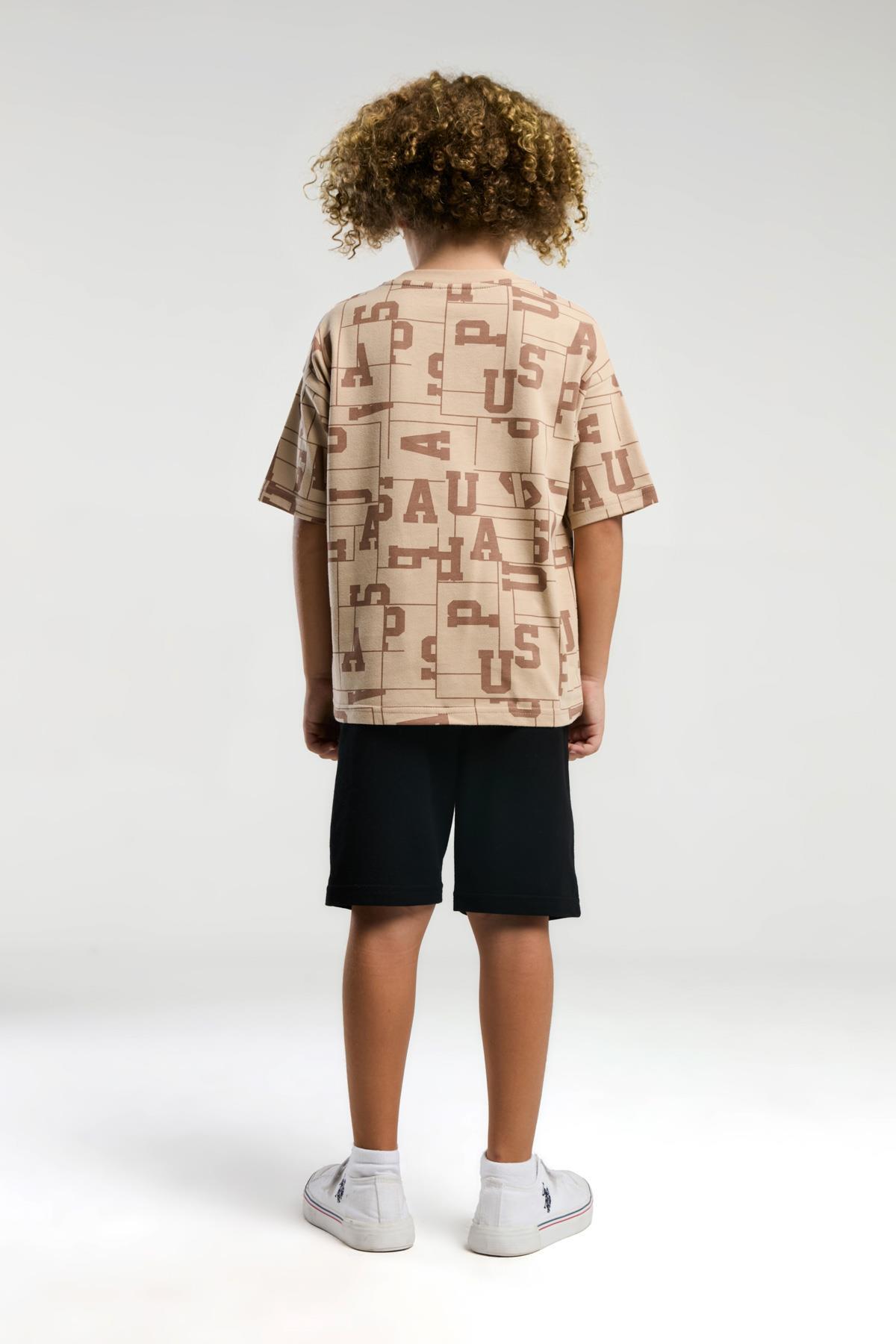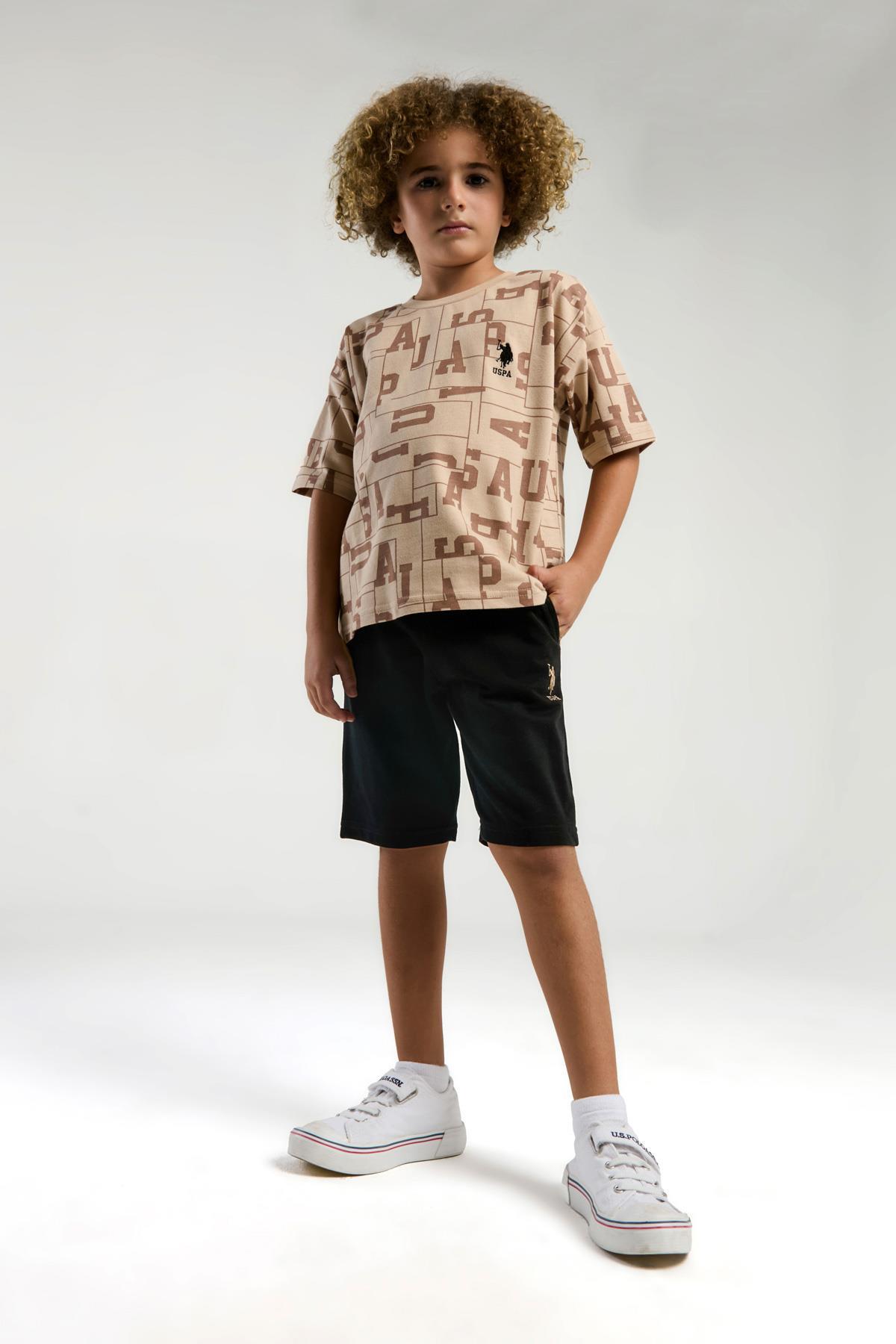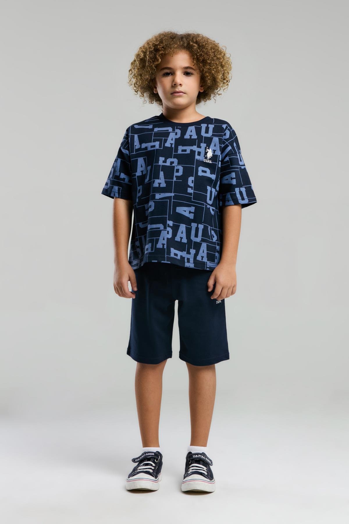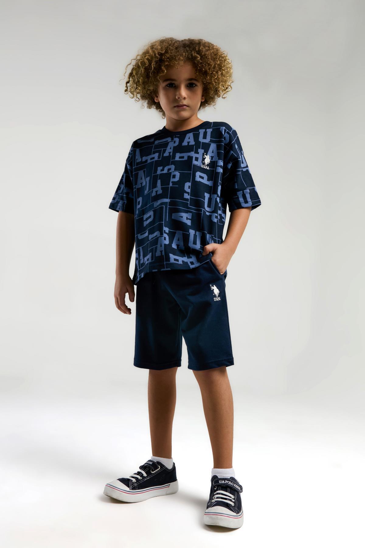 U.S. Polo Assn Yazı Basklı Erkek Çocuk Şortlu Takım, %100 Pamuk Yazlık Tişört & Bermuda Şort Takım