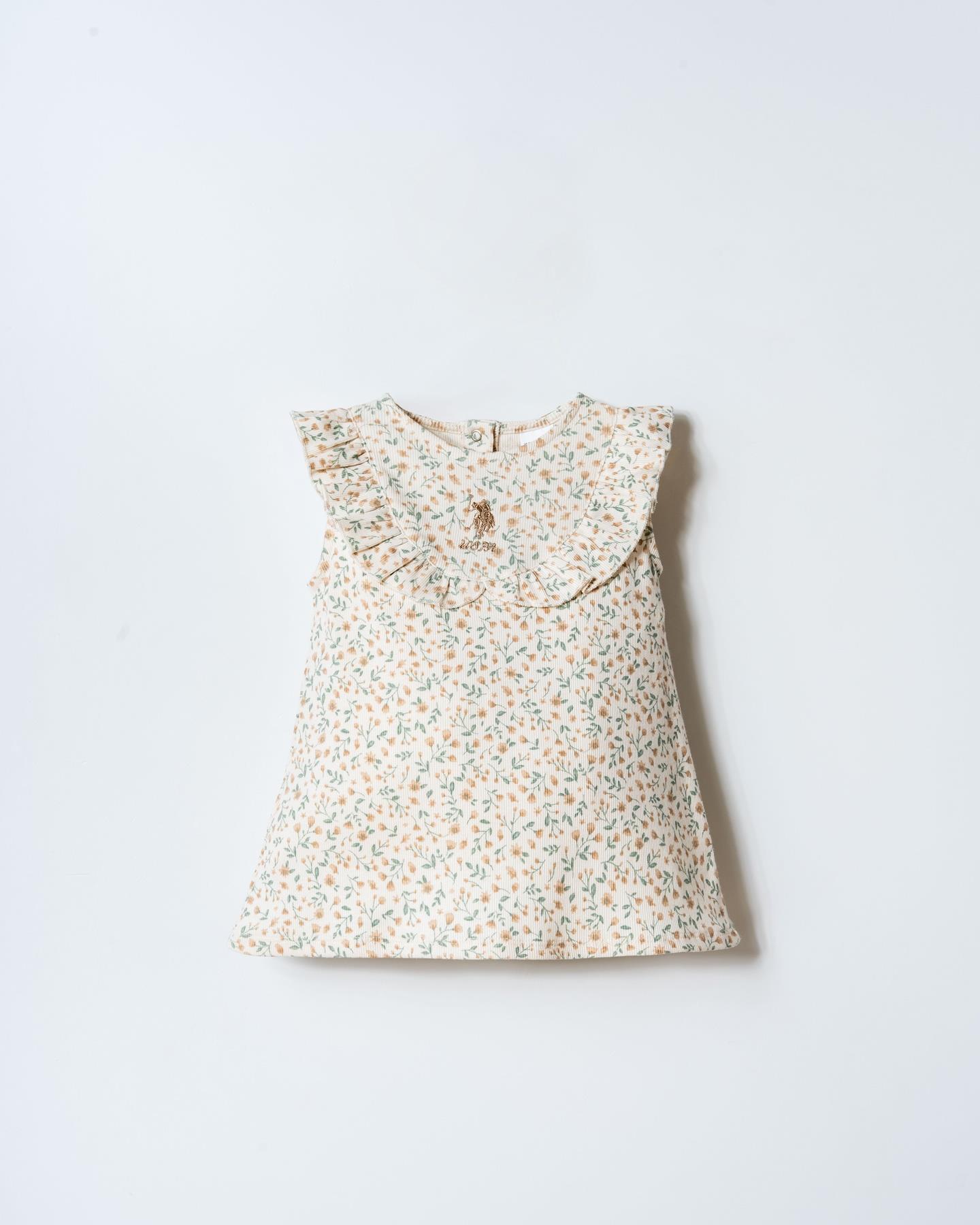 U.S. Polo Assn. kız bebek çiçekli elbise, zarif desenli tasarımı ve fırfırlı yaka detayıyla hem günlük hem özel gün kombinleri için şık bir tercihtir. Doğal tonlardaki çiçek baskısı ile sade ama dikkat çekici bir görünüm sunar.