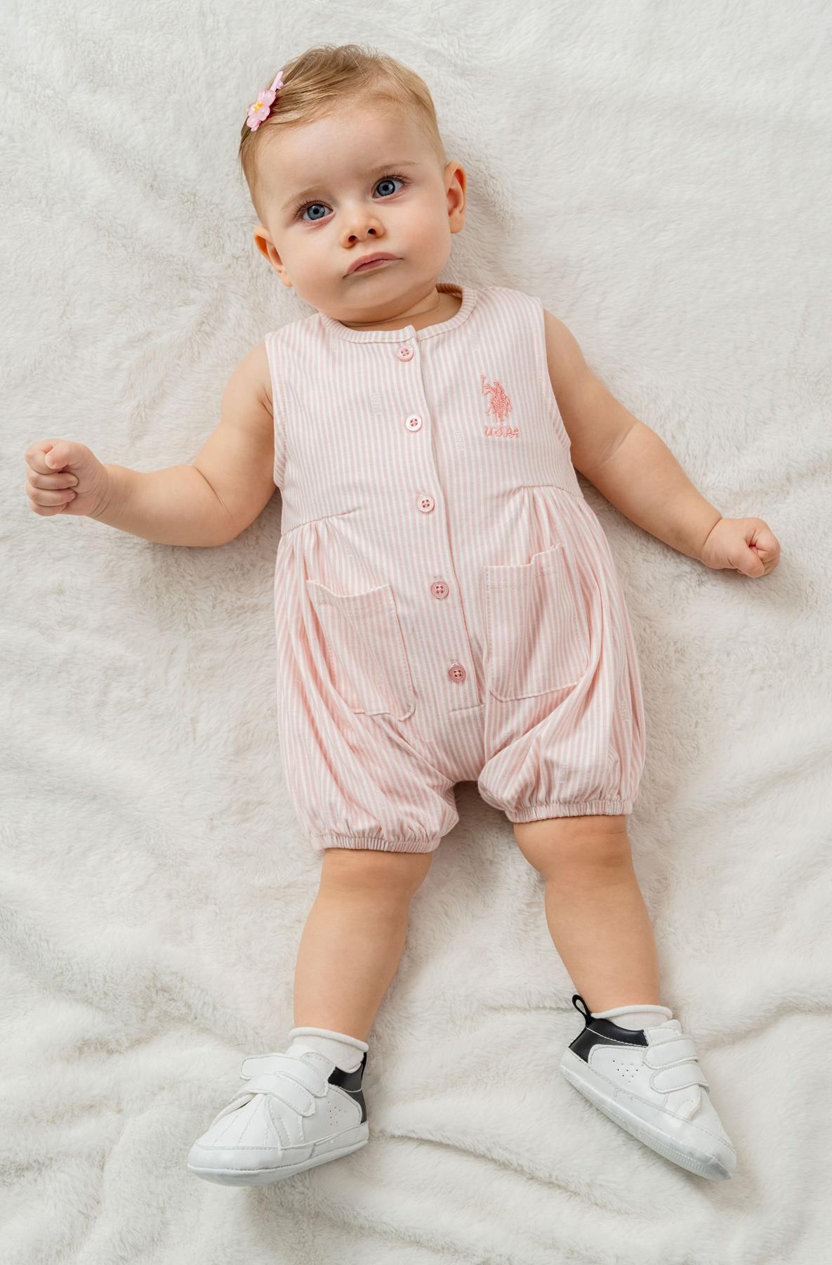 U.S. Polo Assn. Kız Bebek Çizgili Yazlık Tulum %96 Pamuk %4 Elastan Süprem Kumaş Rahat Şık Bebek Tulum