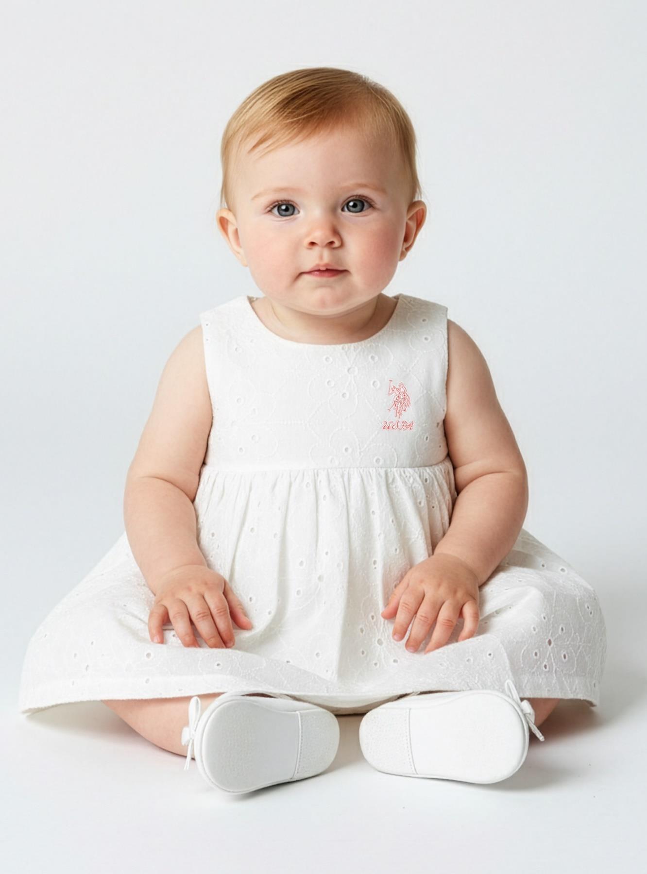 U.S. Polo Assn. Kız Bebek Dantel Elbise %100 Pamuk Dokuma Yazlık Şık Bebek Elbisesi 6-9 Ay – 3 Yaş